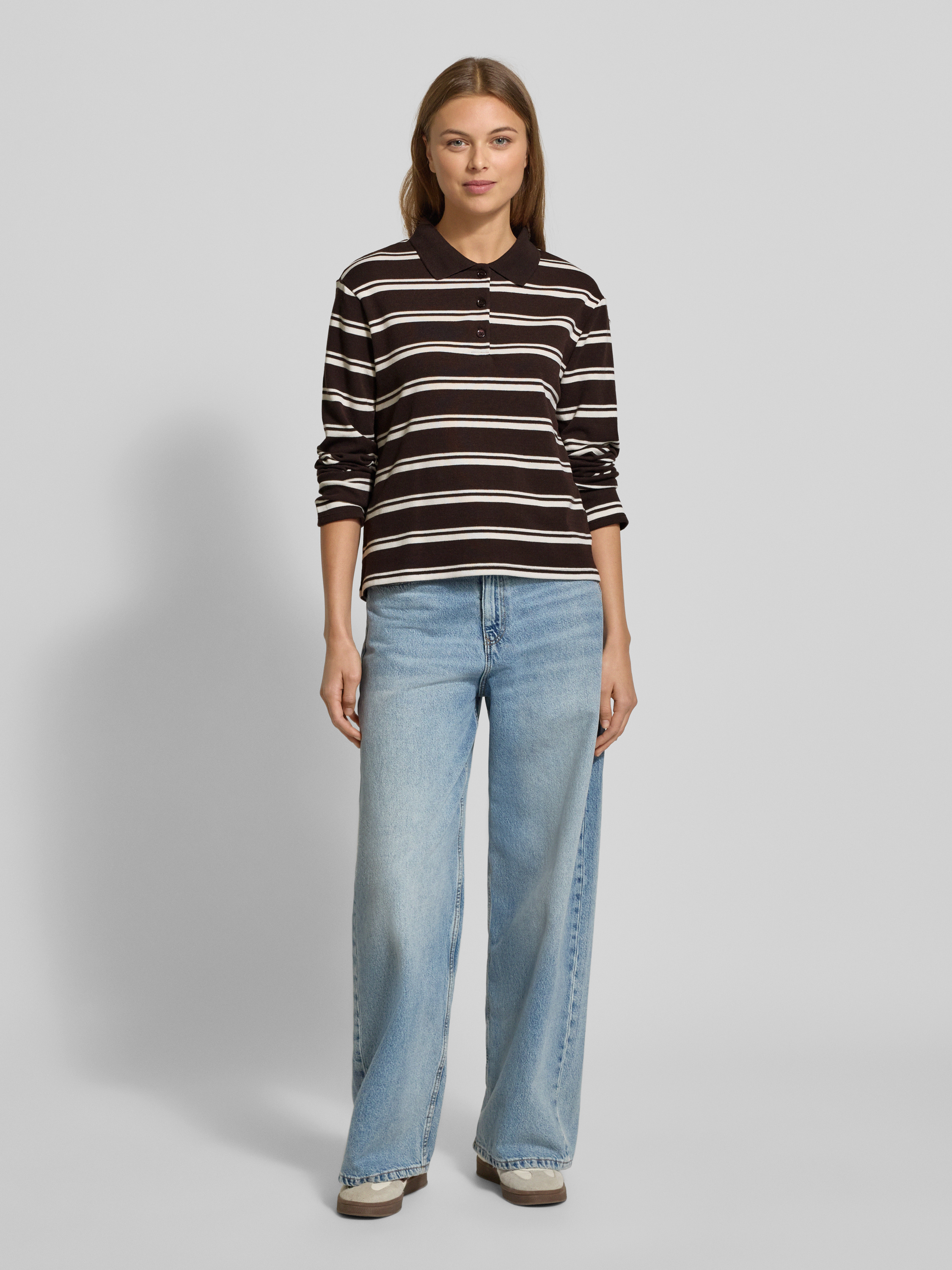 Das Damen Poloshirt von Mango, Modell 'AUSTIN', zeichnet sich durch seinen modernen Regular Fit und den angenehmen Material-Mix mit Viskose-Anteil aus. Durch den klassischen Polokragen und die Knopfleiste entsteht ein zeitloser Look, der vielseitig kombiniert werden kann. Mit langen Ärmeln eignet sich das Longsleeve sowohl für den Alltag als auch für entspannte Freizeitmomente.