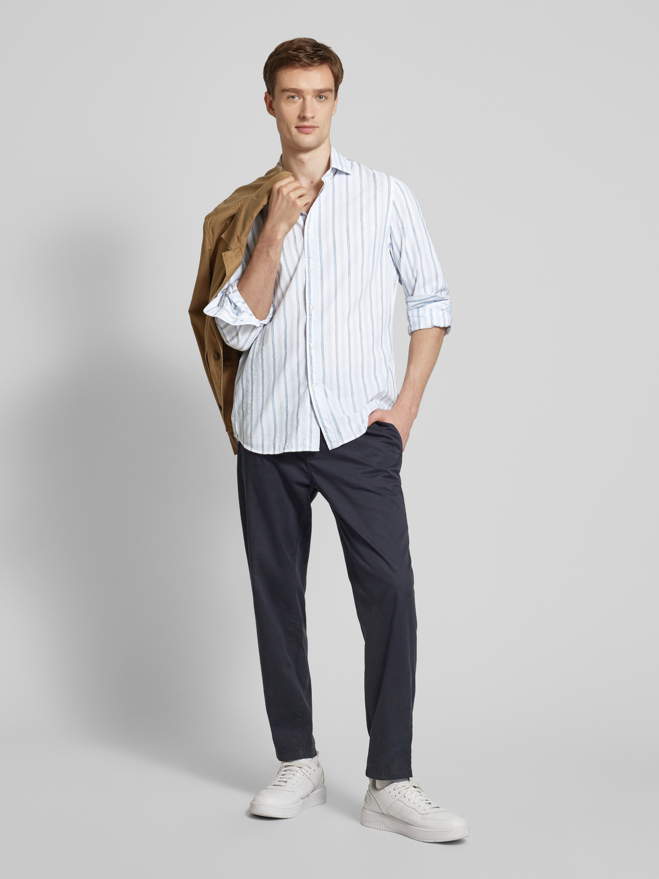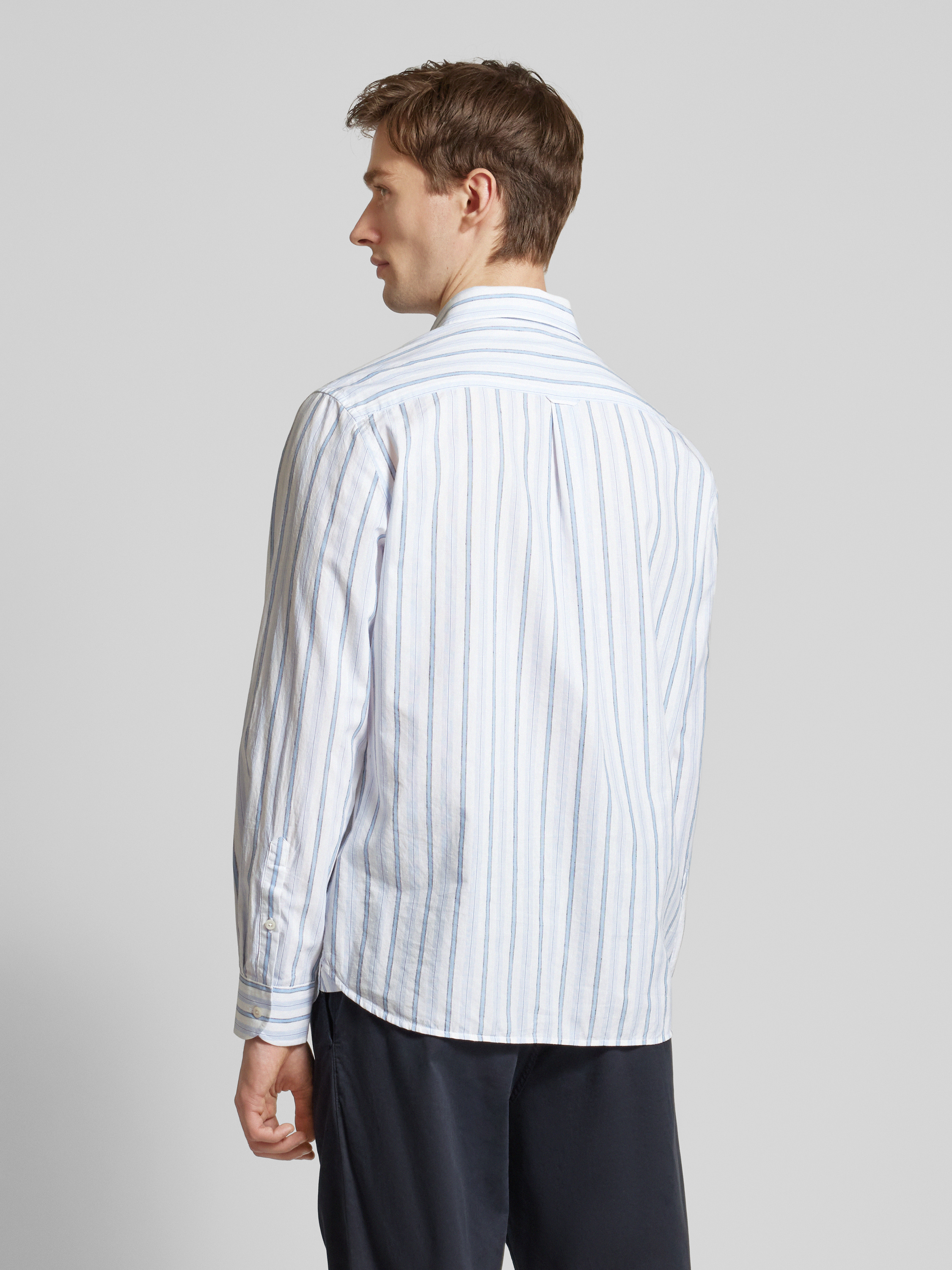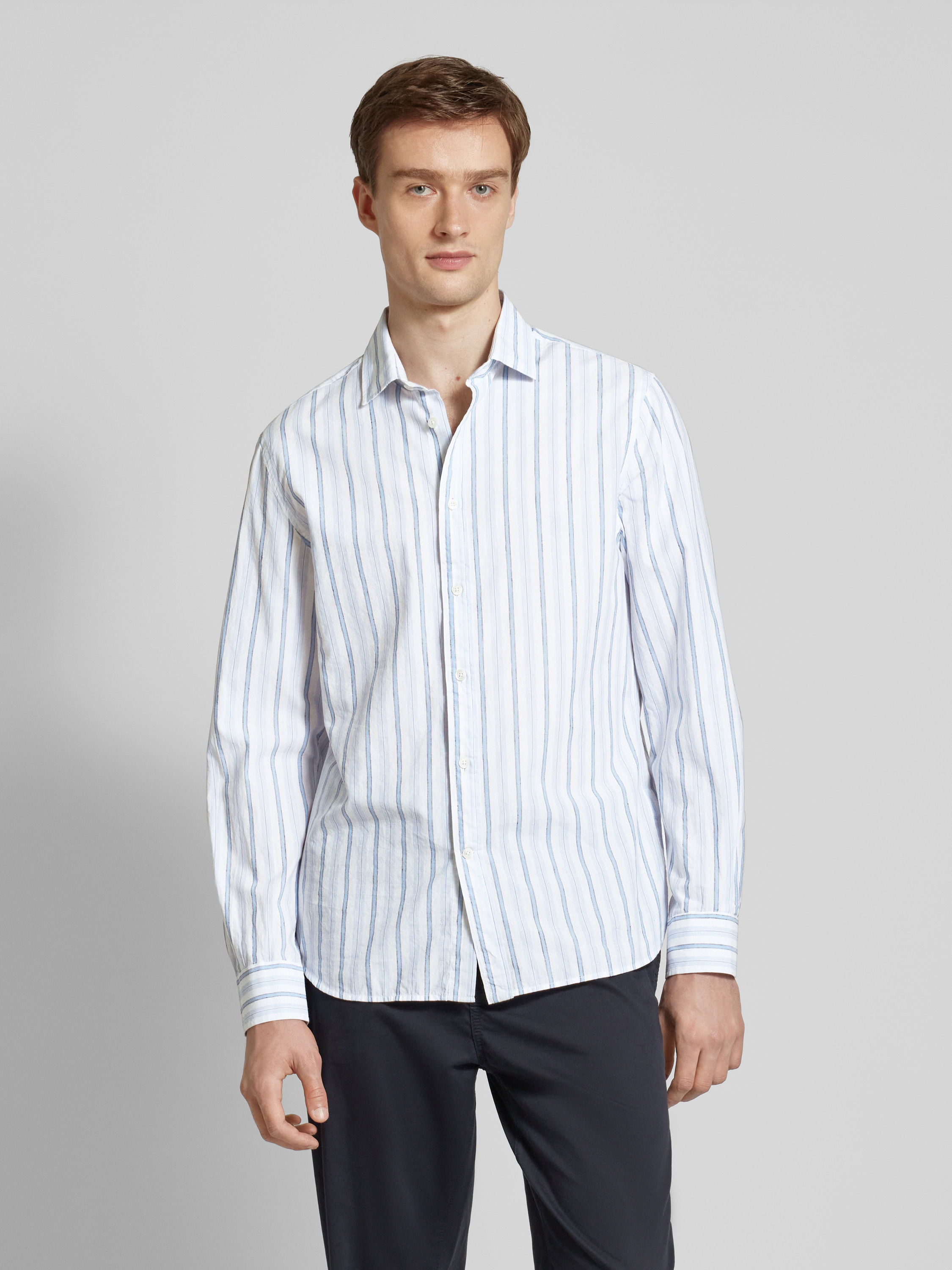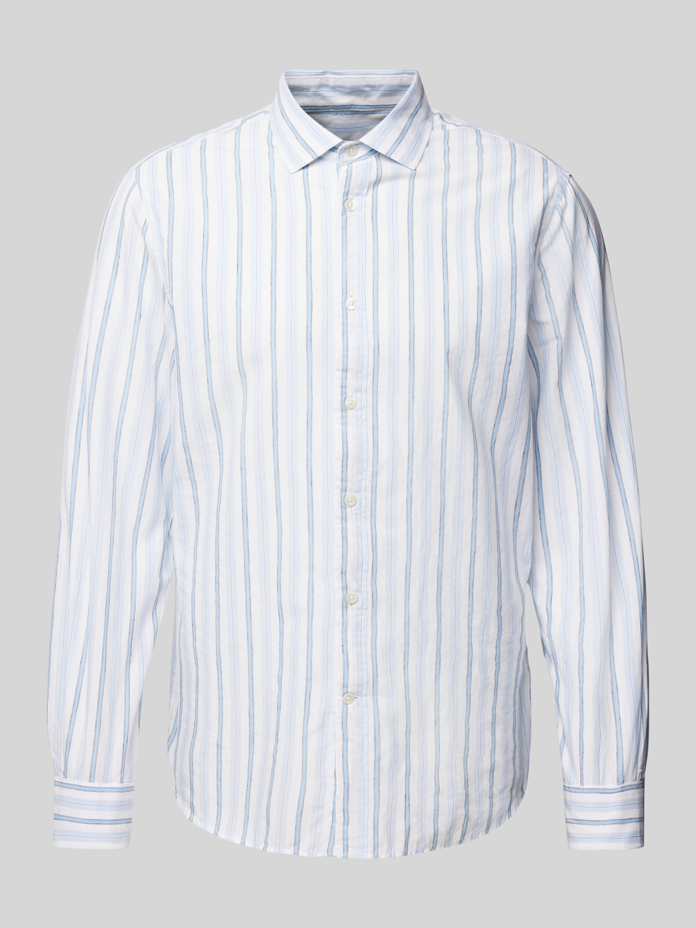 Das Herren Freizeithemd 'ALCUDIA' von MANGO kombiniert den atmungsaktiven Komfort eines Baumwoll-Leinen-Mixes mit einem lässigen Regular Fit. Der Haifischkragen verleiht dem Design eine moderne Note, während die Knopfleiste für klassische Eleganz sorgt. Ideal für entspannte Tage.