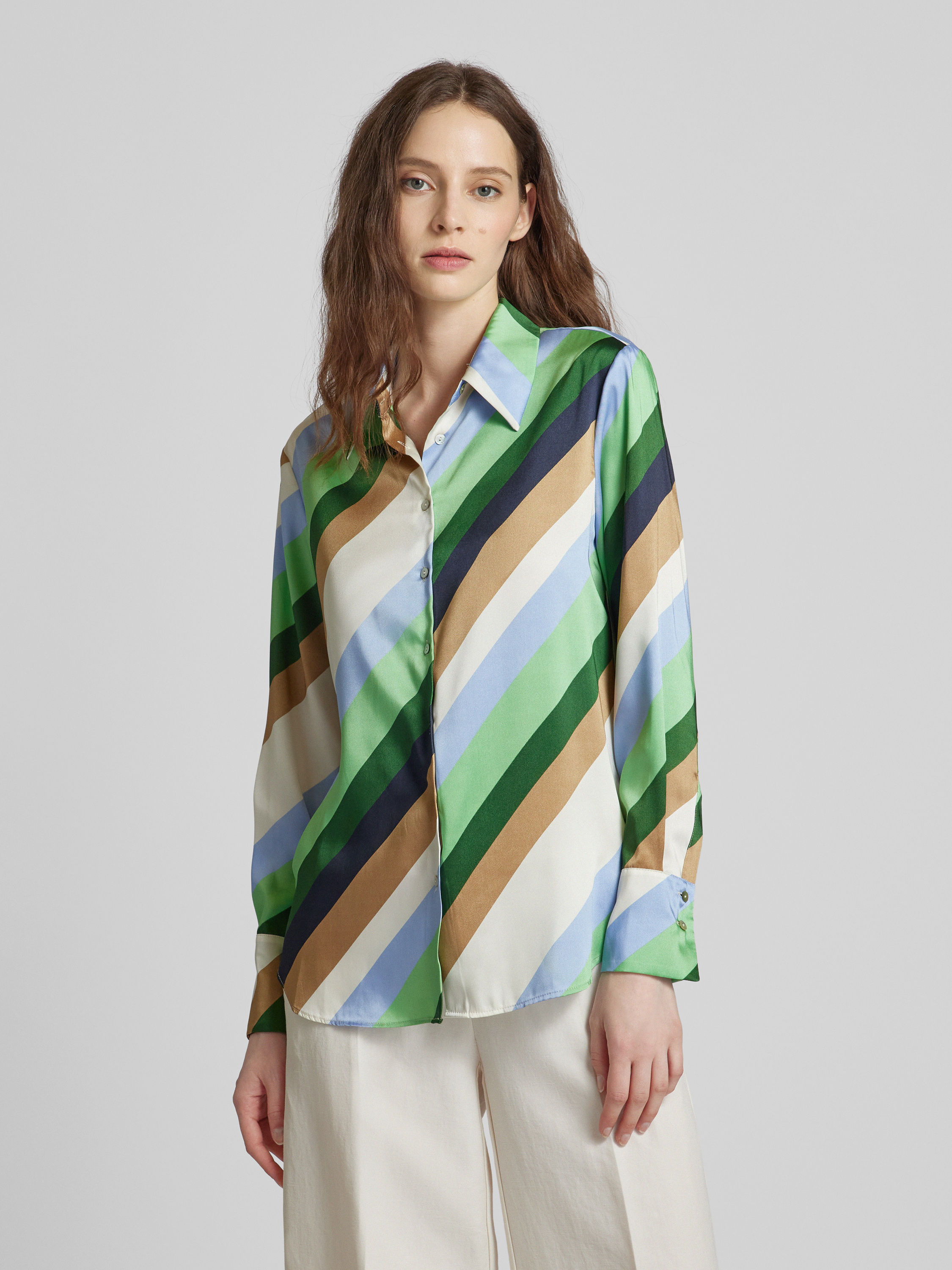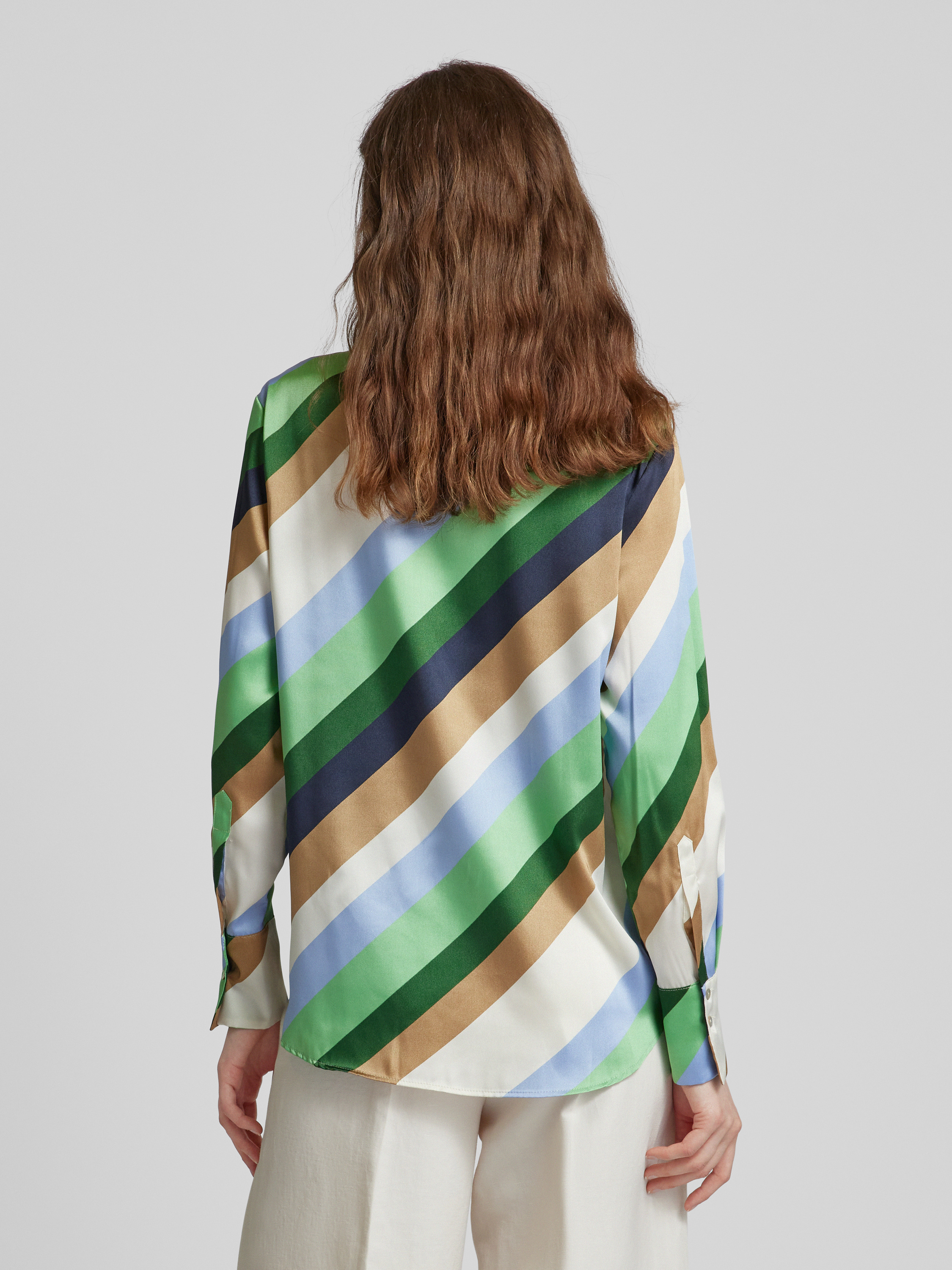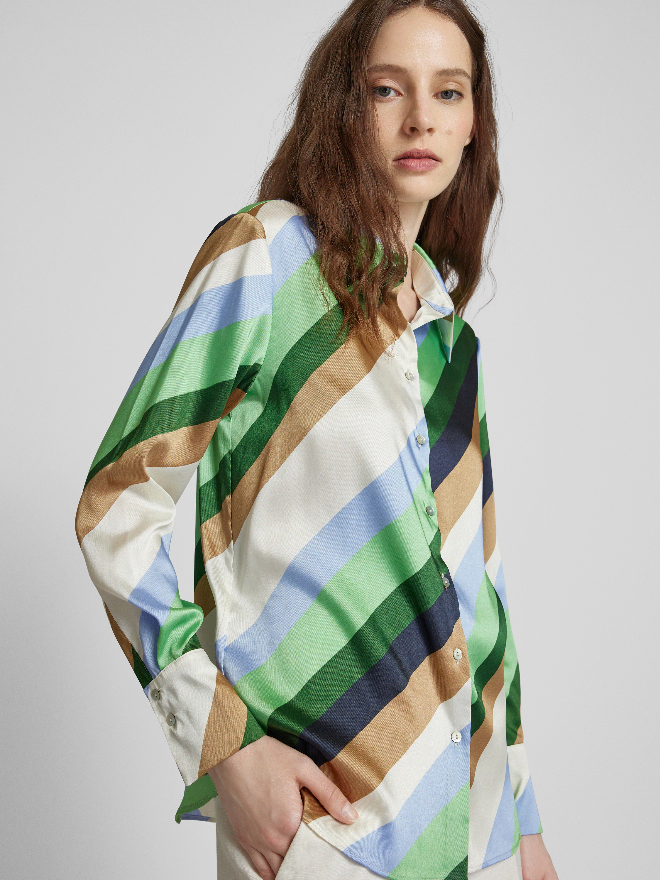 Satinbluse mit grafischem Muster in beige