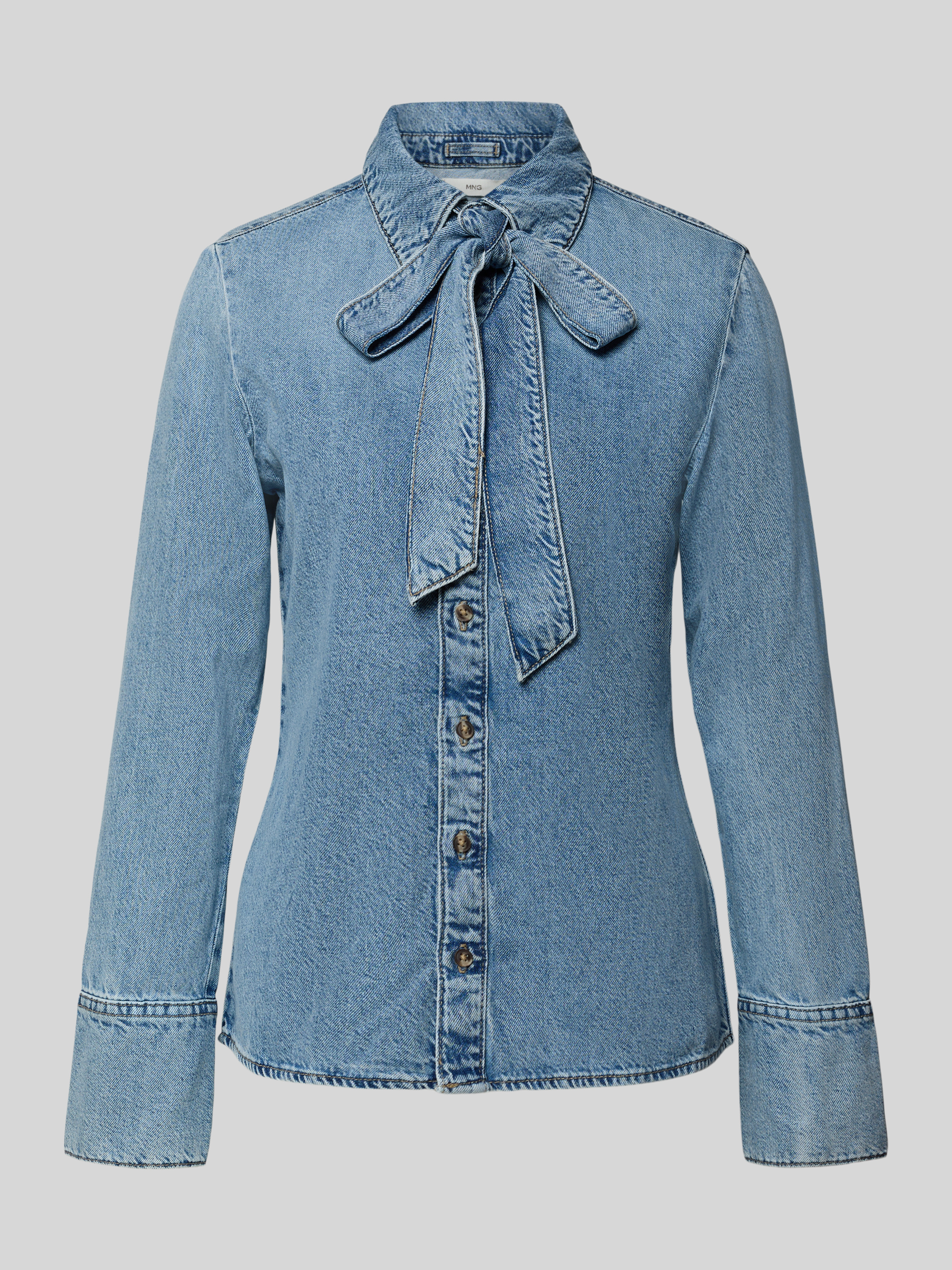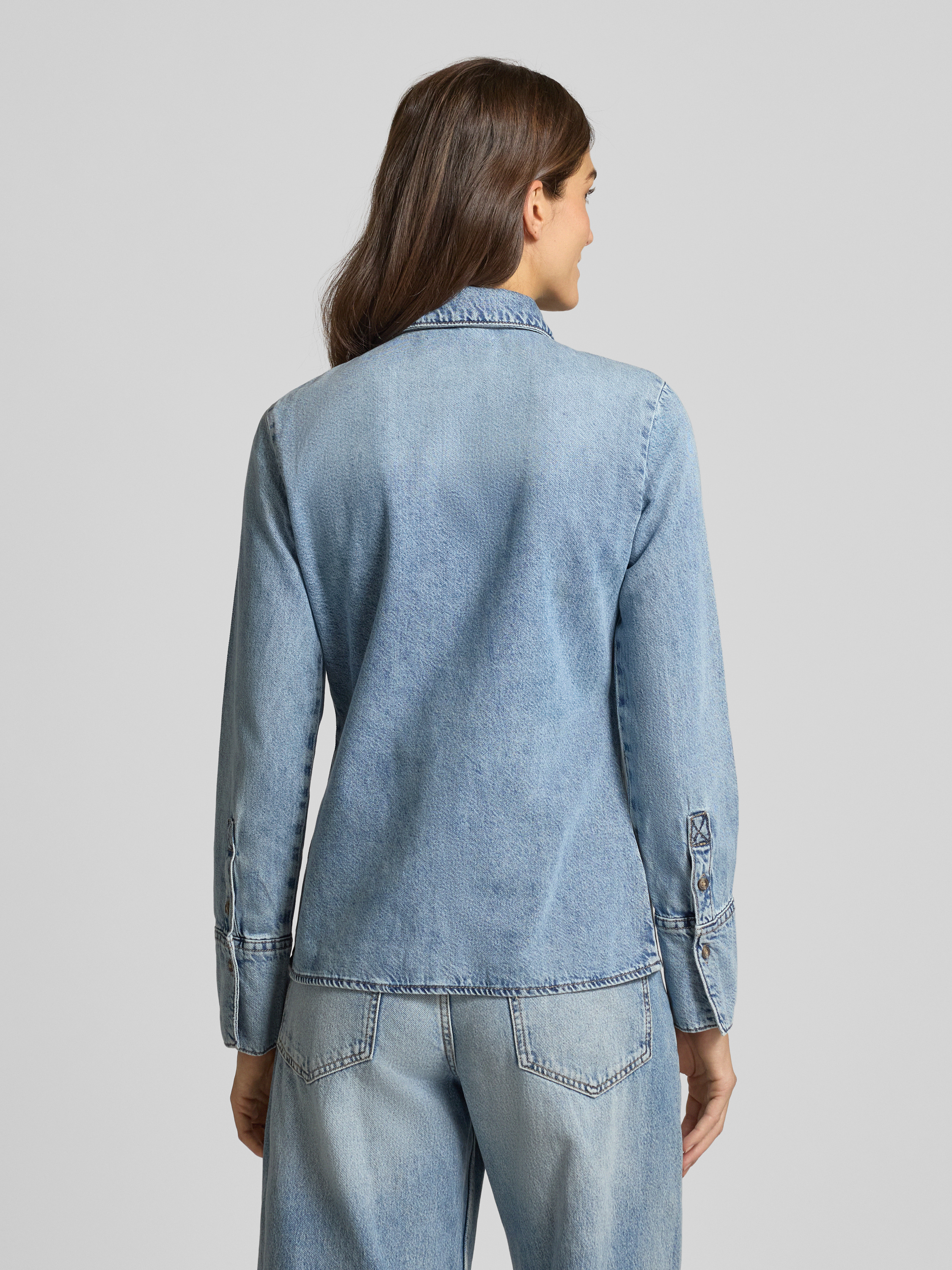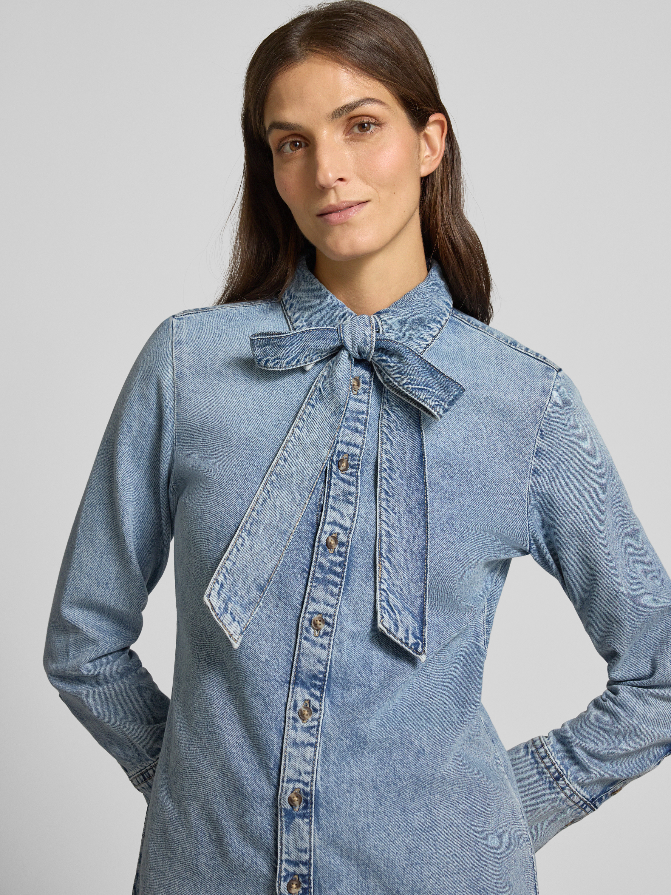 Die Damen Jeansbluse von Mango, Modell LANA, zeigt sich in einem schlanken Slim-Fit-Schnitt und bringt durch die charakteristische Schluppe eine dezente Raffinesse ins Outfit. Der Baumwoll-Lyocell-Mix sorgt für ein angenehmes Hautgefühl und trägt sich leicht im Alltag. Durch die durchdachte Passform eignet sich die Bluse für vielseitige Kombinationen, ob leger oder etwas schicker.