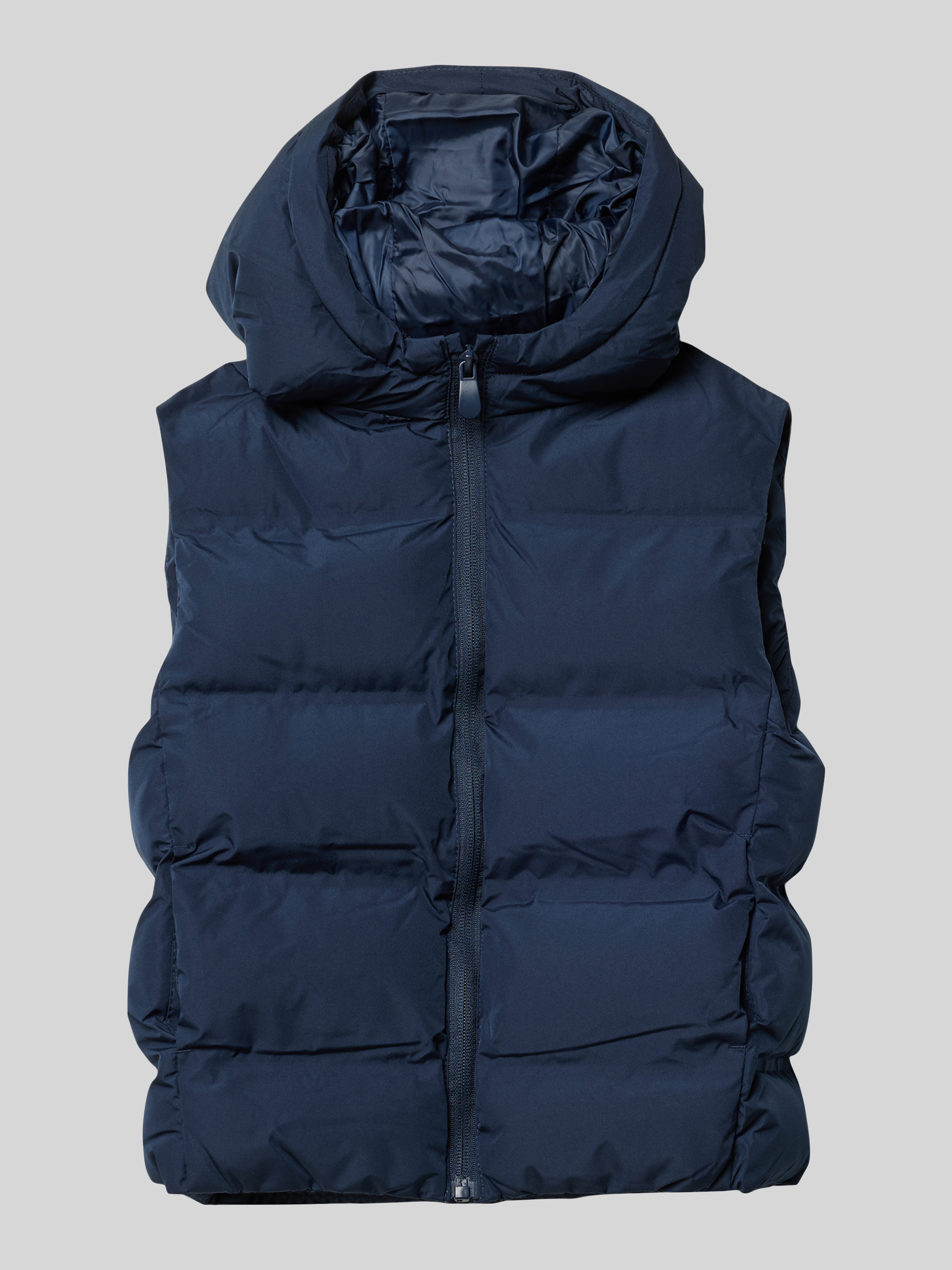 Die Kinder Steppweste von Mango im Modell 'manel' zeichnet sich durch einen angenehm geraden Schnitt aus, der Bewegungsfreiheit im Alltag unterstützt. Die praktische Kapuze schützt bei wechselhaftem Wetter zuverlässig. Durch das leichte Material fühlt sich die Steppweste angenehm an und trägt nicht auf.