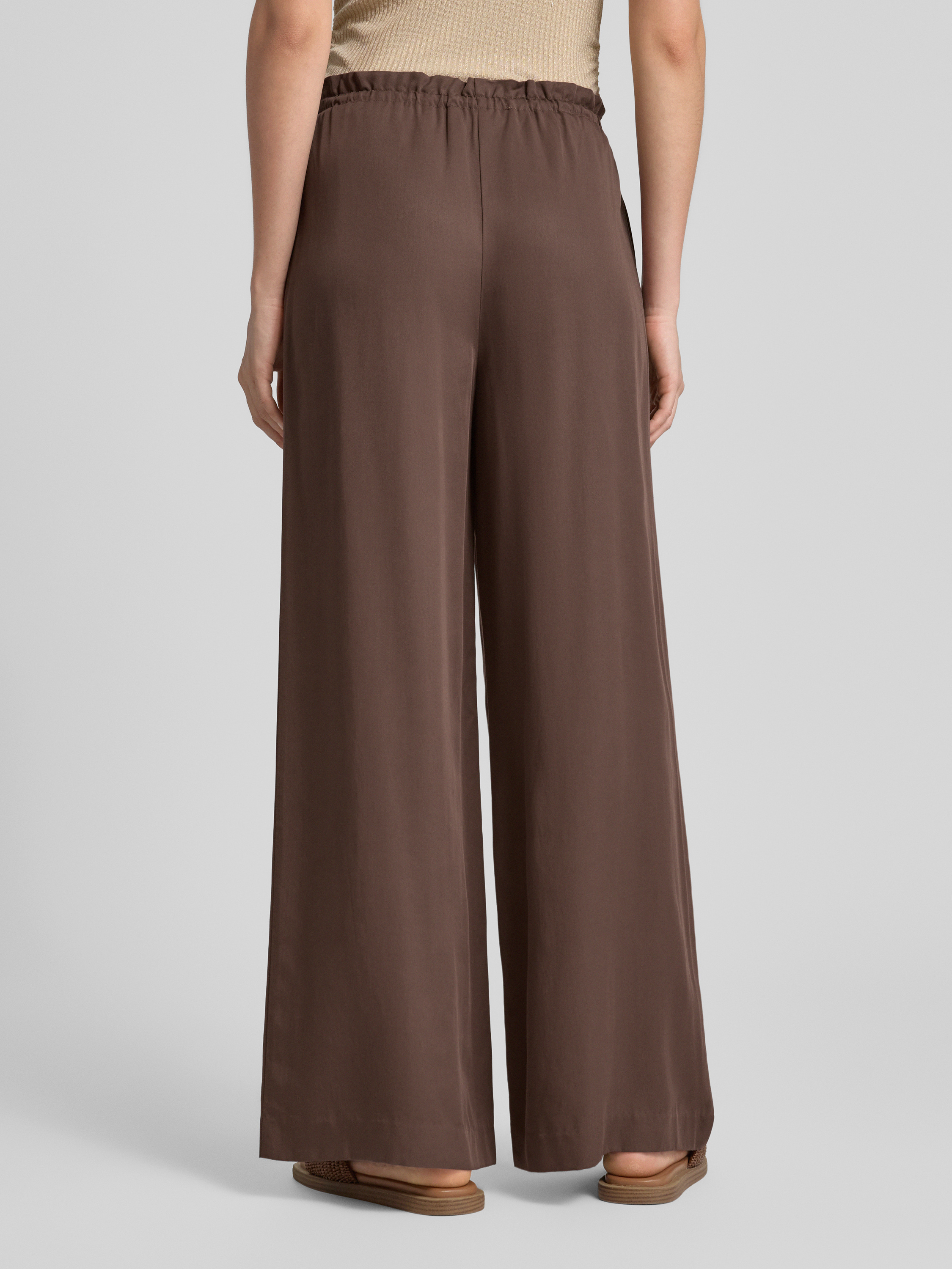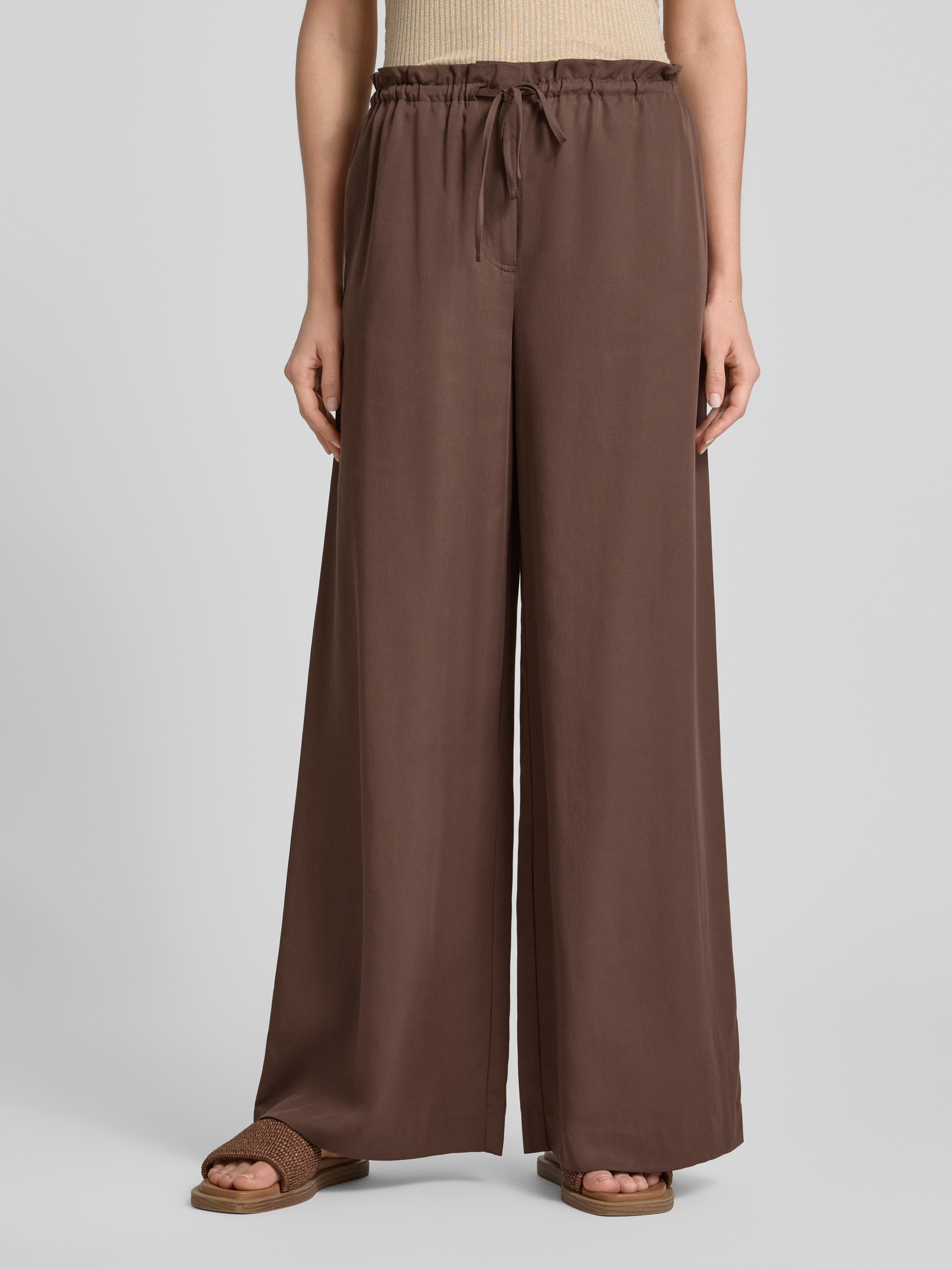 Die Stoffhose von Mango, gefertigt aus reiner Baumwolle, kombiniert ein weites Bein mit einem praktischen Tunnelzug. Diese Kombination bietet eine angenehme Bewegungsfreiheit und sorgt für ein entspanntes Tragegefühl. Ideal für warme Tage, wenn Leichtigkeit und Komfort gefragt sind.