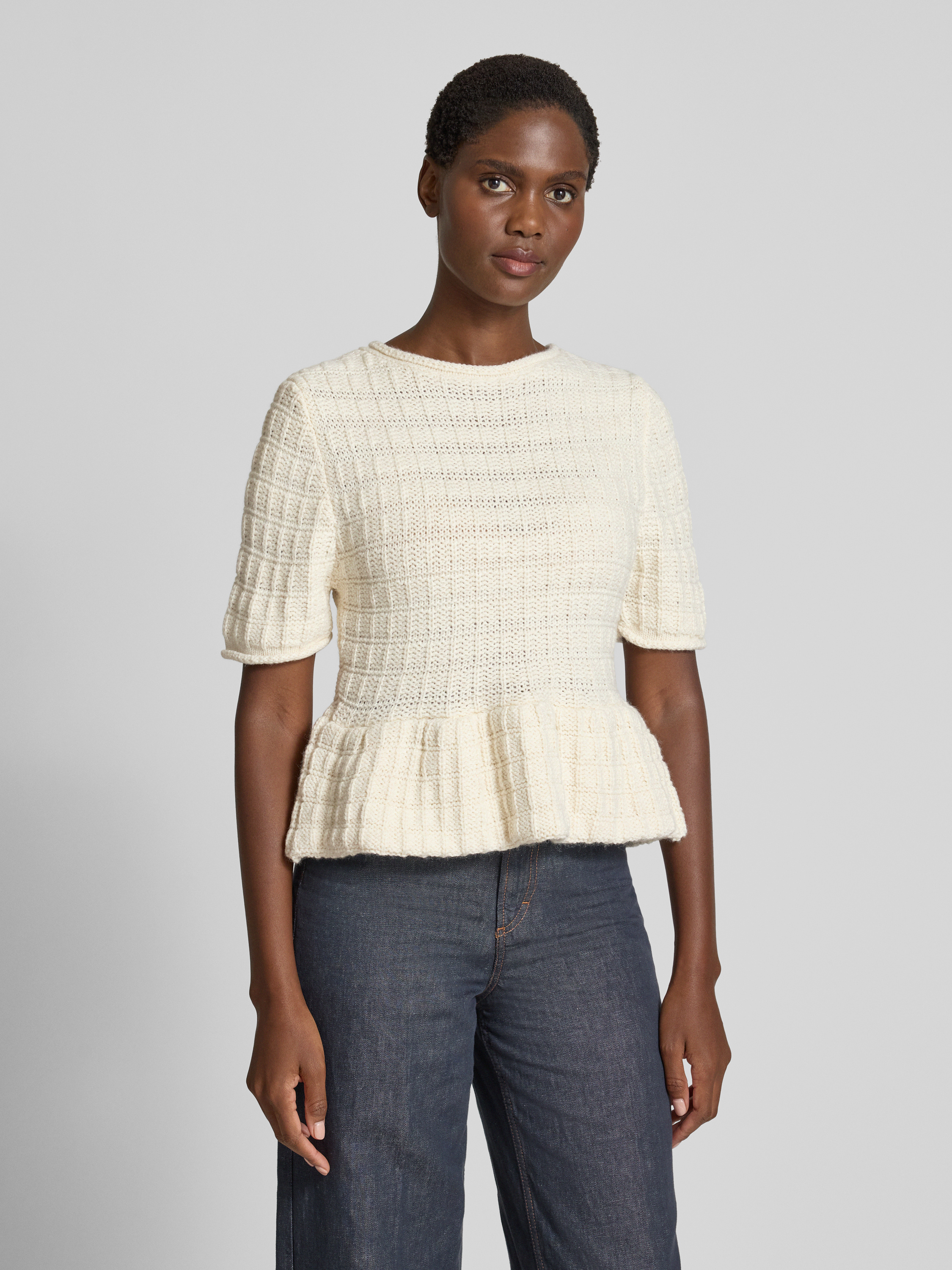 Der Damen-Strickpullover DOLL von Mango zeigt sich mit halblangen Ärmeln und rundem Ausschnitt angenehm vielseitig. Durch den Woll-Anteil erhält das Gewebe eine angenehme Haptik, wodurch sich das Kleidungsstück besonders für wechselhafte Tage eignet. Die reguläre Passform unterstützt einen entspannten Look.