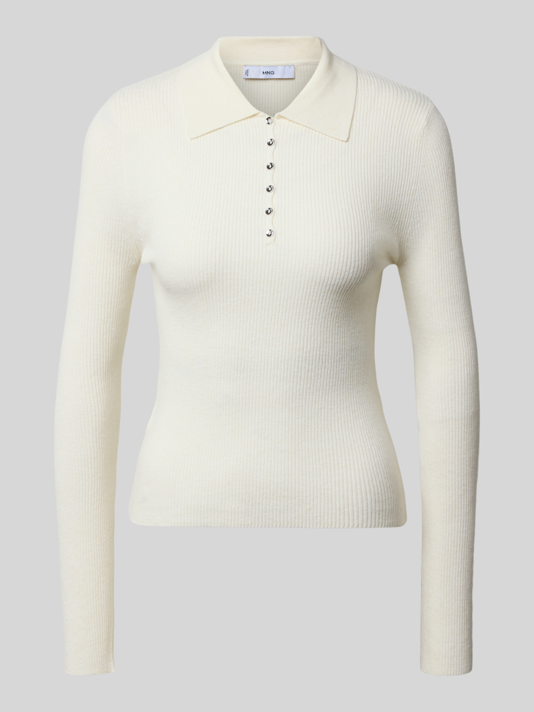 Das Damen Strickshirt von Mango, Modell 'TWENTIES', fällt durch seinen Slim Fit und den charakteristischen Polokragen angenehm ins Auge. Der Material-Mix mit Woll-Anteil verleiht dem Shirt eine spürbar weiche Haptik und sorgt für ein angenehmes Tragegefühl. Durch die dezente Ripp-Optik und die schmal geschnittene Form eignet sich das Shirt vielseitig für verschiedene Anlässe, während die langen Ärmel an kühleren Tagen für Komfort sorgen.