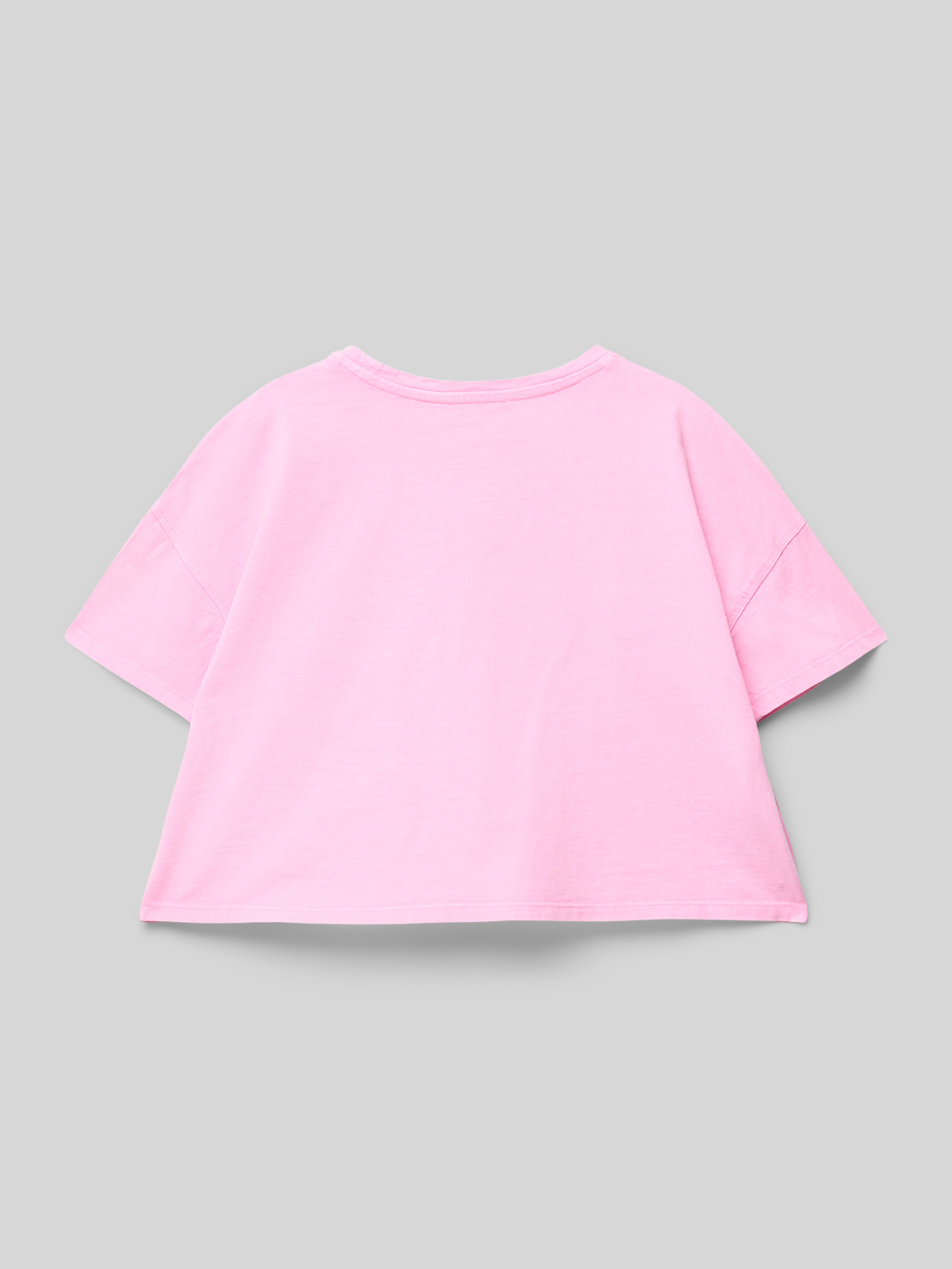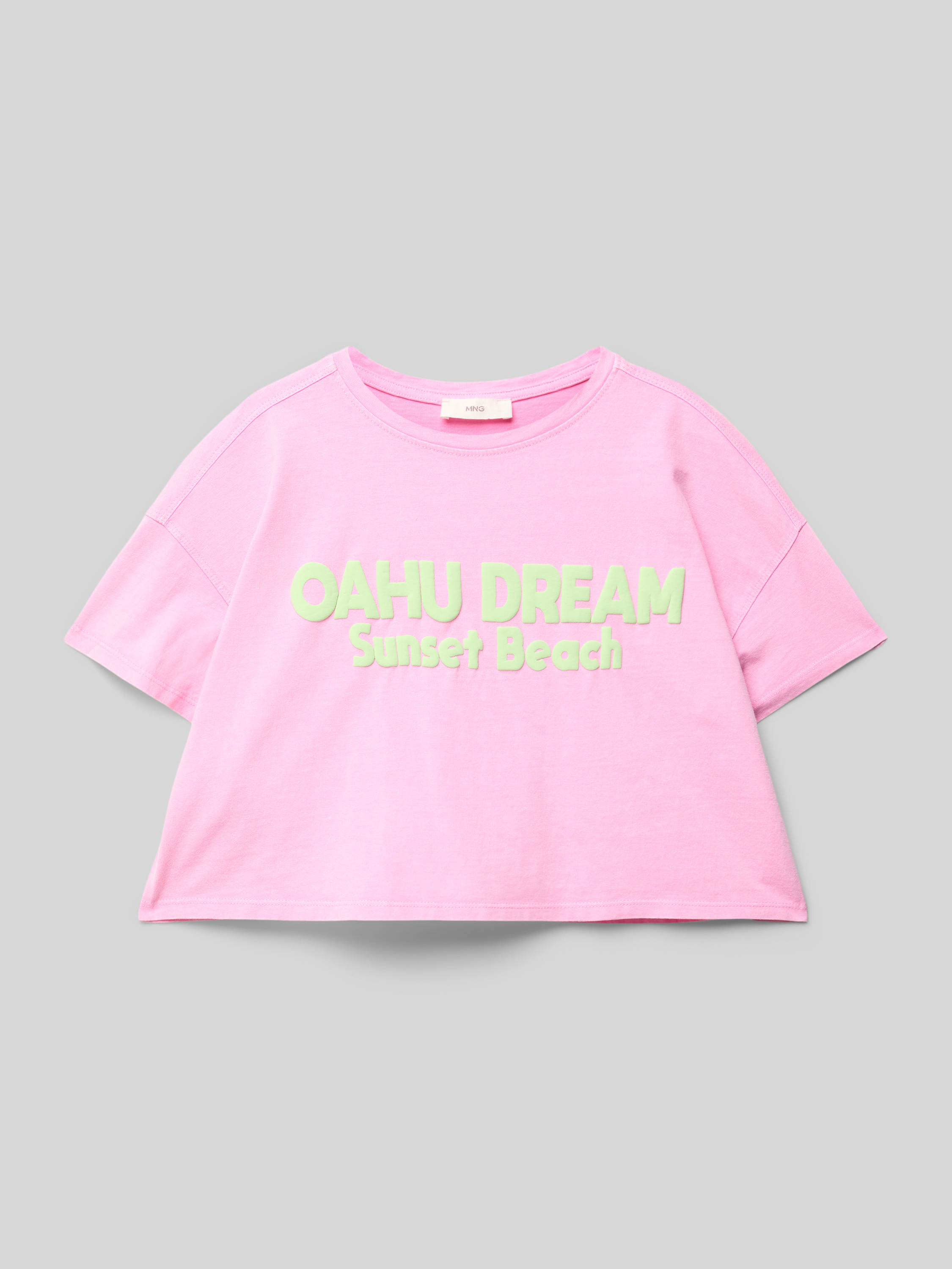 Das Mango Kinder T-Shirt bietet durch seine reine Baumwolle ein angenehmes Tragegefühl und überzeugt mit einem entspannten Regular Fit. Der verkürzte Schnitt verleiht dem Oberteil eine moderne Note, während der gerippte Rundhalsausschnitt und der auffällige Statement-Print für zusätzliche Akzente sorgen.