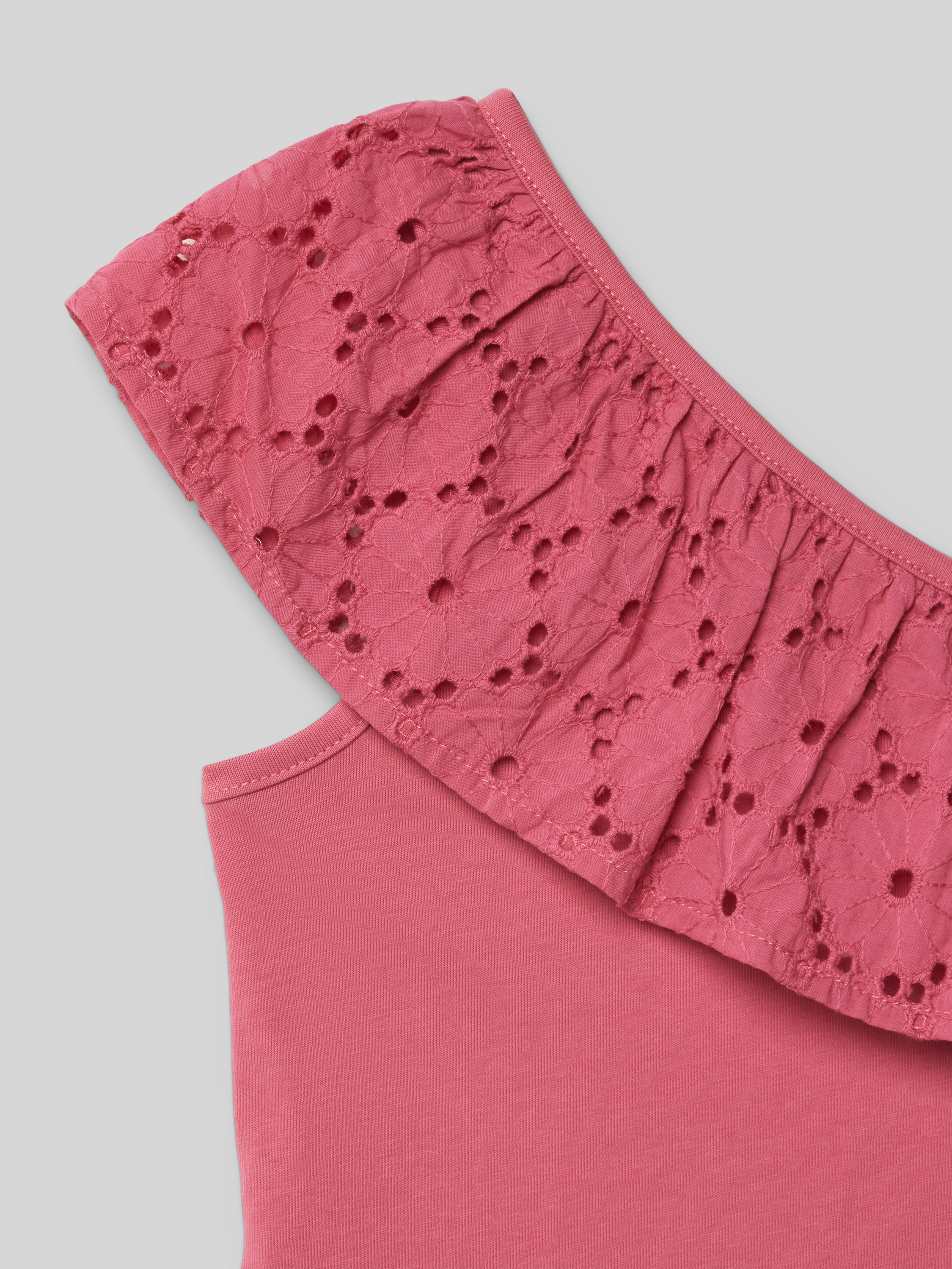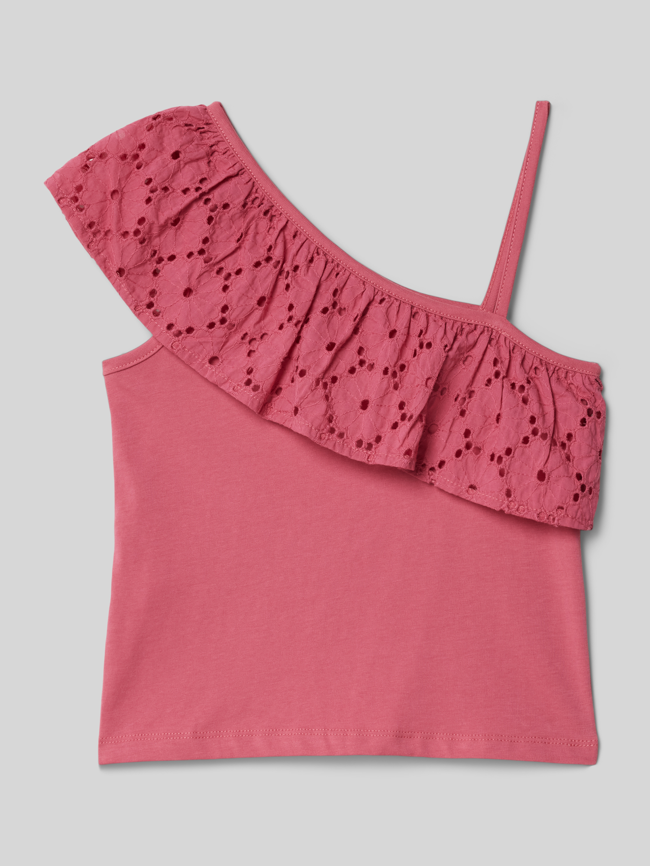 Das Top von MANGO aus reiner Baumwolle eignet sich ideal für warme Tage. Der gerade Schnitt und die zarte Lochstickerei verleihen ihm eine luftige Leichtigkeit. Ein charmantes Volant-Detail sorgt für eine spielerische Note, die jedem Outfit eine besondere Raffinesse verleiht.