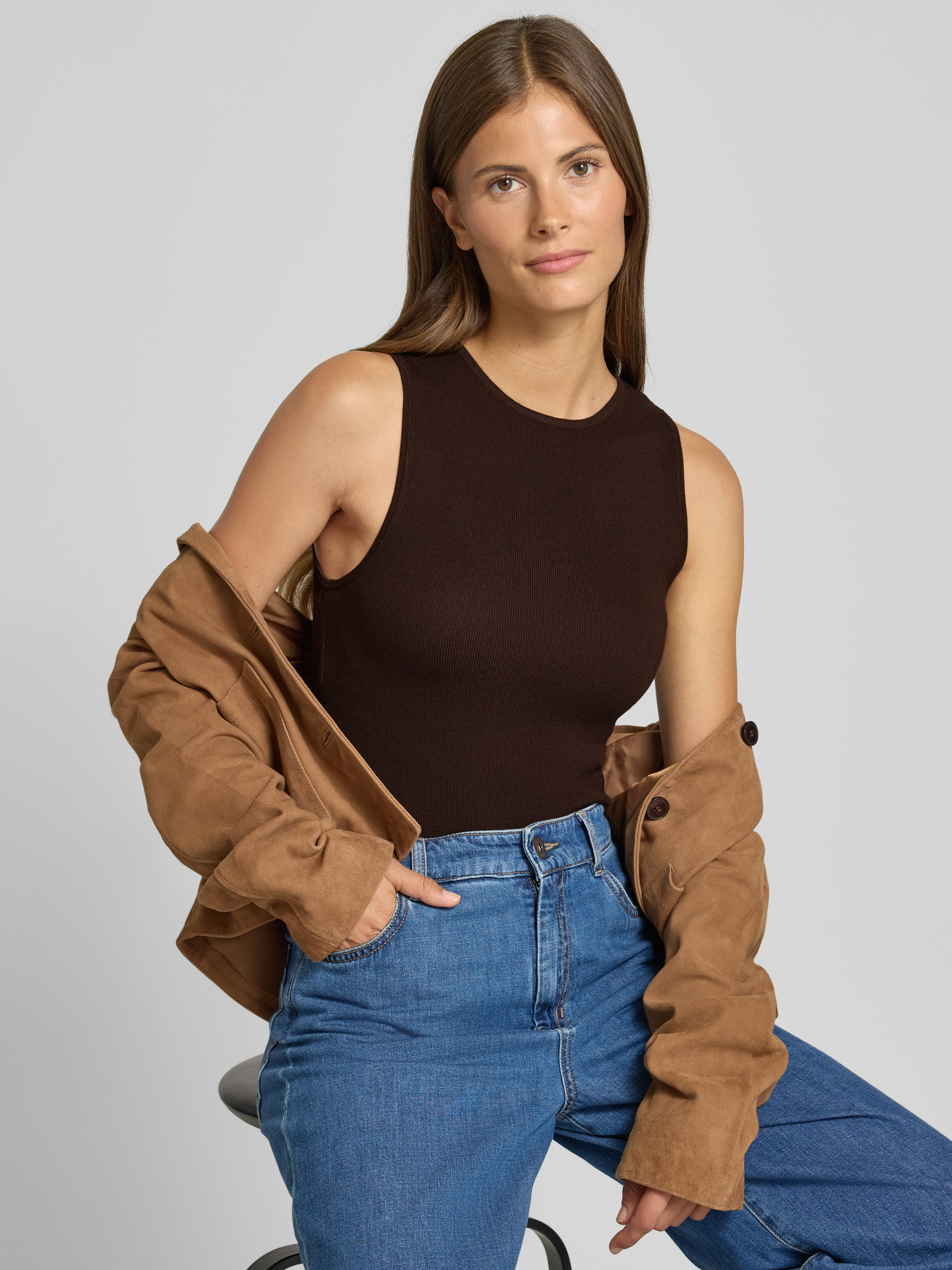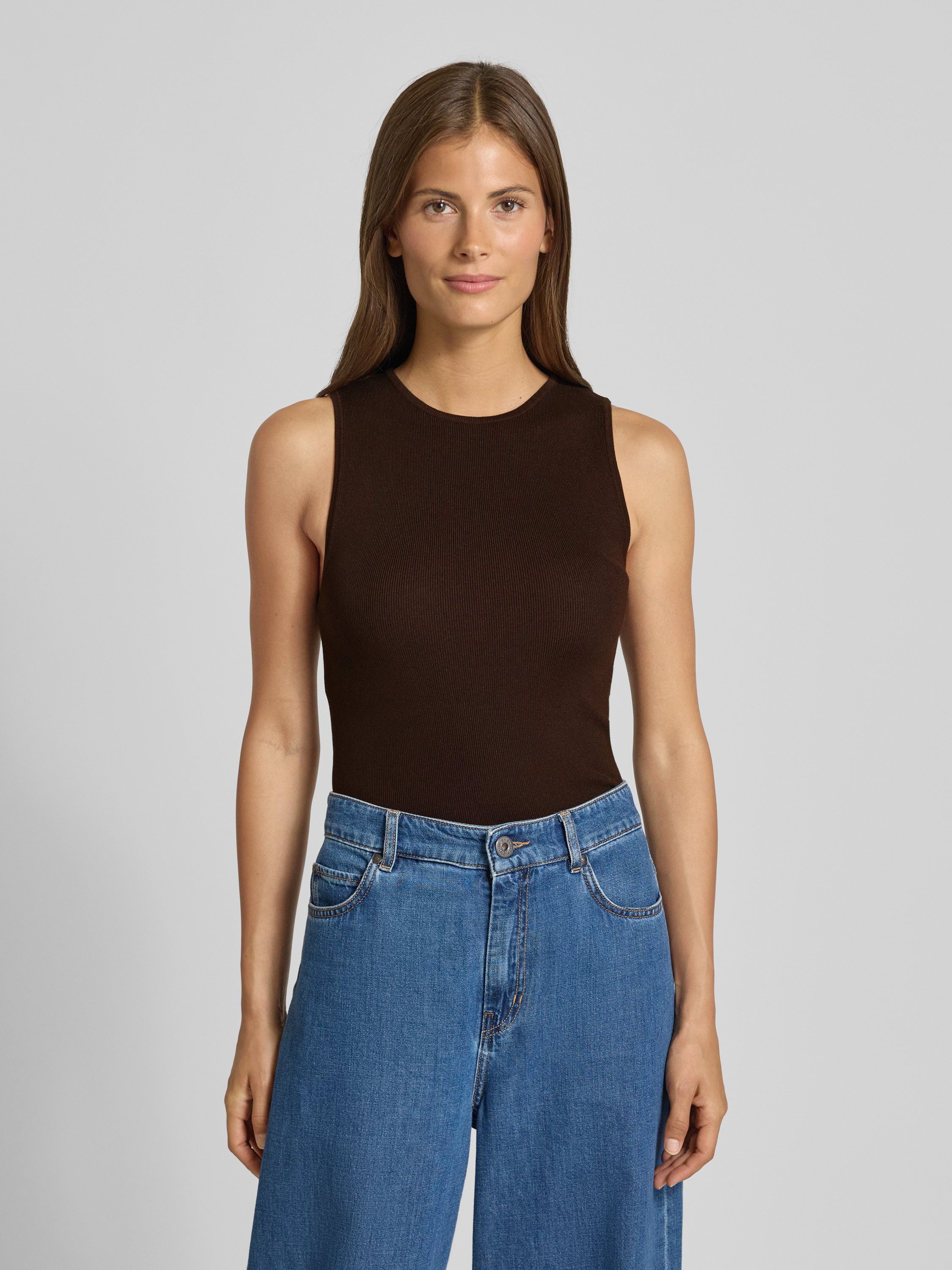 MangoTrägertop aus Viskose-Mix mit Rundhalsausschnitt Modell 'HERNAN' in dunkelbraun