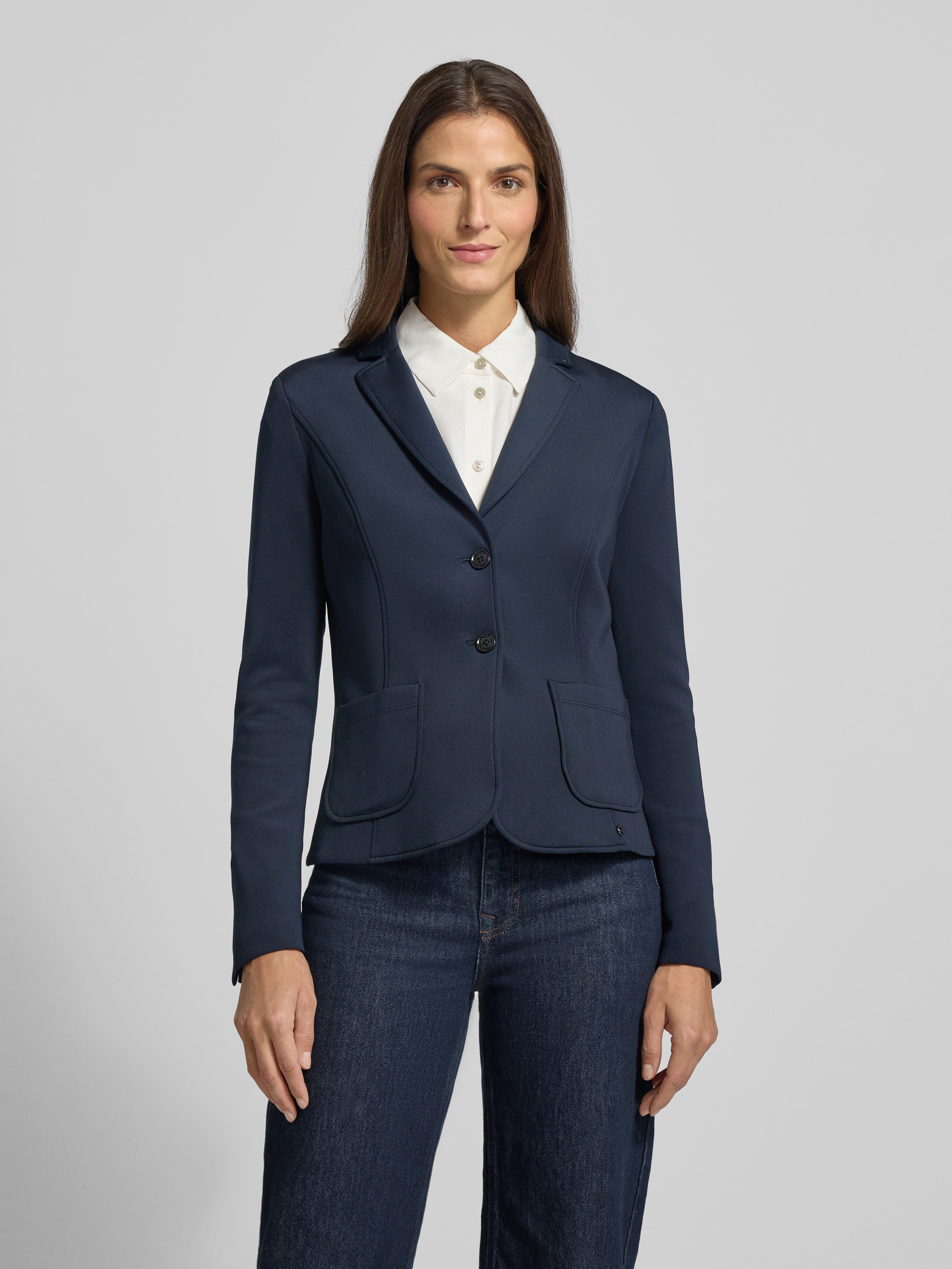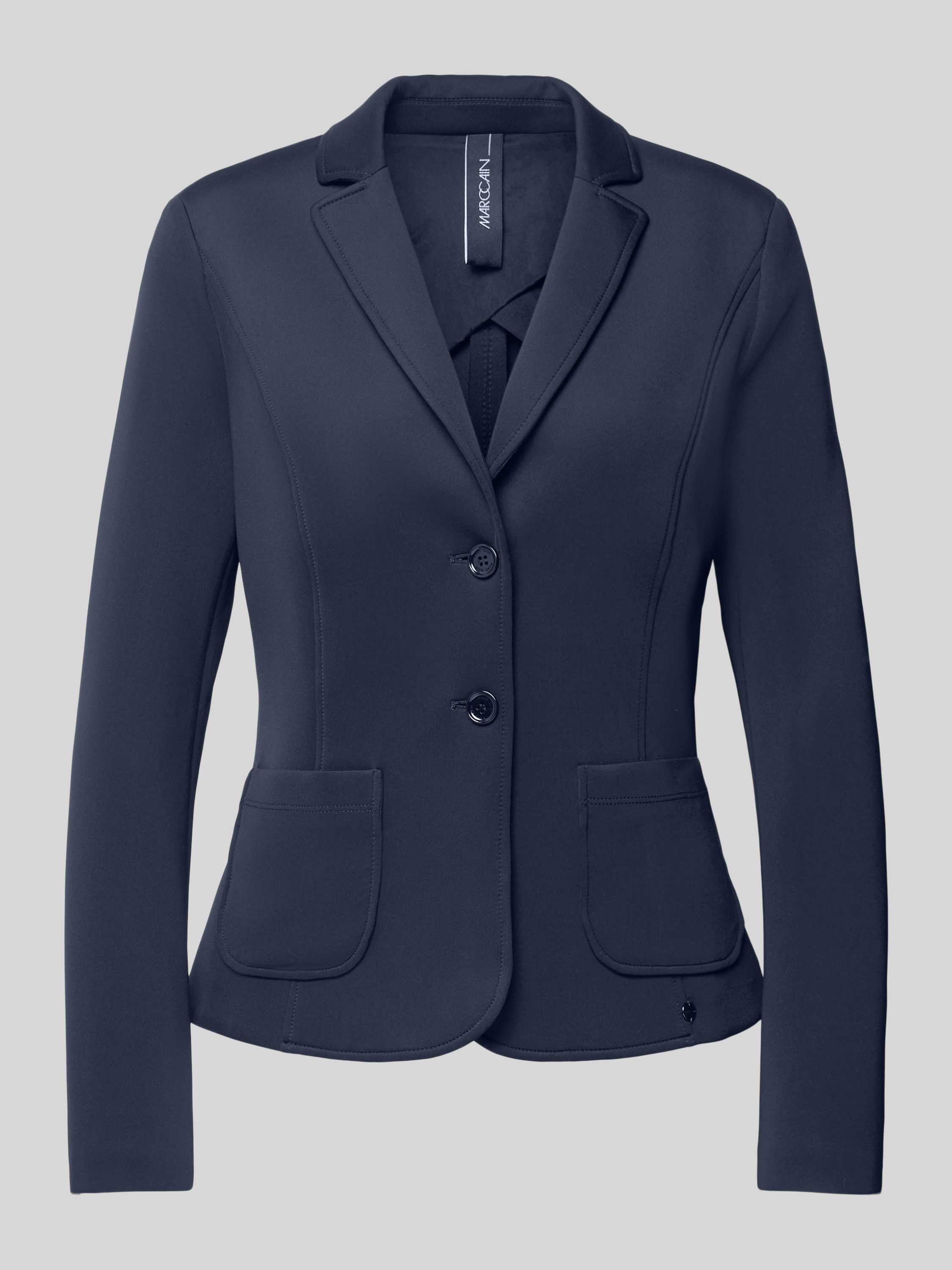Der Blazer mit Reverskragen von Marc Cain kombiniert strapazierfähiges Material mit einem Hauch von Stretch, was für angenehmen Tragekomfort sorgt. Dank des taillierten Schnitts passt er sich elegant der Silhouette an. Die aufgesetzten Taschen runden das stilvolle Design ab.