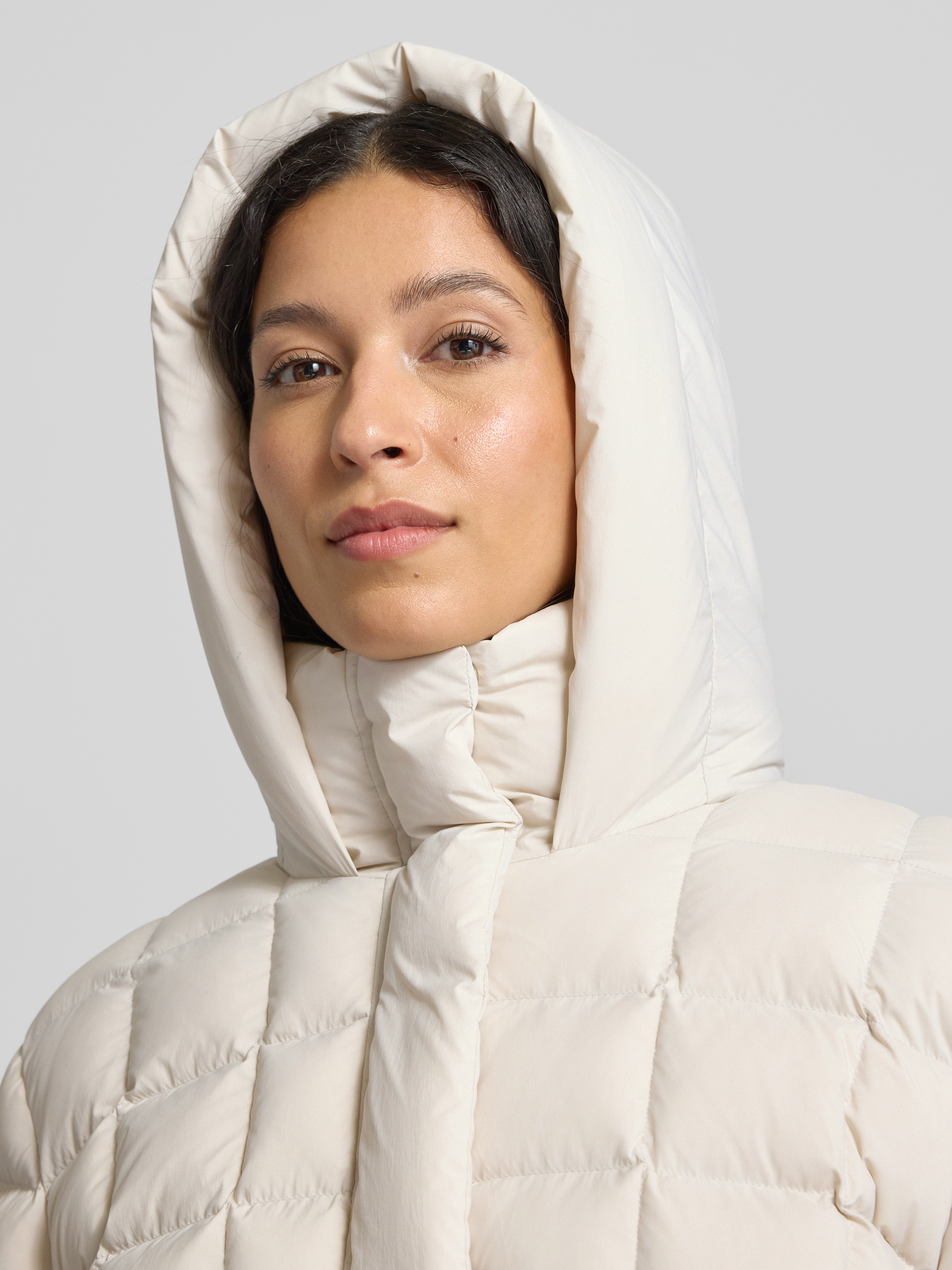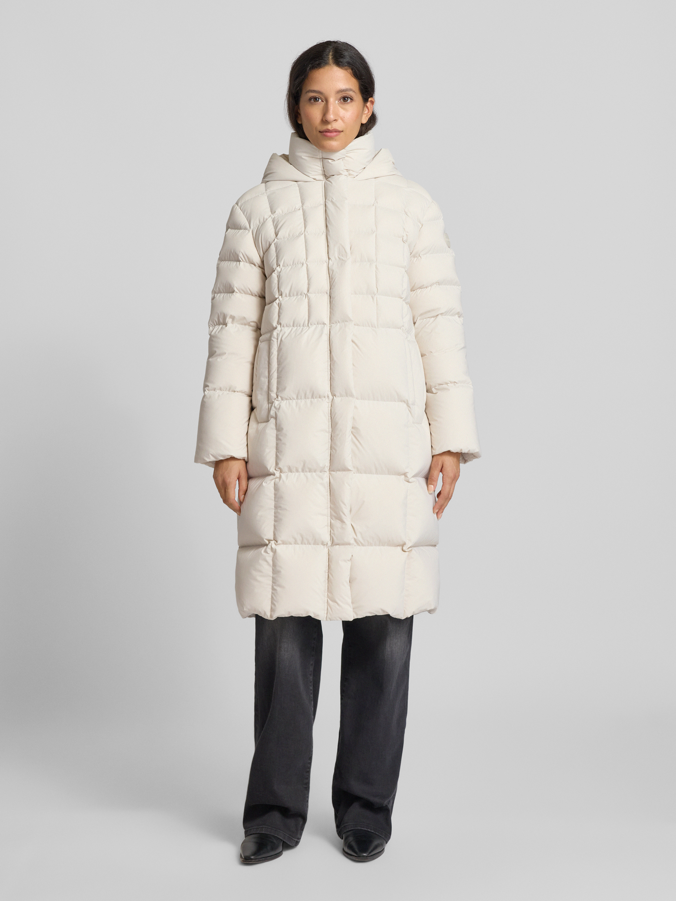 Der Daunenmantel von Marc Cain zeichnet sich durch einen geraden Schnitt aus, der Bewegungsfreiheit lässt und angenehm anliegt. Durch die Daunenfüllung entsteht eine wärmende Schicht, während Kapuze und Stehkragen vor Wind schützen. Praktische Eingrifftaschen sorgen dafür, dass unterwegs Kleinigkeiten griffbereit bleiben.