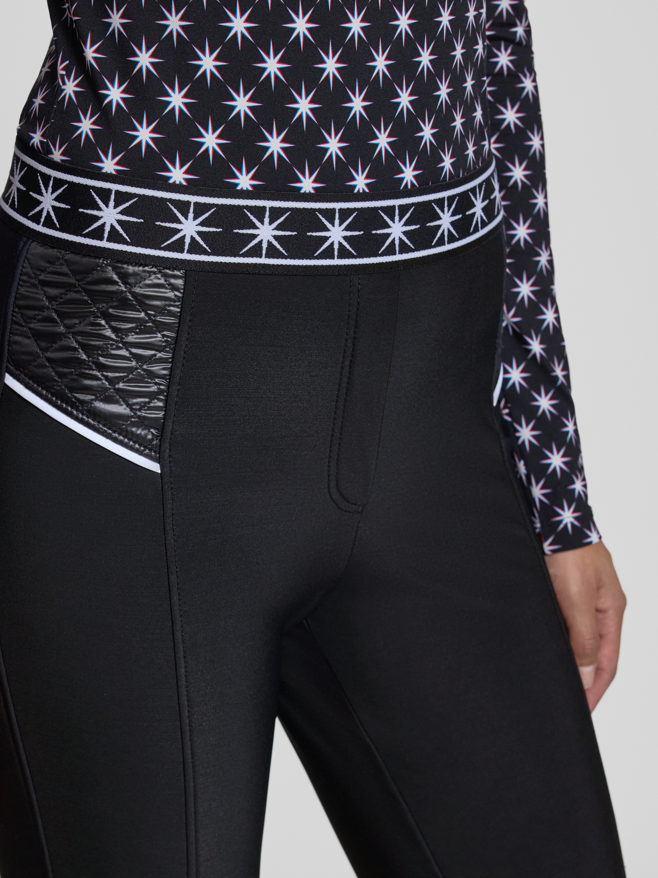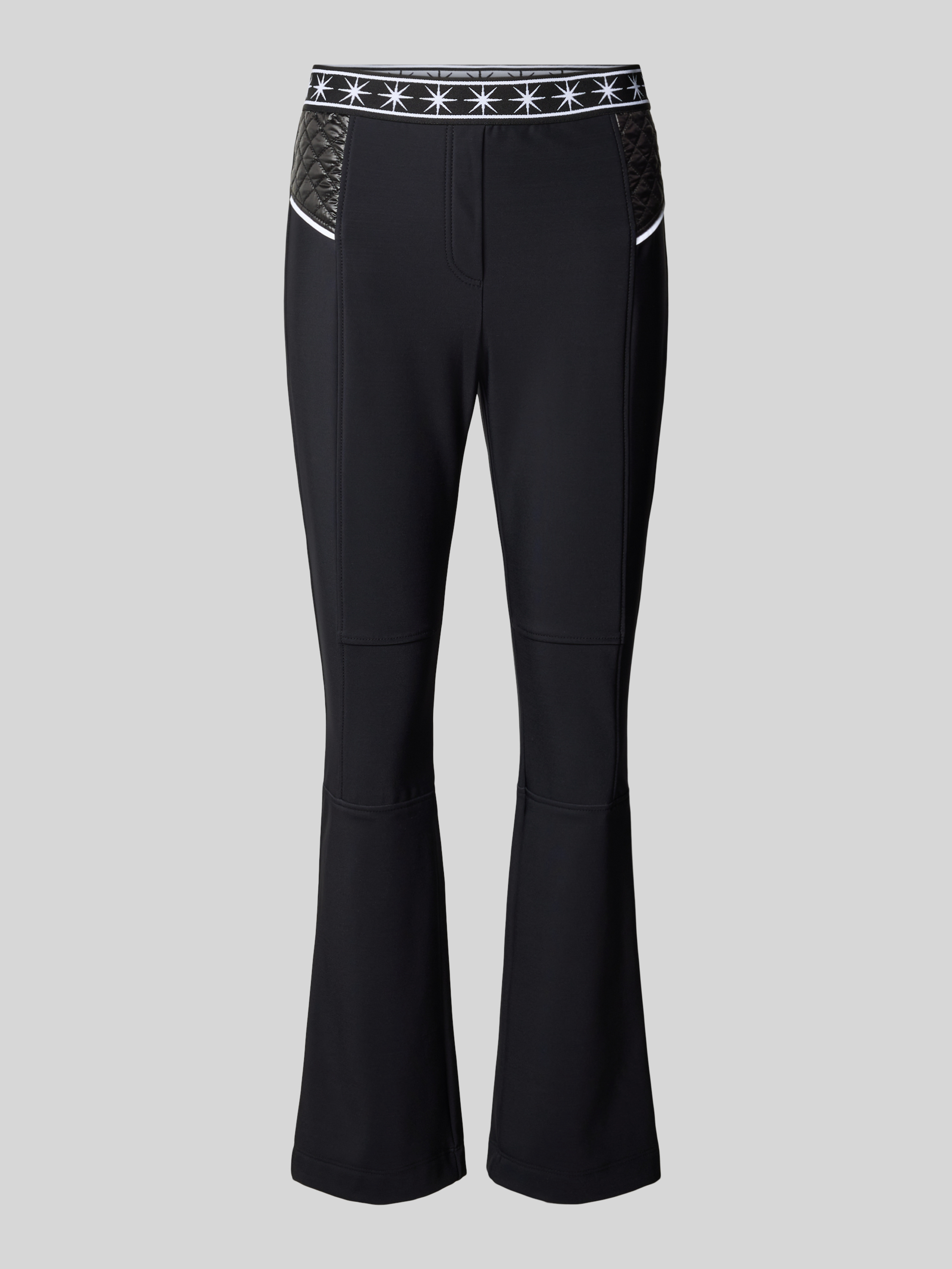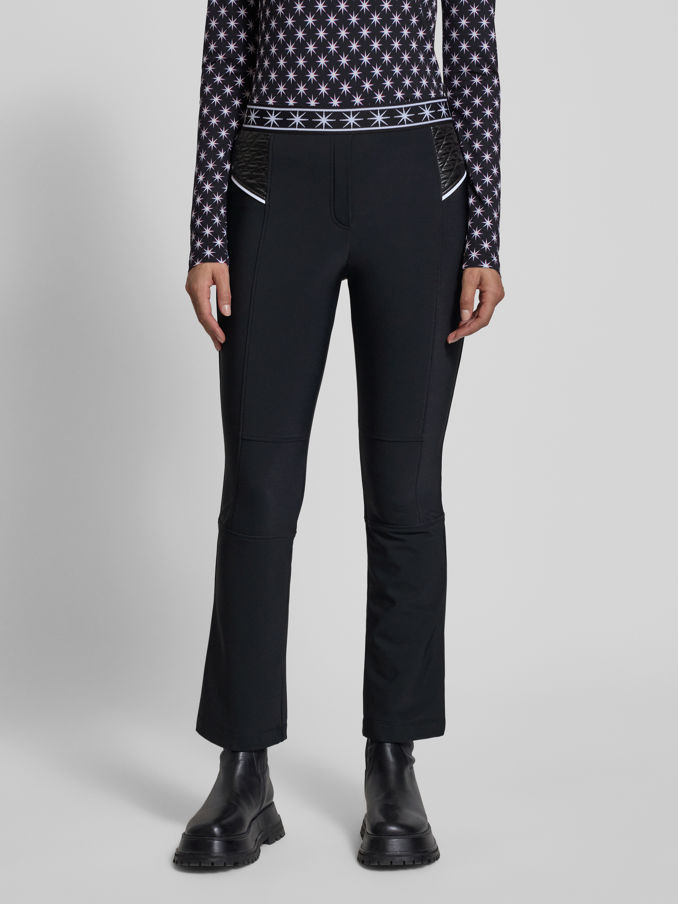 Die Damen Stoffhose von Marc Cain im Flared Fit kombiniert einen elastischen Material-Mix mit einem angenehm flexiblen Bund, wodurch sie Bewegungsfreiheit im Alltag unterstützt. Stepp-Details und feine Ziernähte unterstreichen die sorgfältige Verarbeitung und setzen dezente Akzente. Durch den ausgestellten Schnitt entsteht eine moderne Silhouette, die vielseitig kombinierbar bleibt.