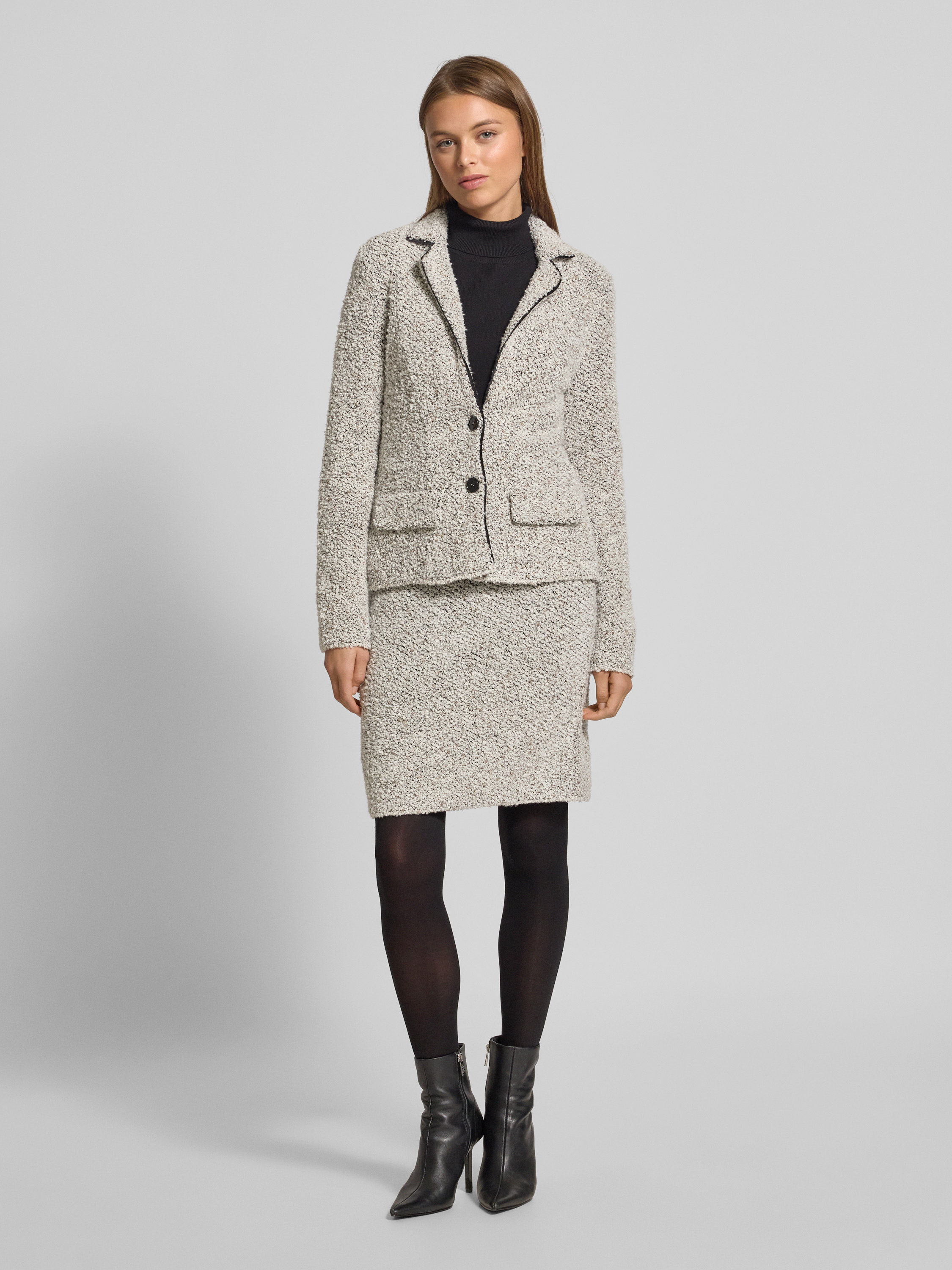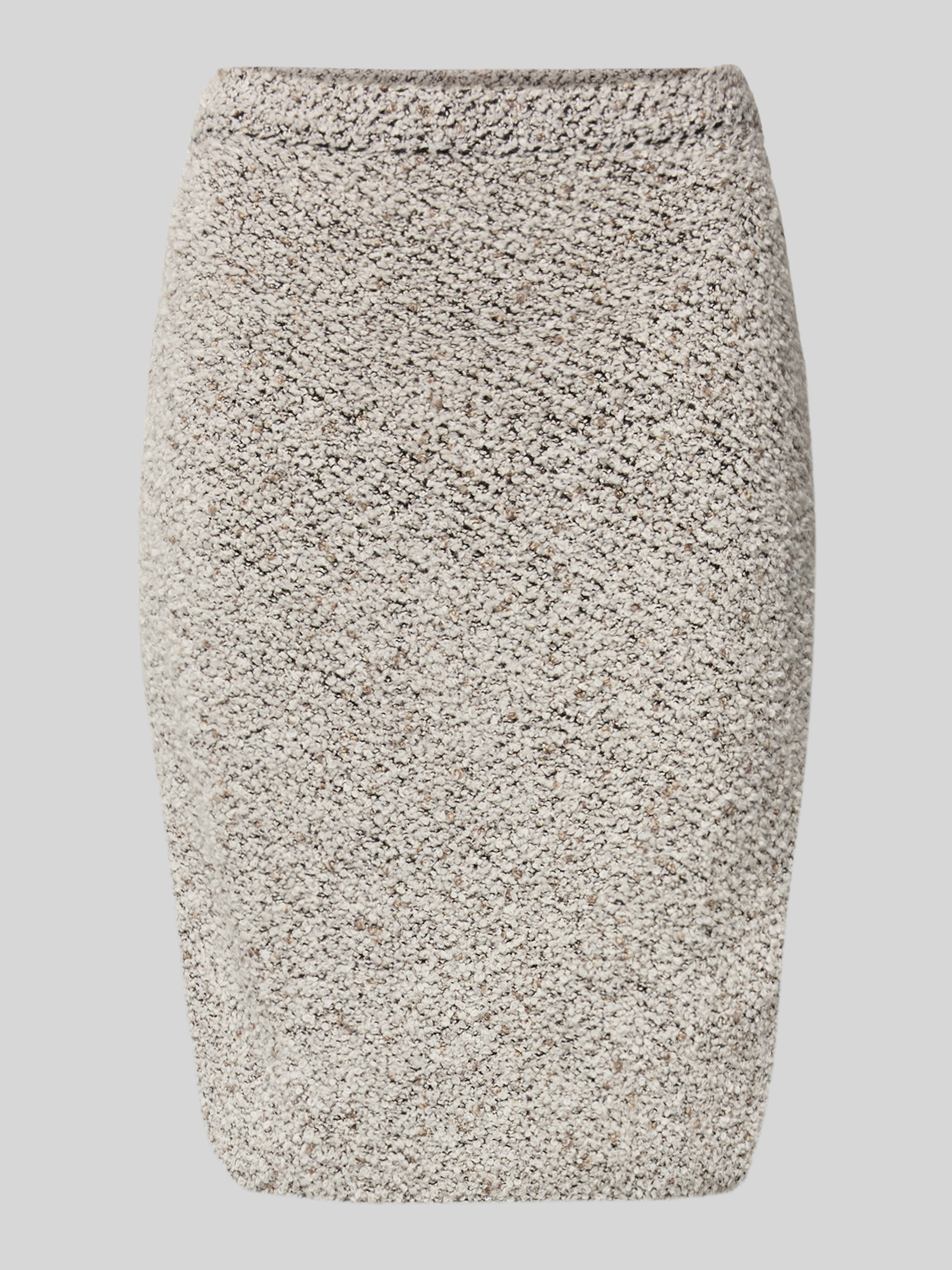 Der Damen Rock von Marc Cain zeigt sich in Bouclé-Optik und setzt durch den Woll-Anteil im Baumwoll-Mix auf angenehmen Tragekomfort. Mit seinem knielangen, geraden Schnitt passt er sich verschiedensten Anlässen mühelos an. Die strukturierte Oberfläche sorgt für einen dezenten, modischen Akzent.