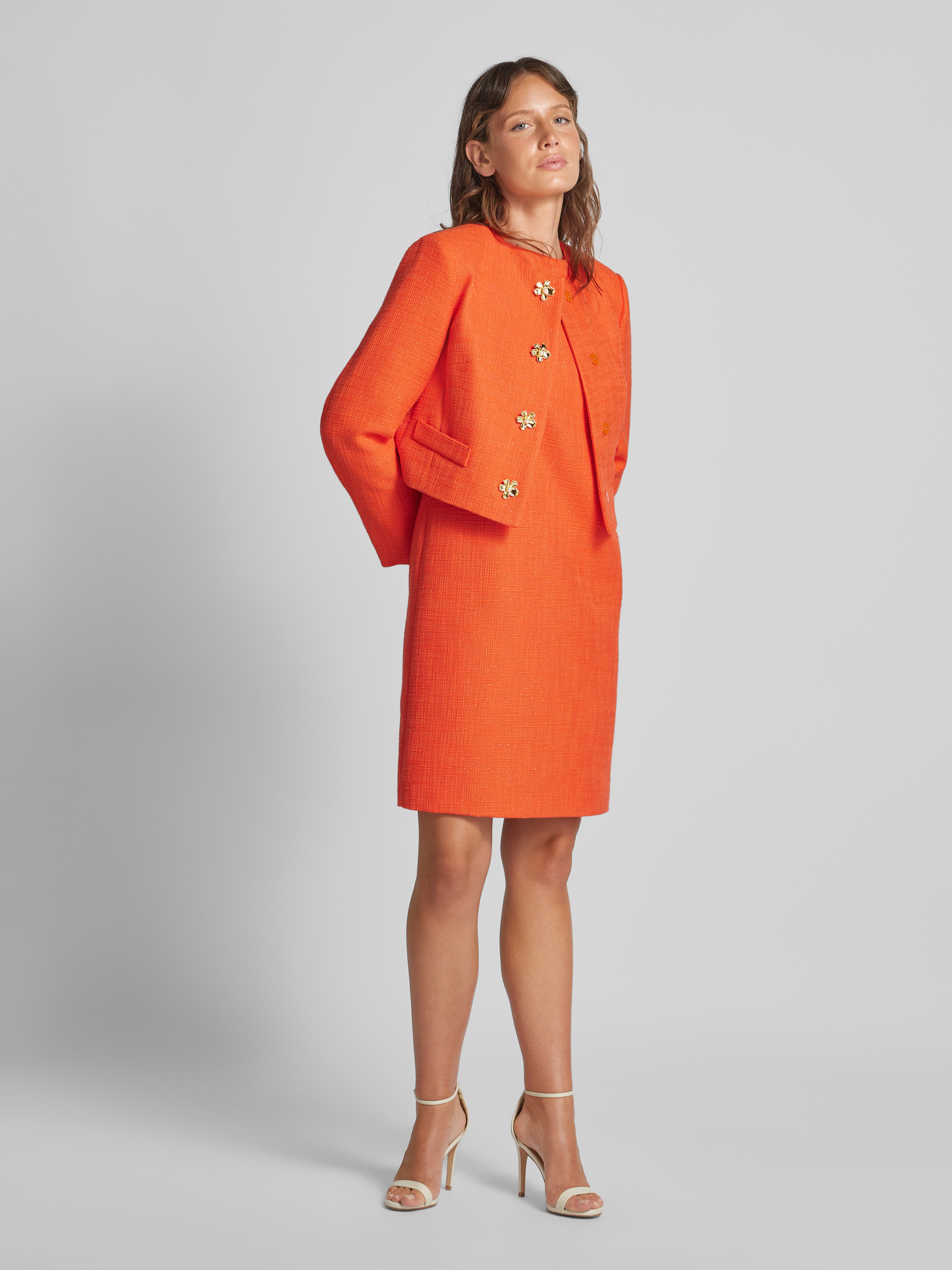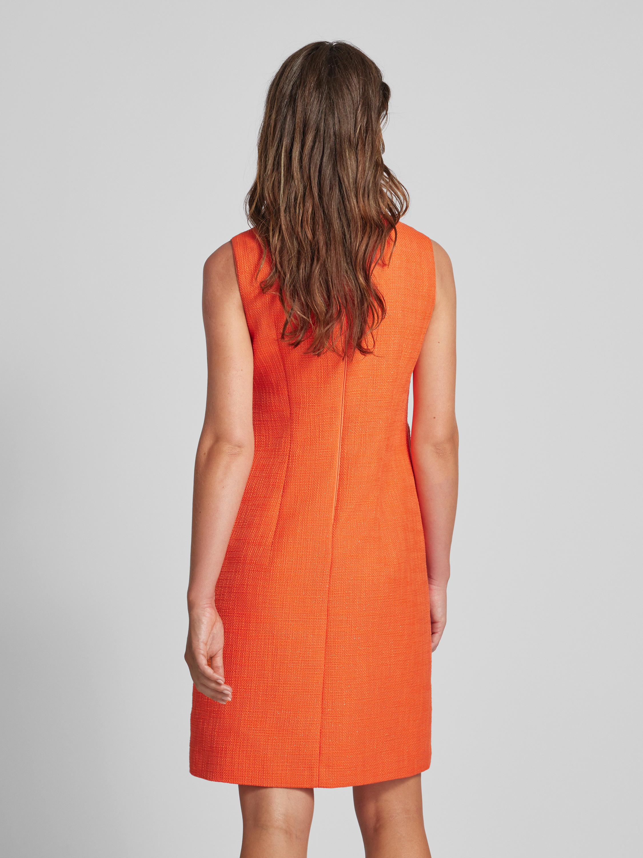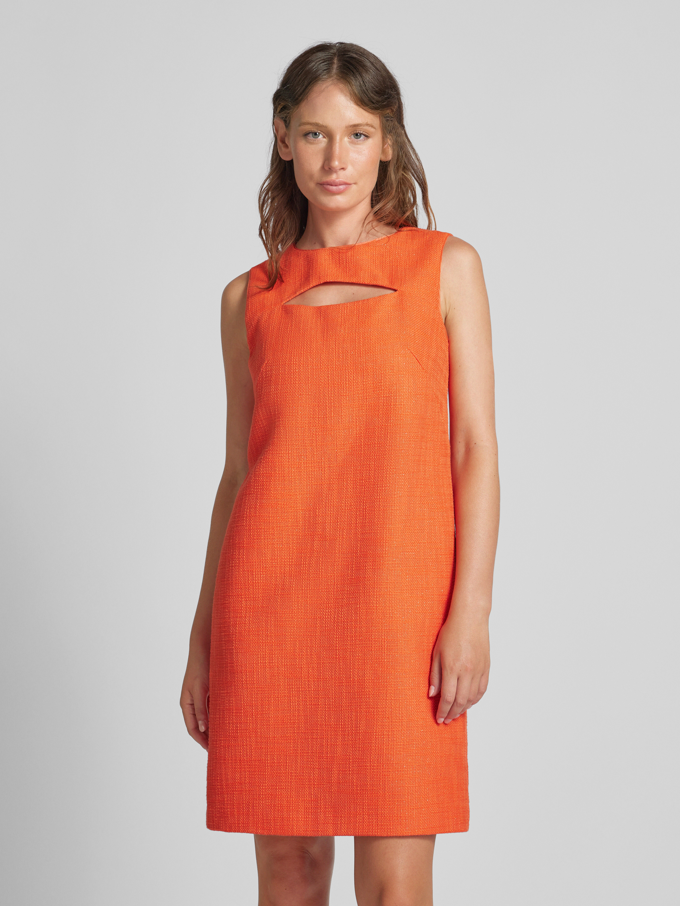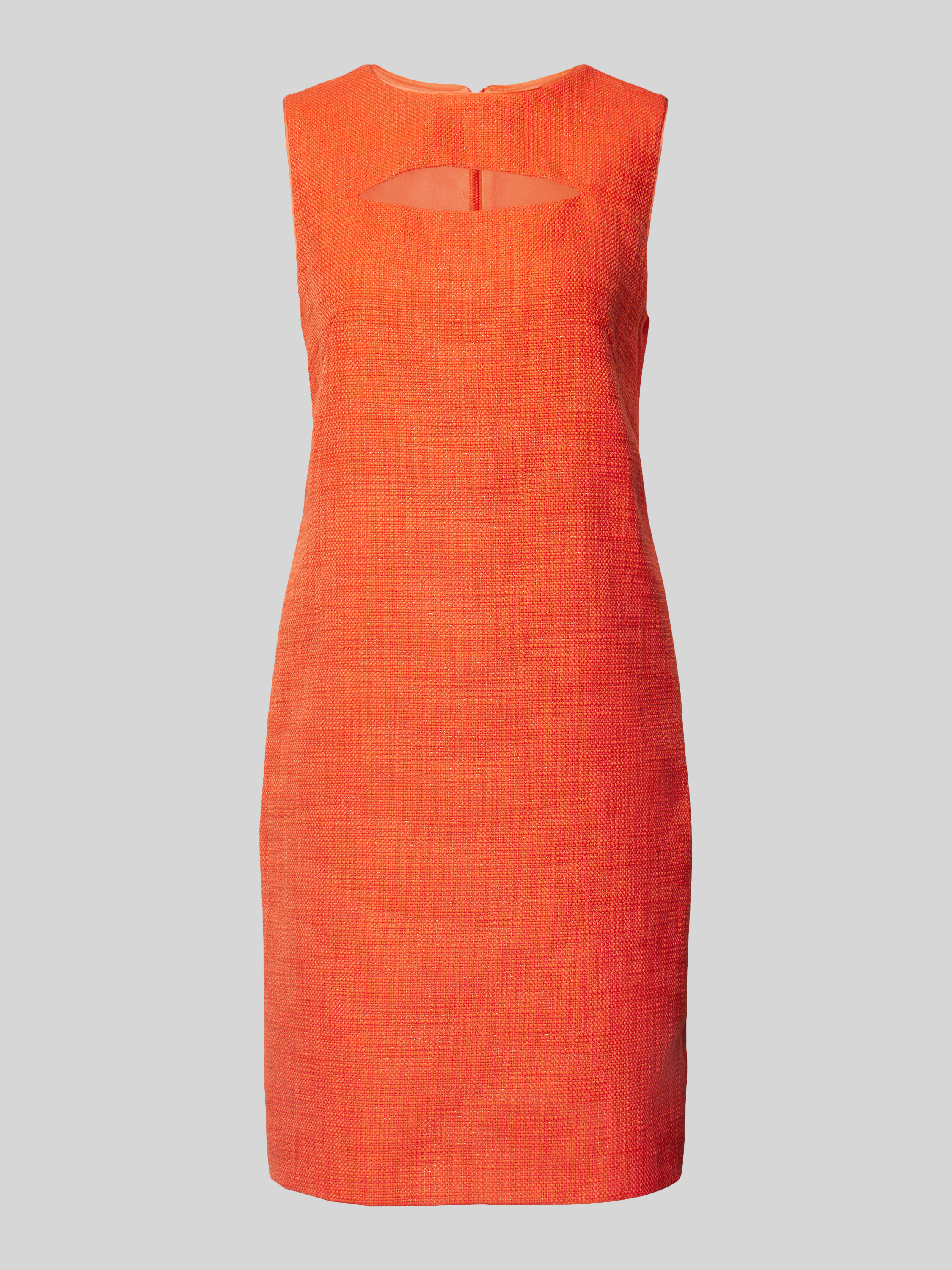 Das knielange Kleid von Marc Cain vereint eine schlichte, unifarbene Optik mit einem raffinierten Cut-Out-Detail. Der gerade Schnitt und das strukturierte Muster sorgen für eine angenehme Passform. Der gewachste Baumwoll-Mix verleiht dem ärmellosen Kleid einen eleganten Look.