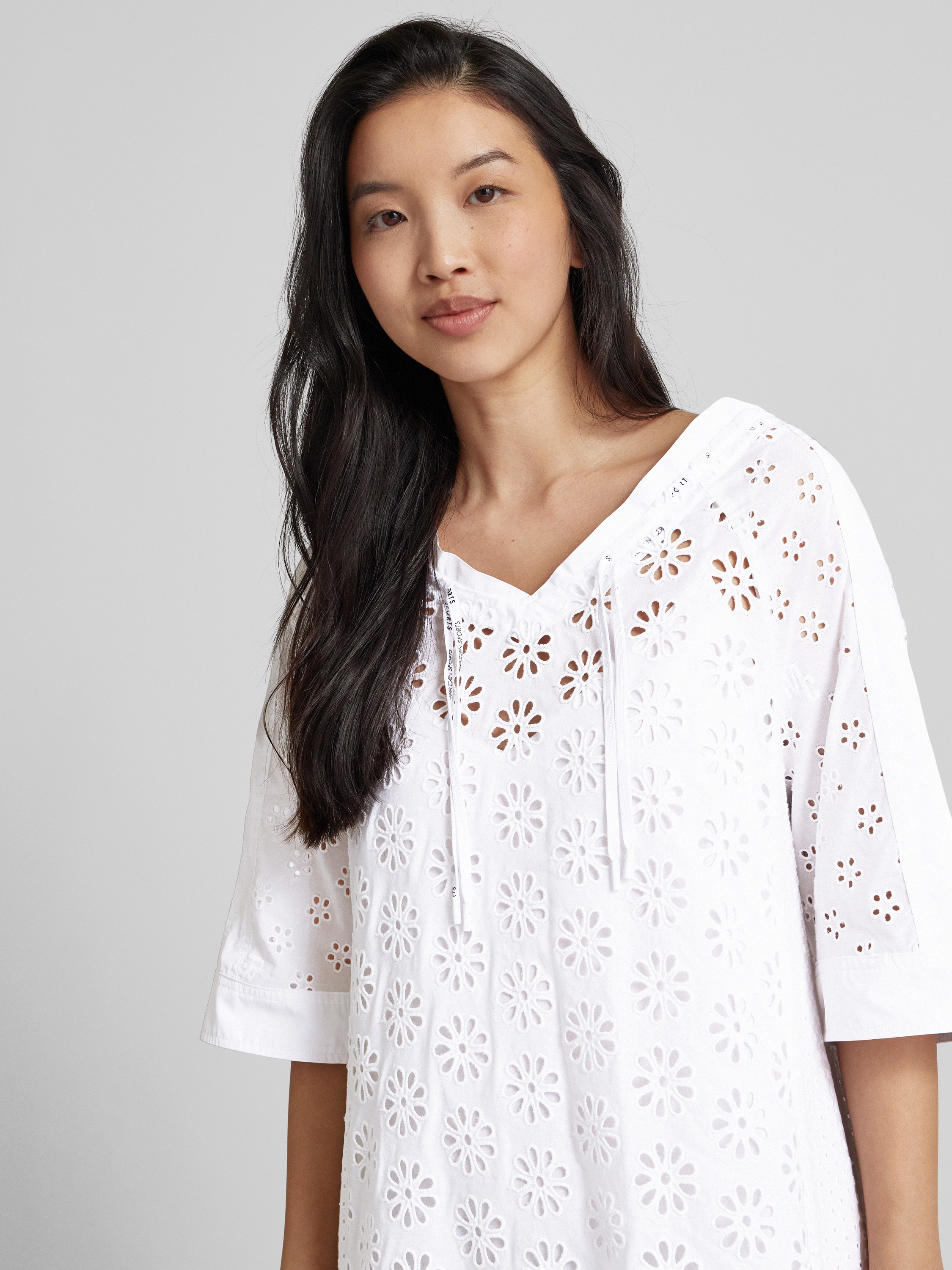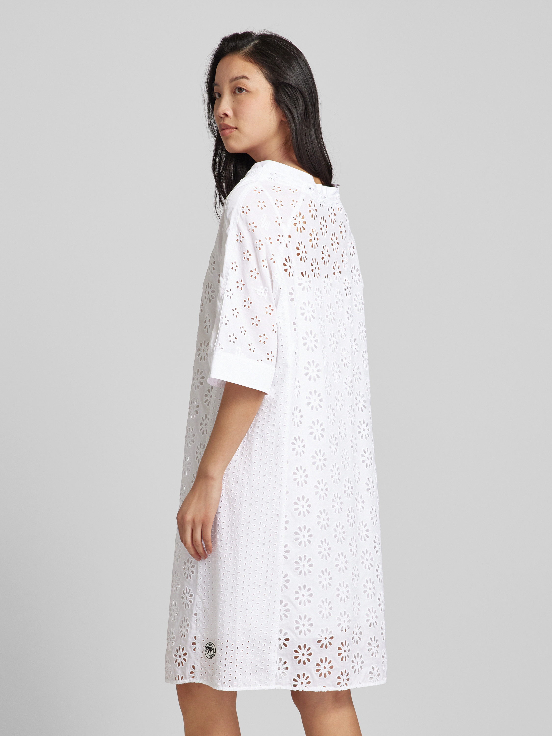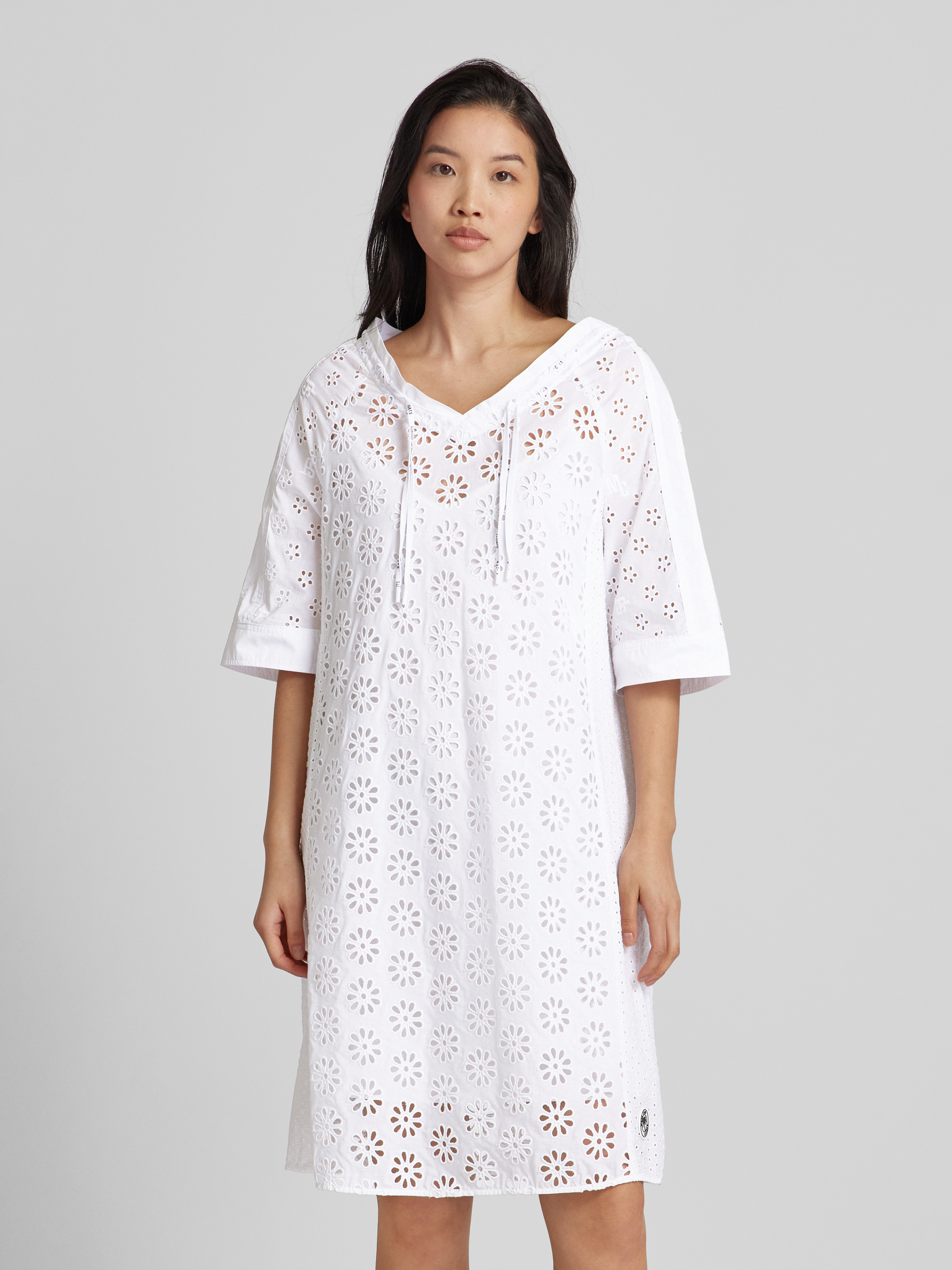 Marc CainKnielanges Kleid mit Lochstickerei in weiss