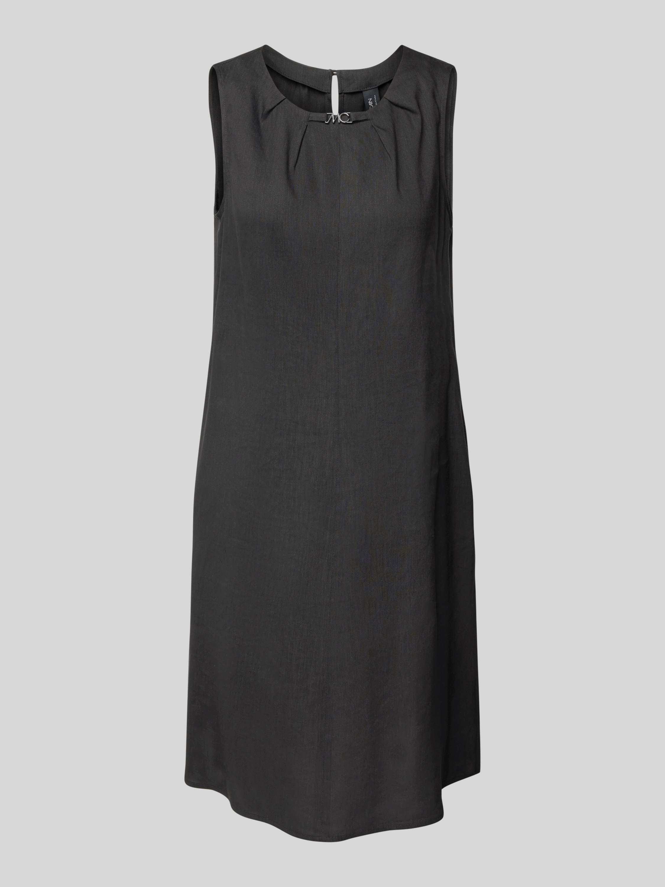 Marc CainKnielanges Leinenkleid mit Label-Applikation in black