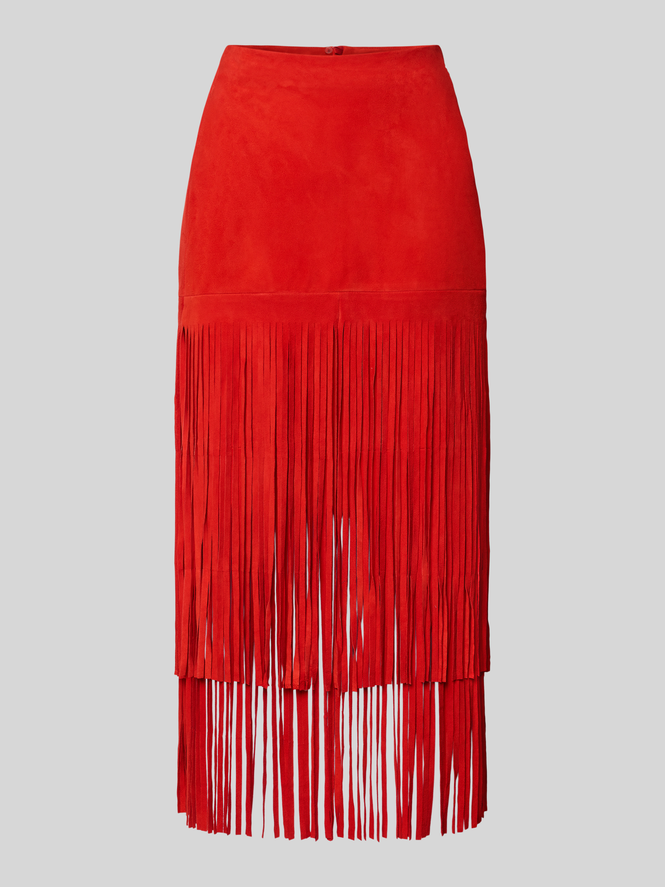 Marc CainLederrock mit Fransen und rückseitigem Reißverschluss in rot