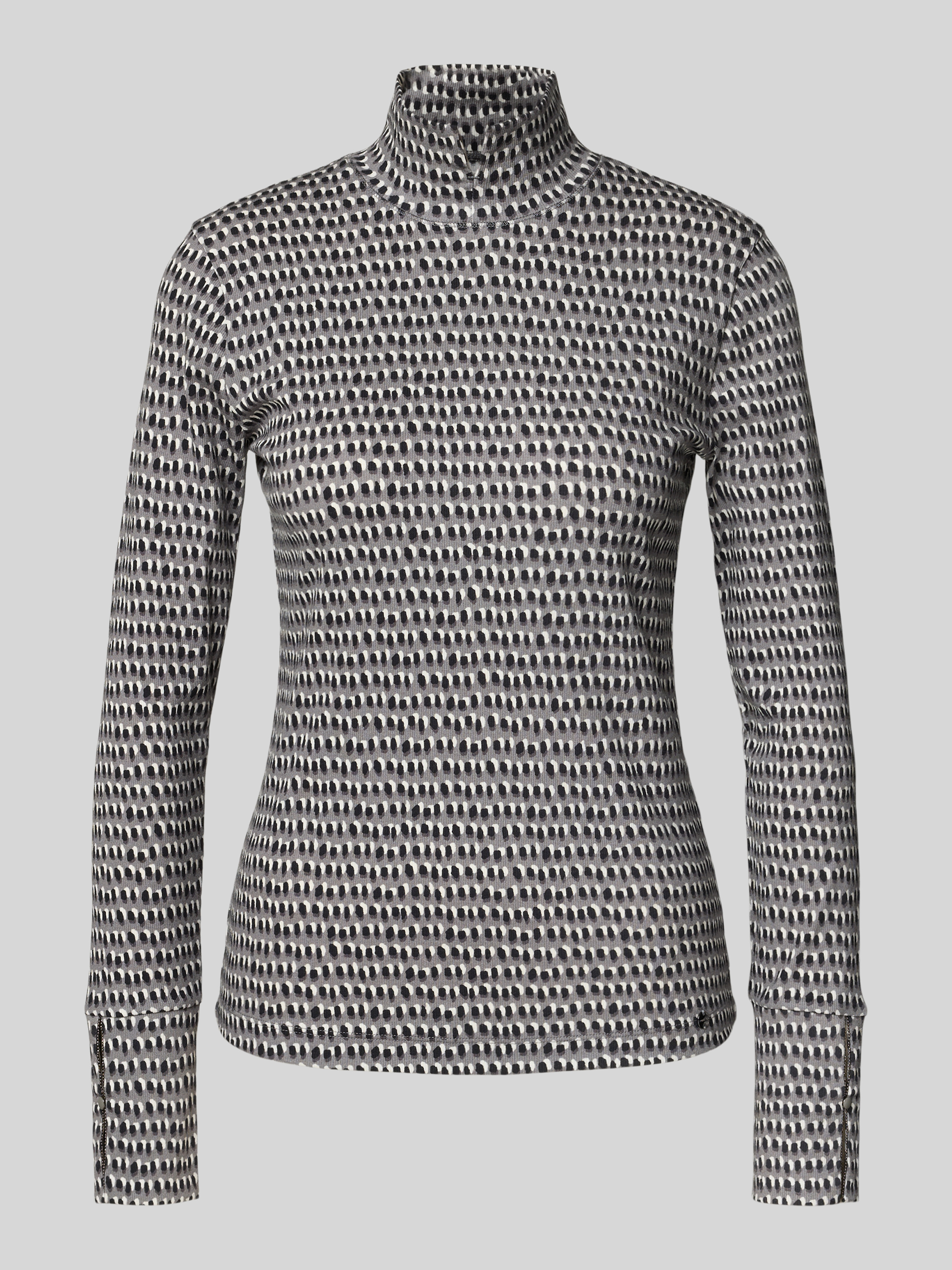 Das Damen Longsleeve von Marc Cain schmiegt sich durch die körpernahe Passform angenehm an und eignet sich durch den Stehkragen für vielseitige Kombinationen. Der weiche Baumwoll-Elasthan-Mix sorgt für Komfort, während eine dezente Label-Applikation das Design unaufdringlich abrundet.