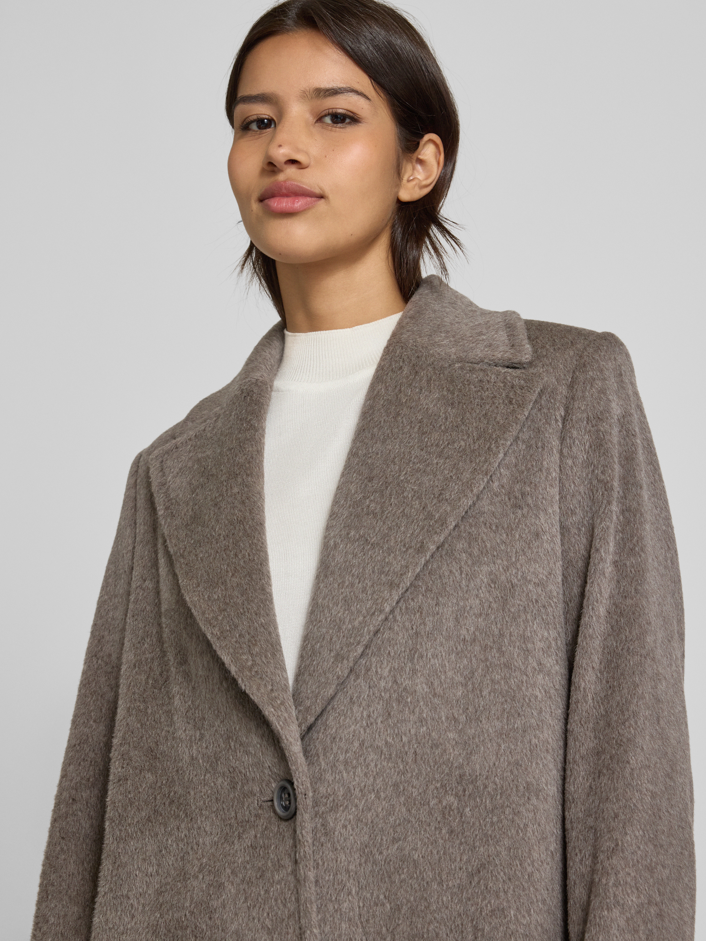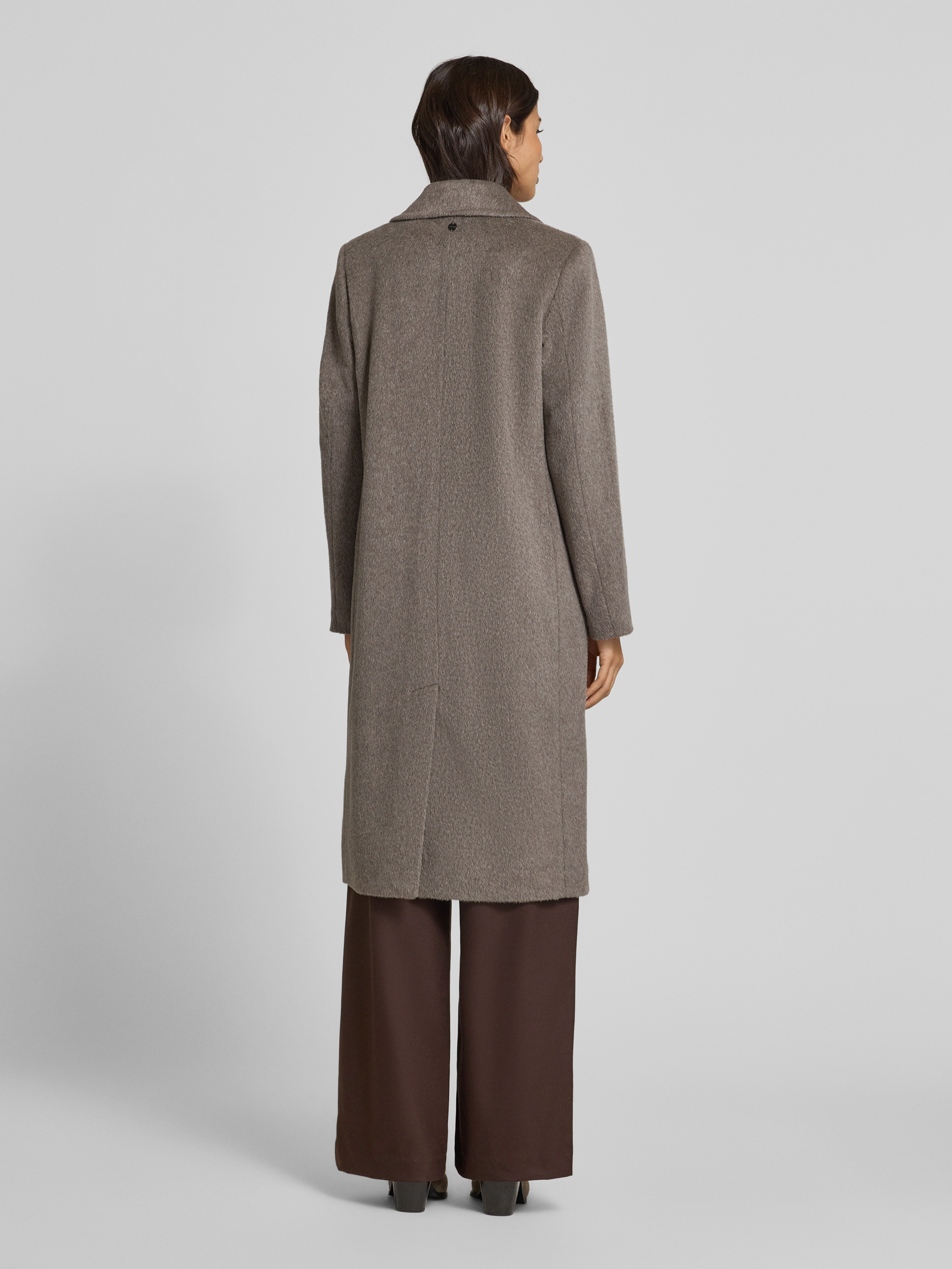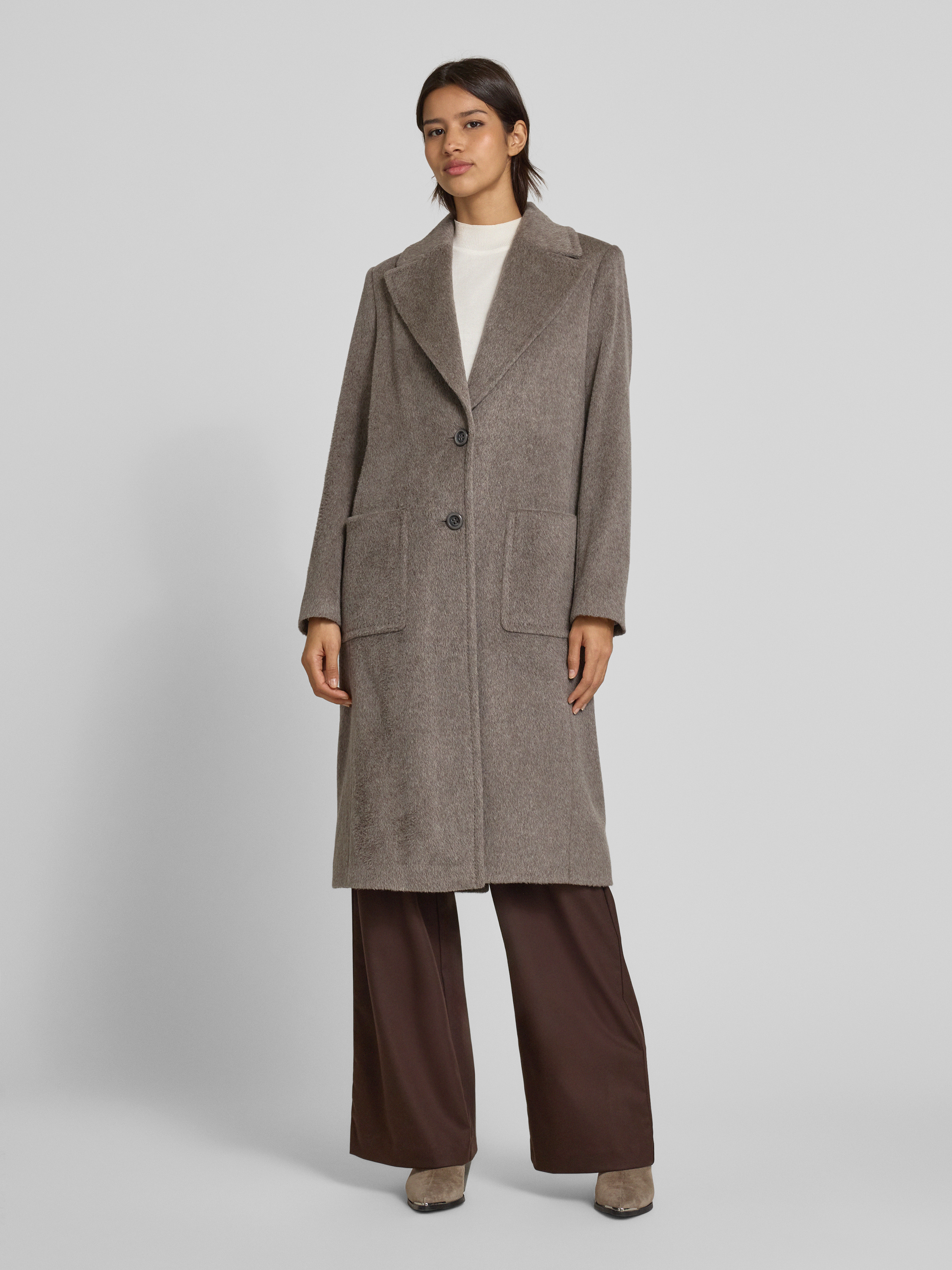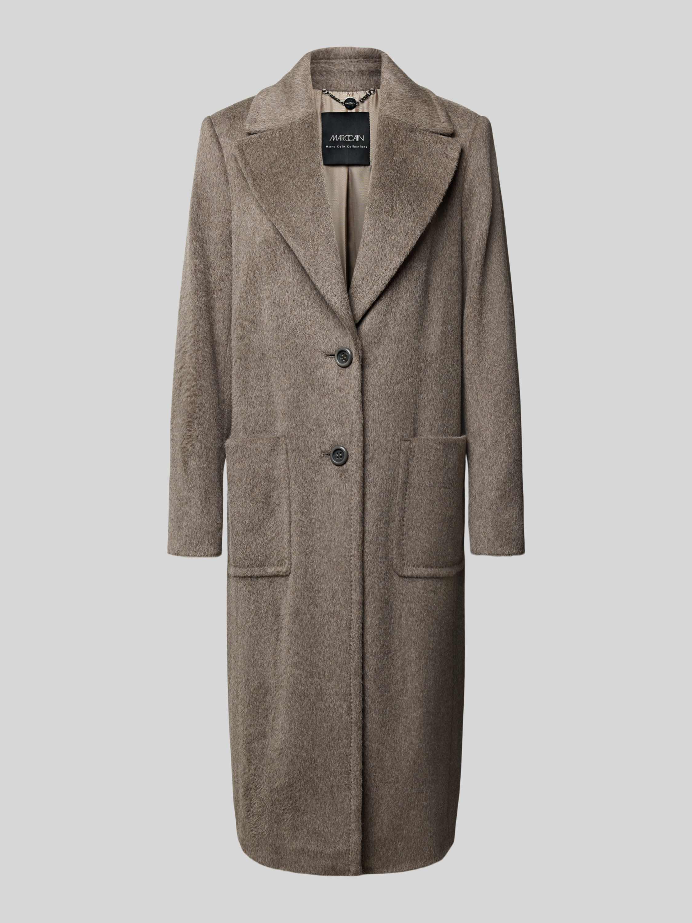 Der Damen Mantel von Marc Cain aus Alpaka-Mix mit Schurwolle-Anteil zeichnet sich durch seinen geraden Schnitt aus, wodurch er unkompliziert über verschiedene Outfits getragen werden kann. Der Reverskragen und aufgesetzte Taschen sorgen für eine klassische, zugleich praktische Optik. Dank des hochwertigen Materials fühlt sich das Modell angenehm leicht und wärmend an.