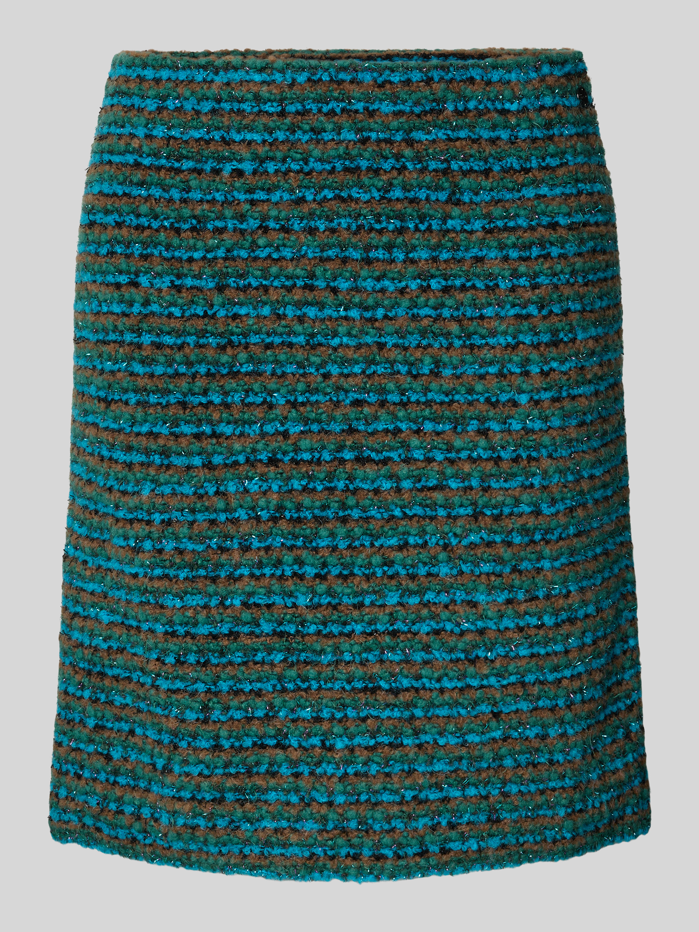 Der Minirock von Marc Cain zeigt sich in einer Strick-Optik, die durch den Material-Mix mit Baumwoll-Anteil angenehm auf der Haut liegt. Durch den geraden Schnitt entsteht ein klarer Look, der vielseitige Kombinationsmöglichkeiten eröffnet. Ein blickdichter Unterrock sorgt zudem für ein sicheres Tragegefühl.