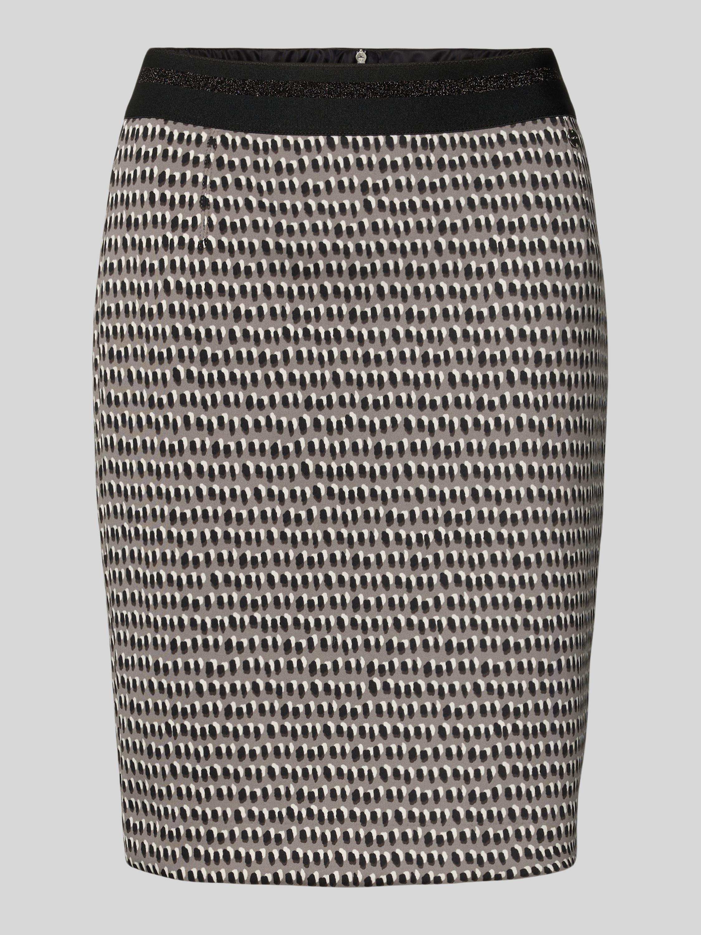 Der Minirock von Marc Cain zeichnet sich durch eine körpernahe Silhouette und einen angenehmen Sitz aus, da sich der elastische Material-Mix flexibel anpasst. Ein schmaler Bund in Glitzer-Optik sorgt für einen dezenten Akzent und unterstreicht den modernen Stil. So eignet sich das Modell sowohl für entspannte Freizeitmomente als auch für kombinierte Outfits im Alltag.