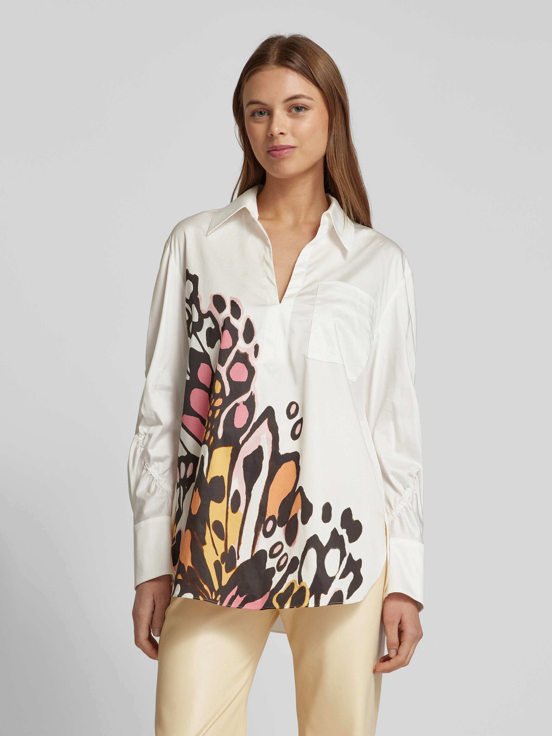 Marc CainRegular Fit Bluse mit Umlegekragen in offwhite