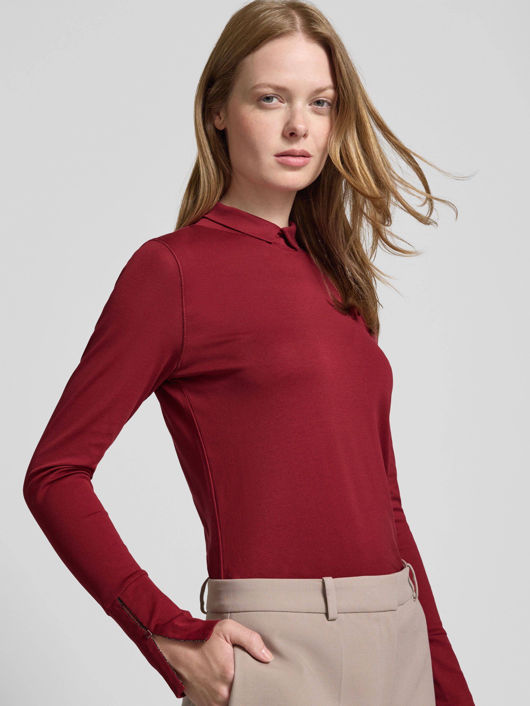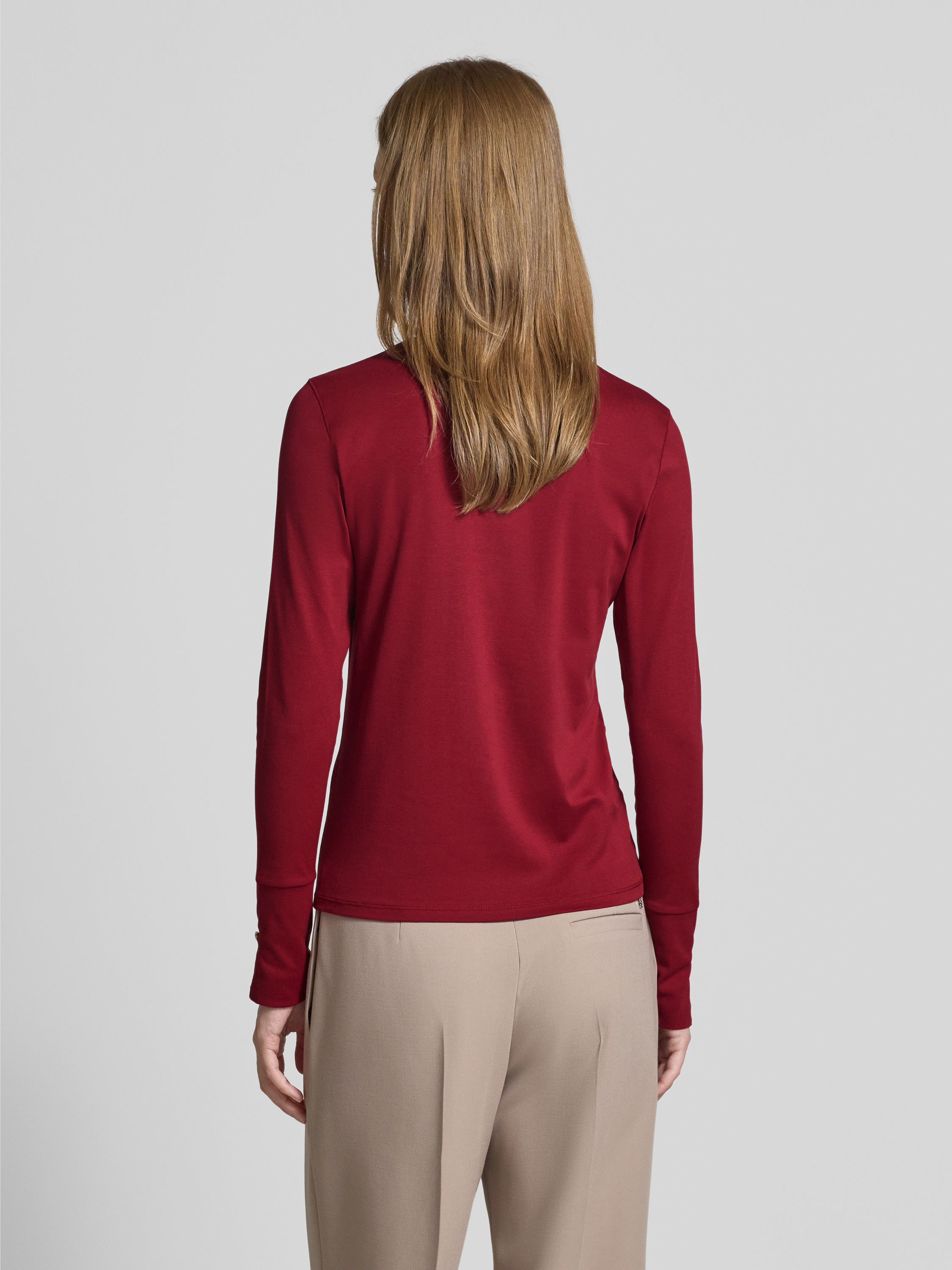 Das Damen Longsleeve von Marc Cain legt mit seinem Regular Fit und dem Rollkragen Wert auf angenehmen Tragekomfort. Durch den elastischen Baumwoll-Mix passt es sich leicht an verschiedene Bewegungen an. Breite Ärmelabschlüsse und eine feine Zier-Applikation unterstreichen das dezente Design.