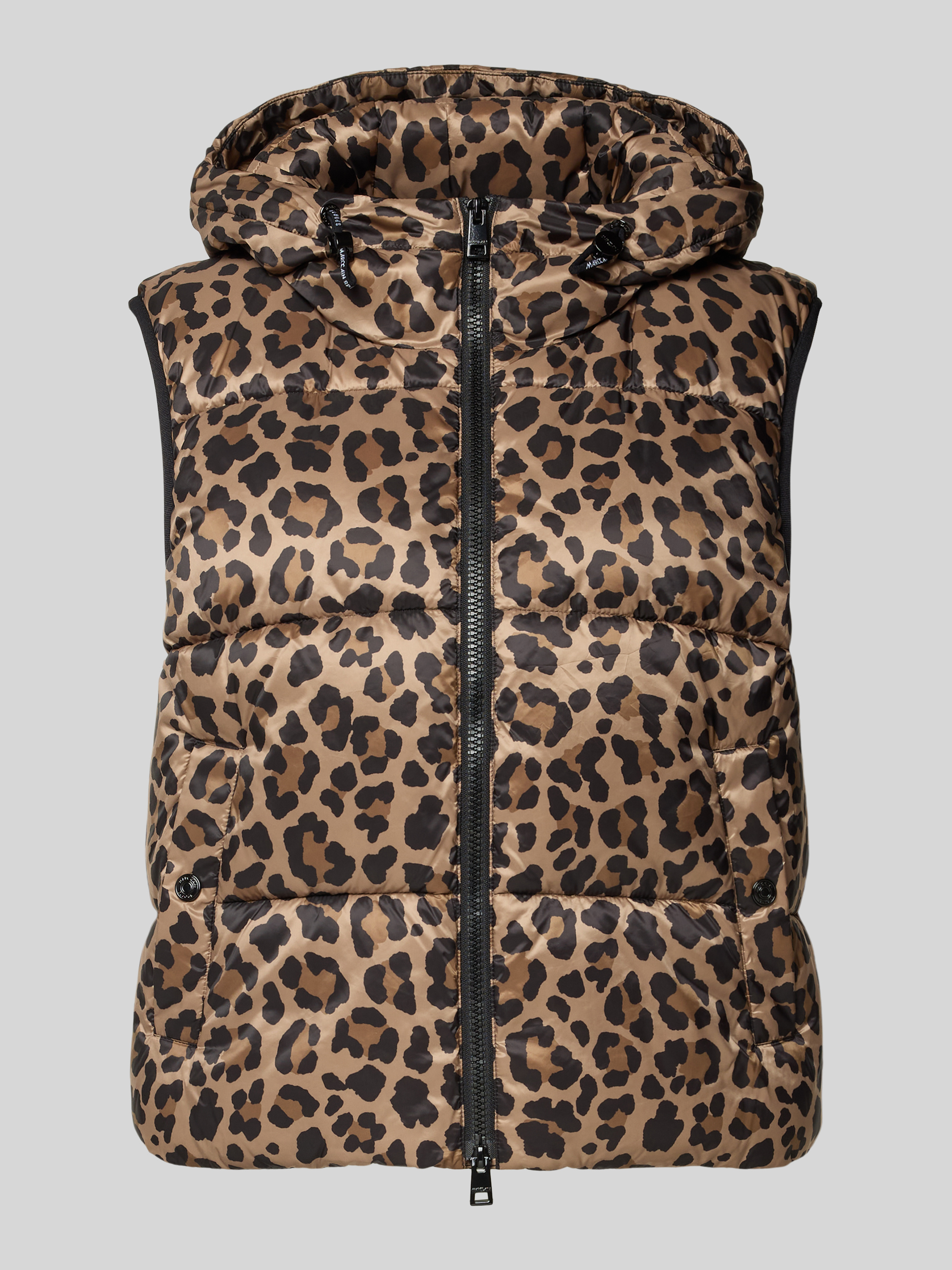 Die Regular Fit Steppjacke von Marc Cain zeigt sich mit einem lebendigen Allover-Animal-Print und lockerer Passform, wodurch sie vielseitig kombinierbar bleibt. Ein gefütterter Stehkragen und die Kapuze mit Tunnelzug halten angenehm warm. Für Alltag und Spaziergang gleichermaßen geeignet.