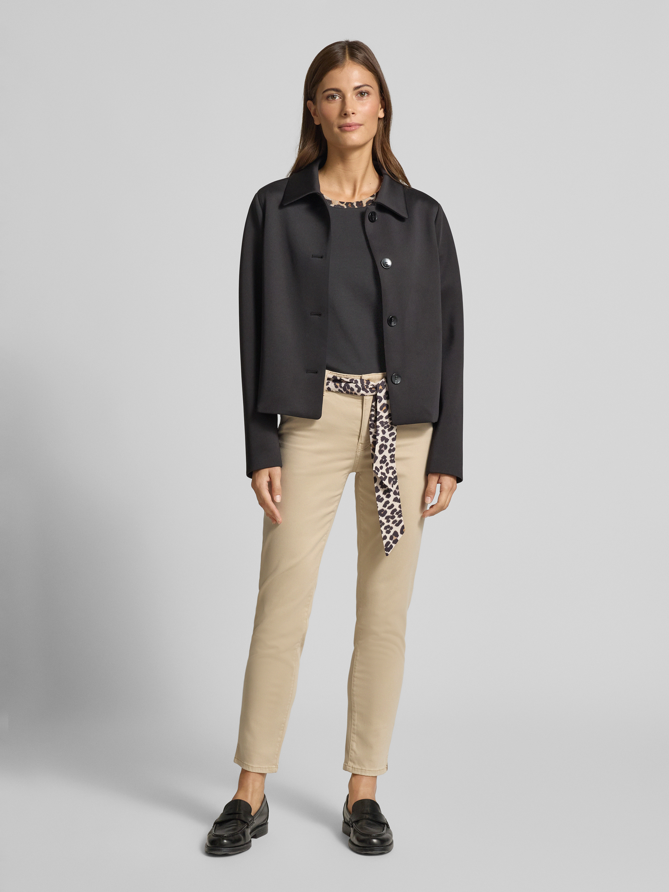 Das Marc Cain Regular Fit T-Shirt mit Animal-Print sitzt angenehm locker und passt sich durch den elastischen Baumwoll-Mix mühelos an verschiedene Bewegungen an. Ein kontrastiver Abschluss bringt Abwechslung, während der klassische Rundhalsausschnitt Alltag und Freizeit unkompliziert begleitet. Halbarm und dezenter Schnitt unterstreichen die vielseitige Tragbarkeit.