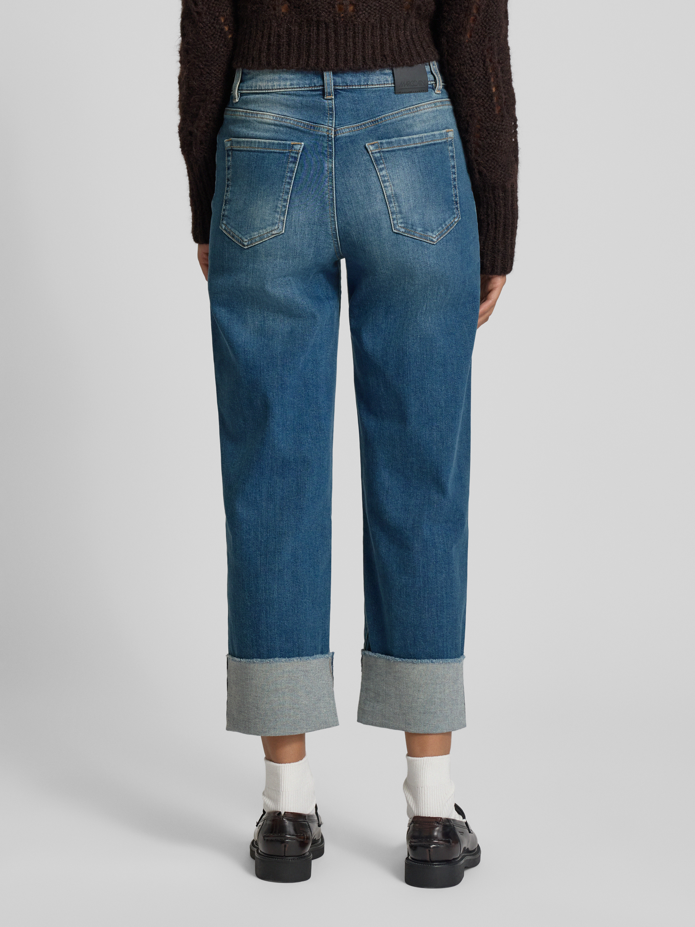 Die Damenjeans von Marc Cain fällt durch ihren geraden Schnitt und das klassische 5-Pocket-Design angenehm lässig aus. Dank des Baumwoll-Elasthan-Mix trägt sie sich bequem und bleibt formstabil. So eignet sich die Straight Leg Jeans für vielseitige Kombinationen im Alltag.