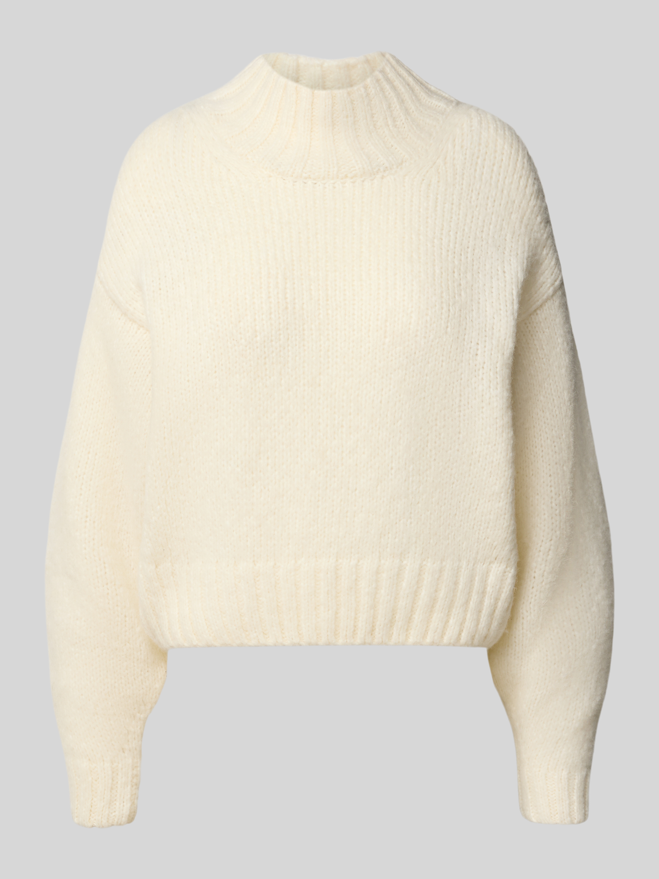 Marc CainRelaxed Fit Wollpullover mit Alpaka-Anteil in Strick-Optik in offwhite