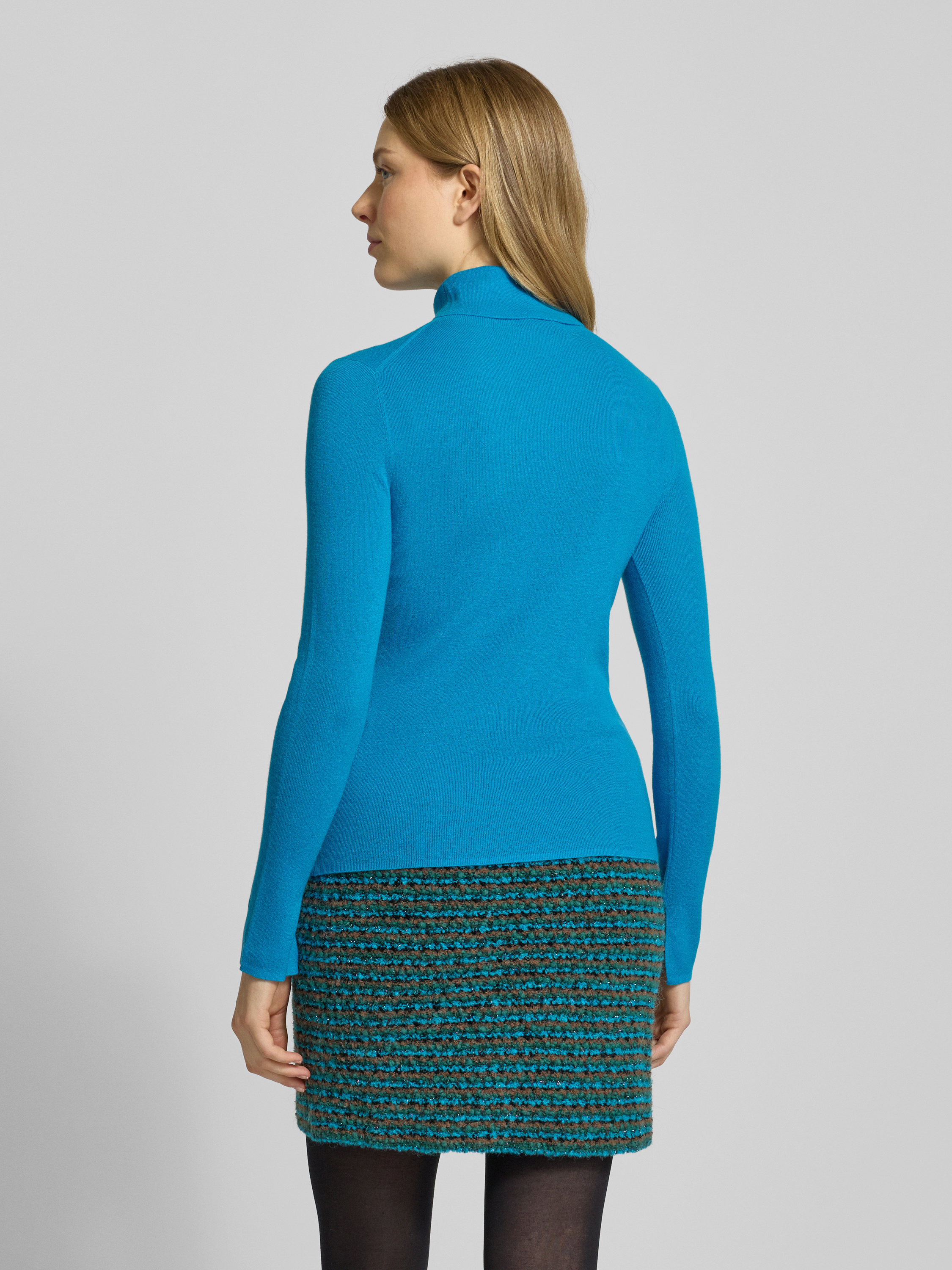 Der Damen Rollkragenpullover von Marc Cain kombiniert einen Schurwoll-Mix mit feinem Kaschmir-Anteil und liegt angenehm weich auf der Haut. Durch den schmalen Slim Fit schmiegt sich das Modell an, ohne einzuengen, und sorgt so für Bewegungsfreiheit im Alltag. Die hochwertige Materialzusammensetzung hält angenehm warm und eignet sich besonders für kühlere Tage.