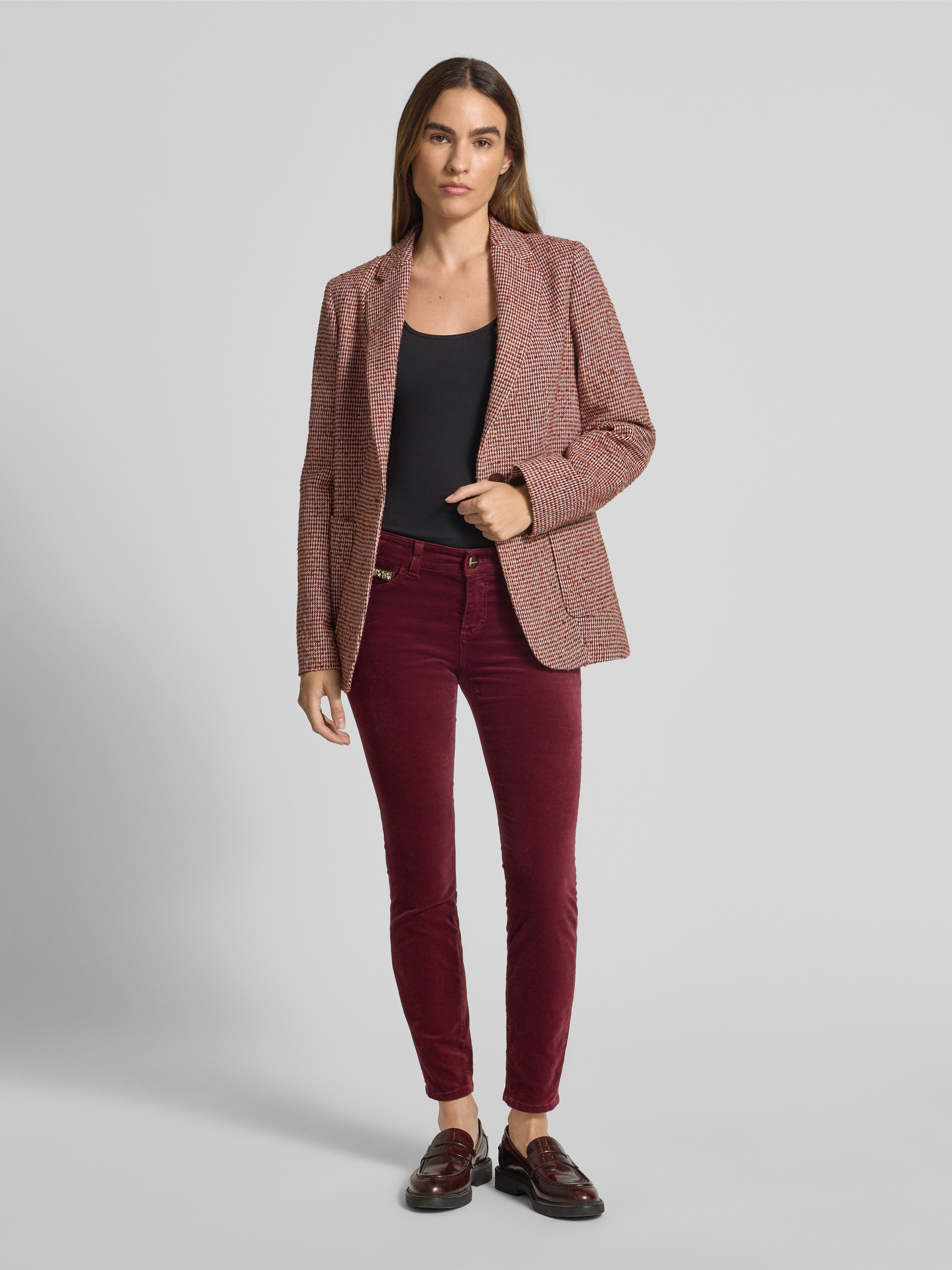 Marc CainSkinny Fit Stoffhose mit Zier-Stitching in bordeaux