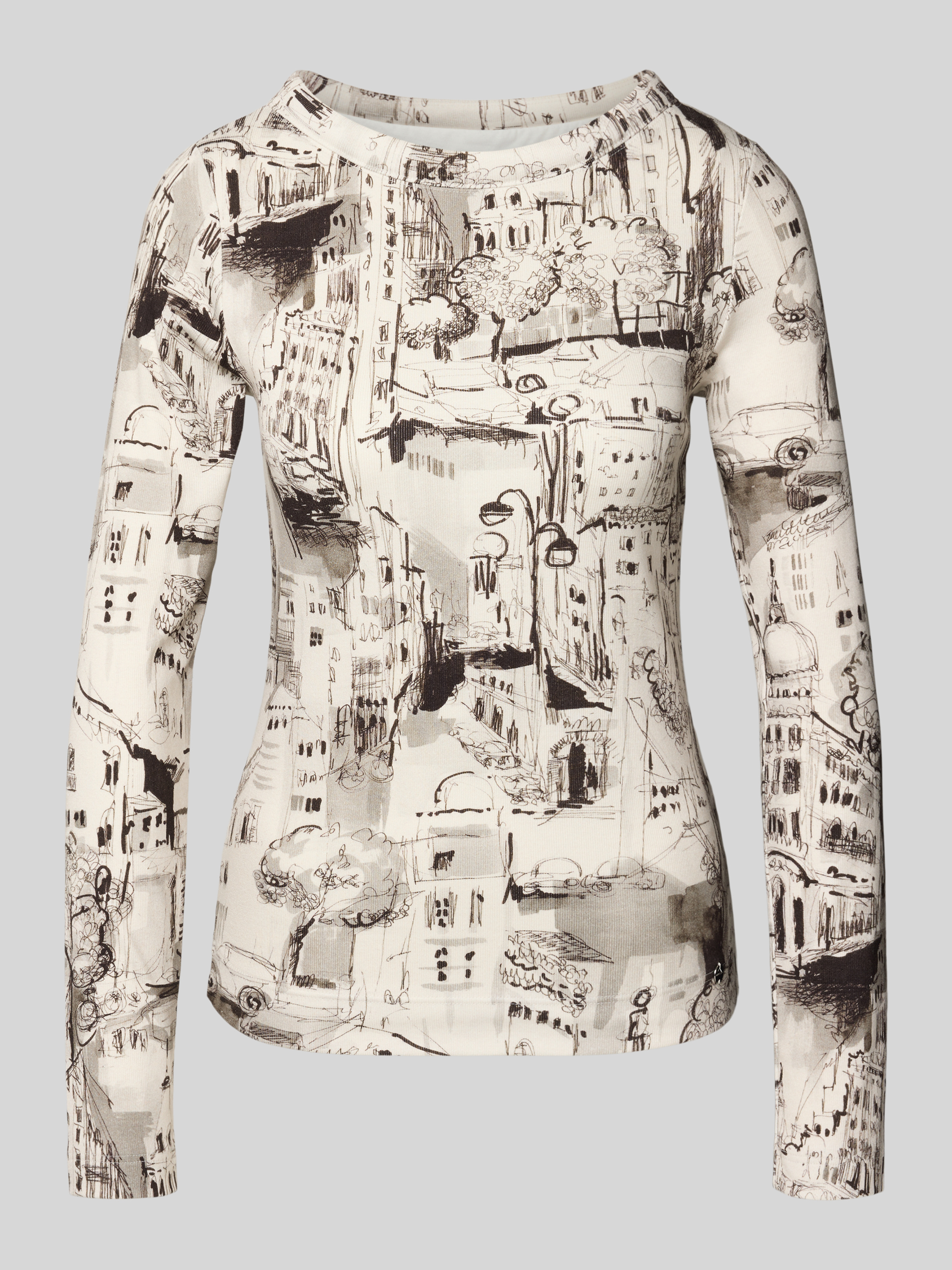 Das Damen Longsleeve von Marc Cain kombiniert einen körpernahen Schnitt mit einem lebendigen Allover-Motiv-Print und bringt Abwechslung in die Garderobe. Durch den elastischen Baumwoll-Mix schmiegt sich das Oberteil angenehm an. Ein weiter Stehkragen unterstreicht die moderne Optik und sorgt für ein angenehmes Tragegefühl.