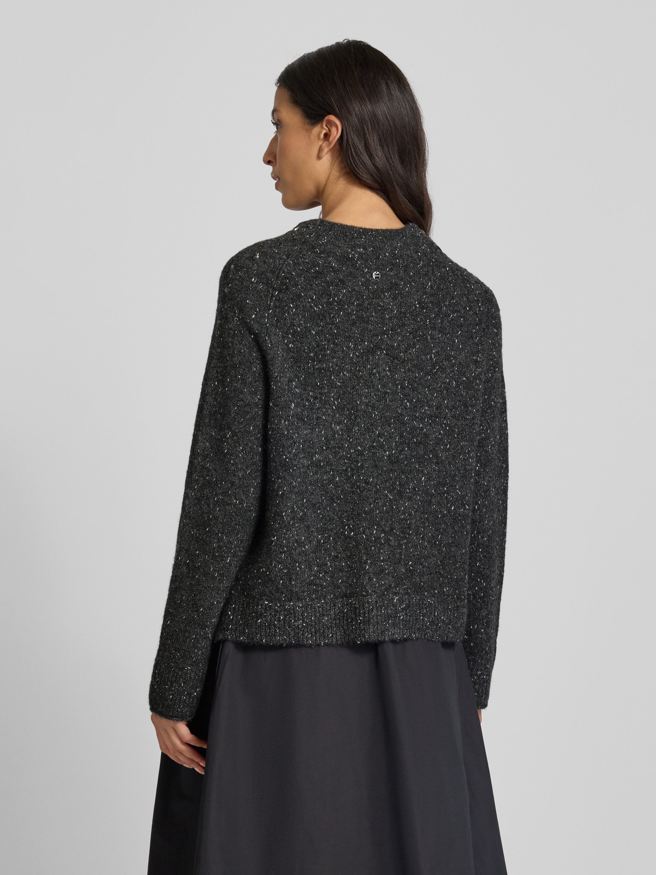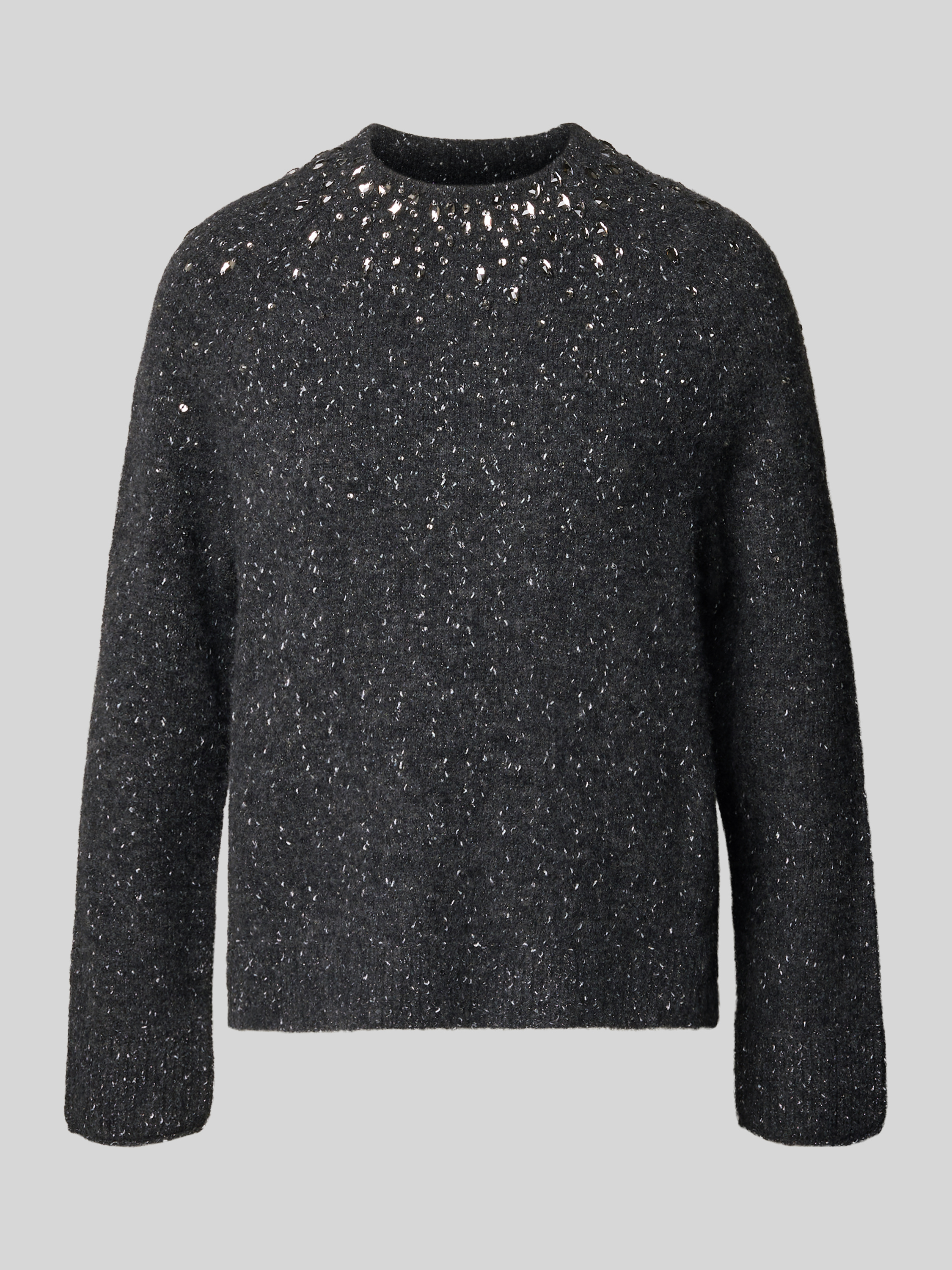 Marc CainStrickpullover mit Ziersteinbesatz in dunkelgrau