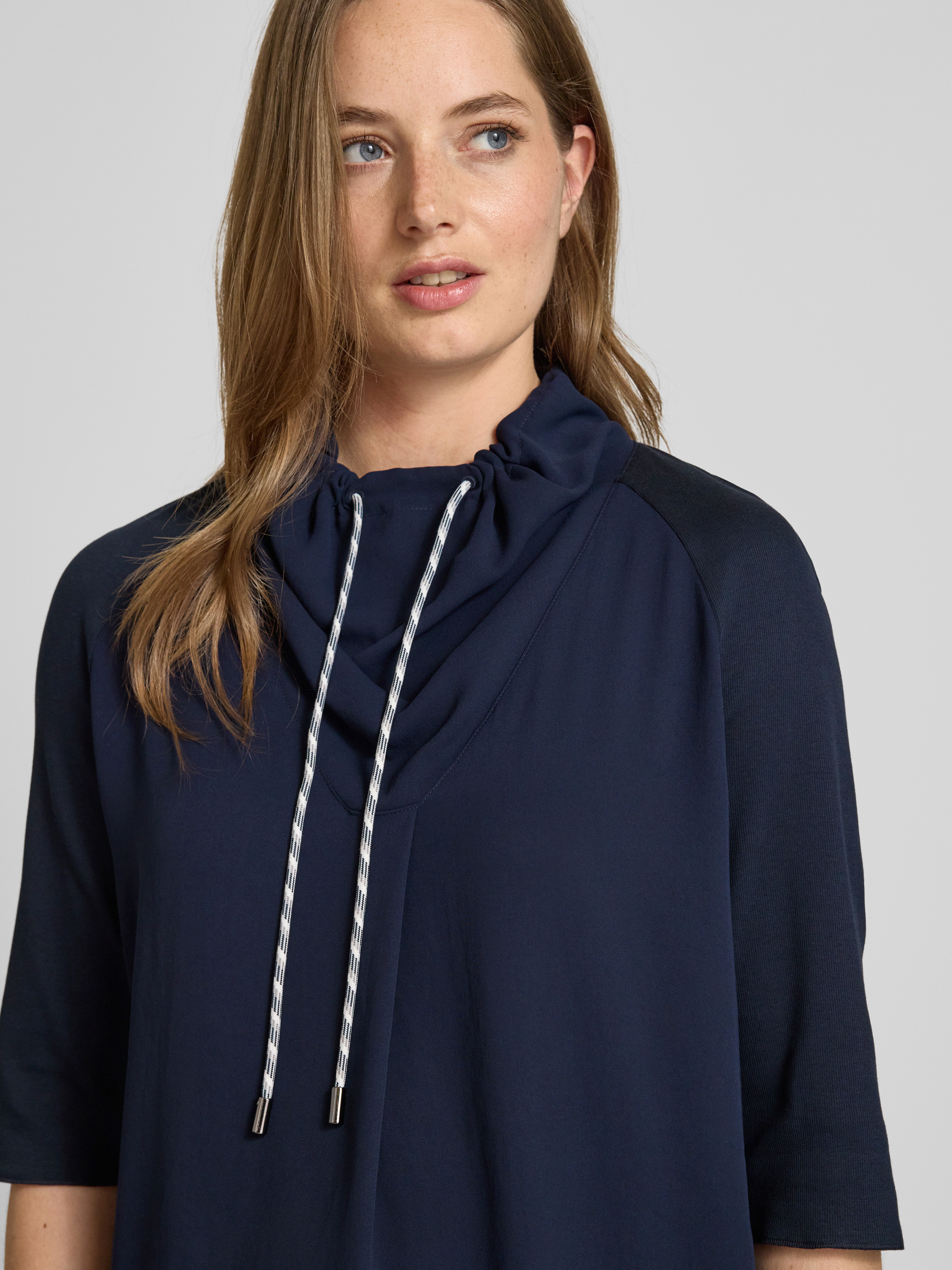 Marc CainT-Shirt aus Baumwoll-Mix mit Tunnelzug in marine