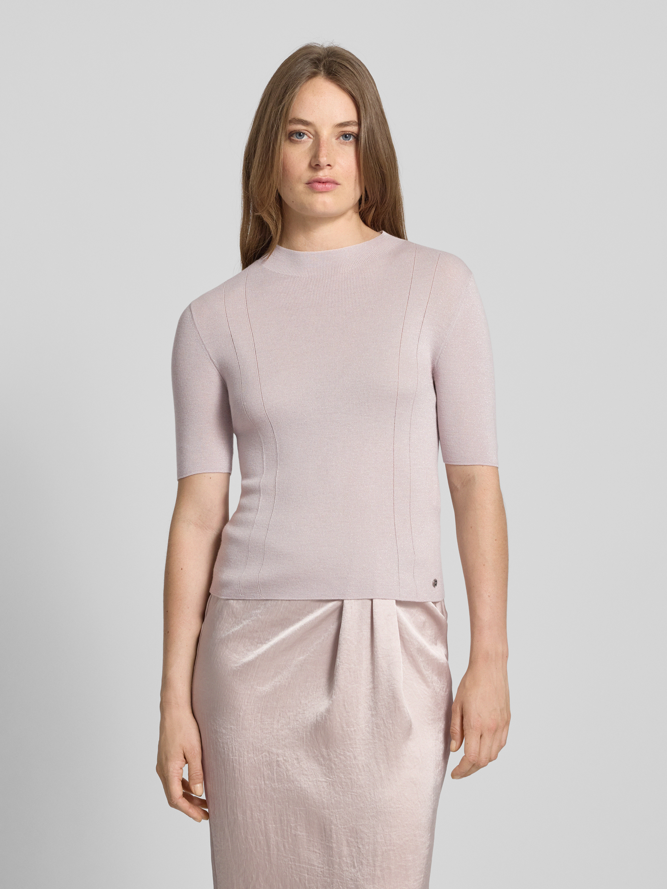 Marc CainT-Shirt aus Lanawoll-Mix mit Logo-Applikation in kitt
