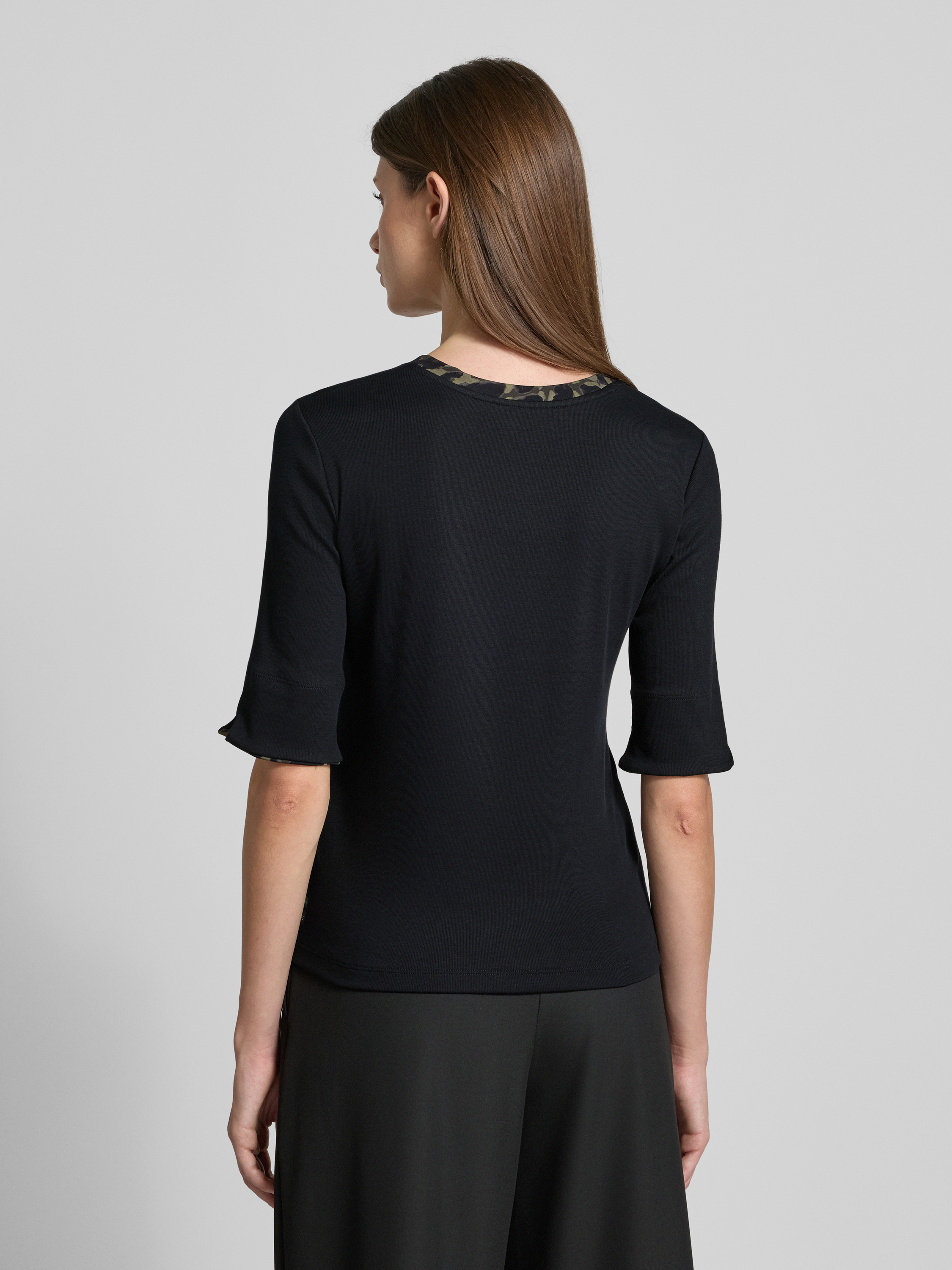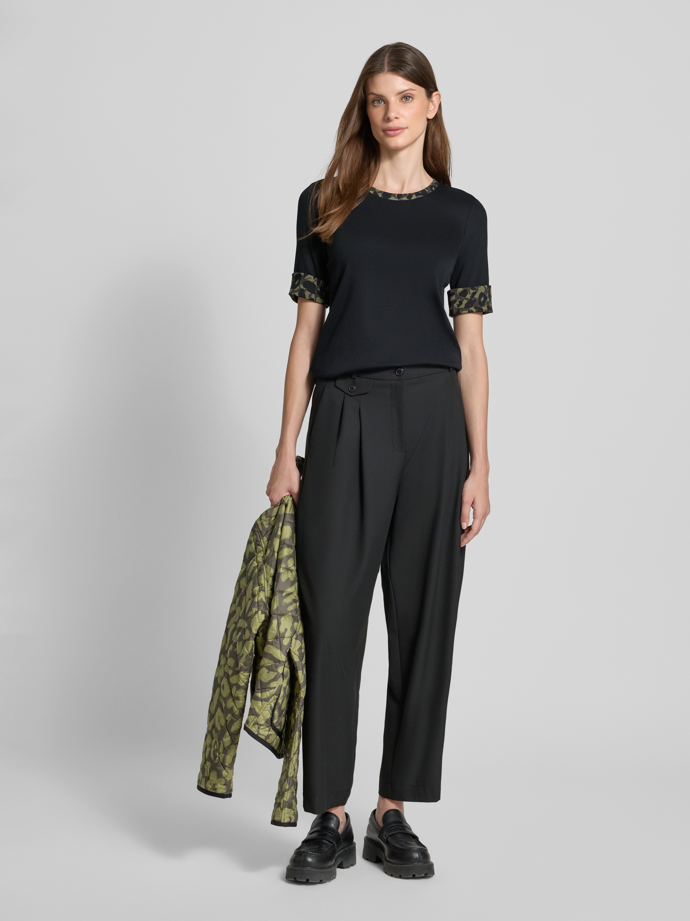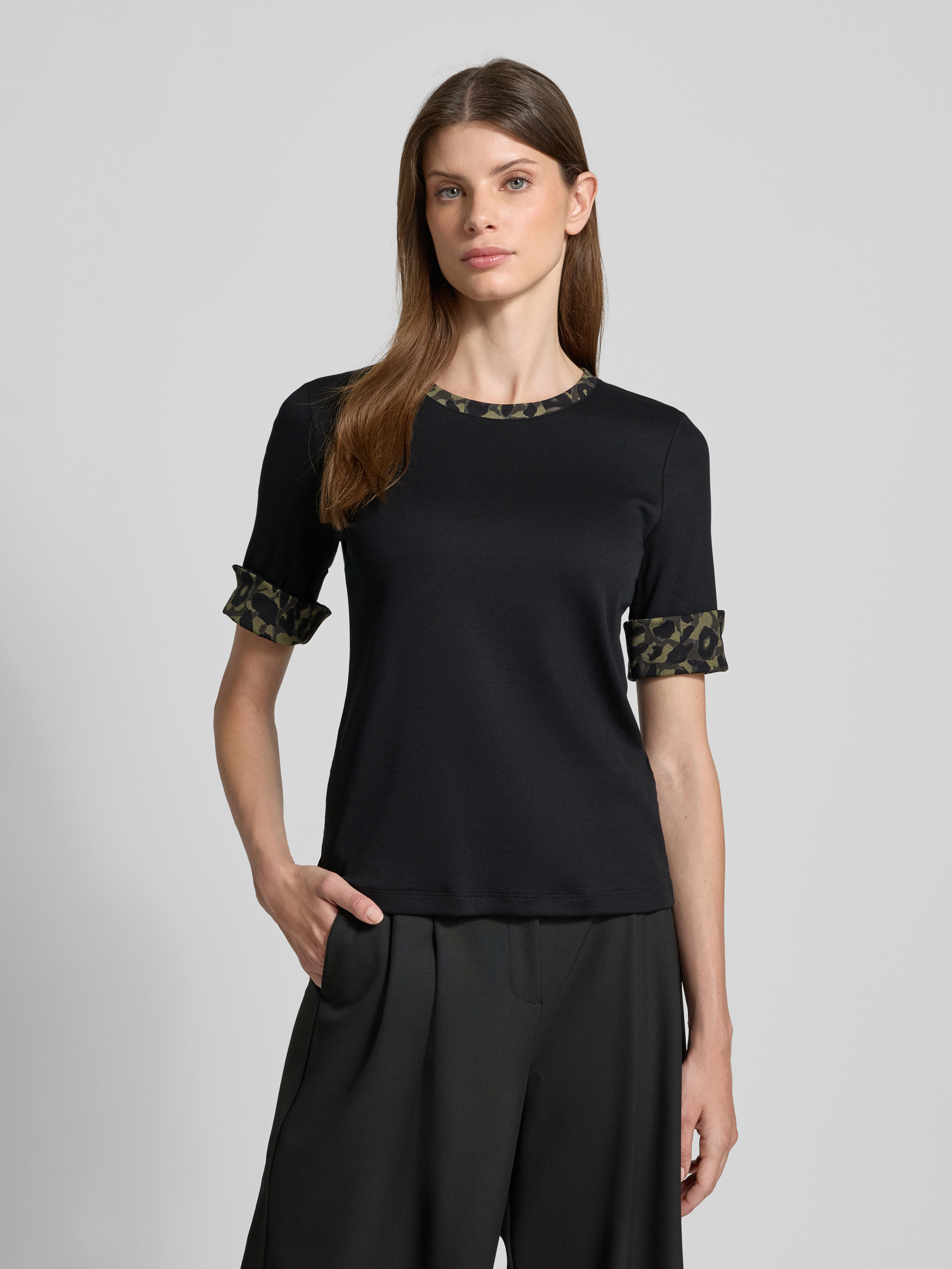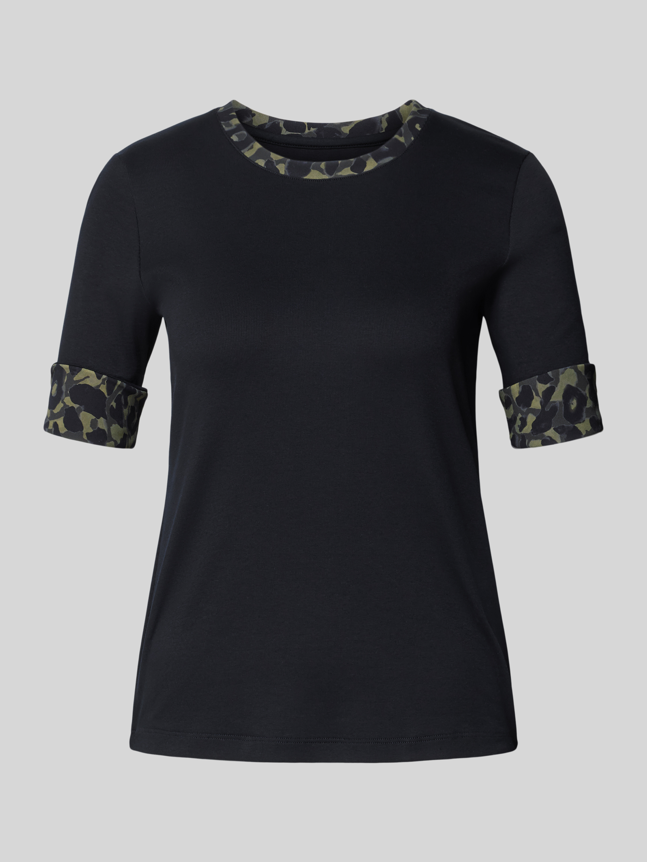 Das Damen T-Shirt von Marc Cain kombiniert einen angenehmen Material-Mix mit einem Hauch von Stretch, was eine bequeme, körpernahe Passform ermöglicht. Der klassische Rundhalsausschnitt und die stilvollen Ärmelumschläge verleihen dem 1/2-Arm-Shirt eine dezente Eleganz. Ideal für vielseitige Kombinationen im Alltag.