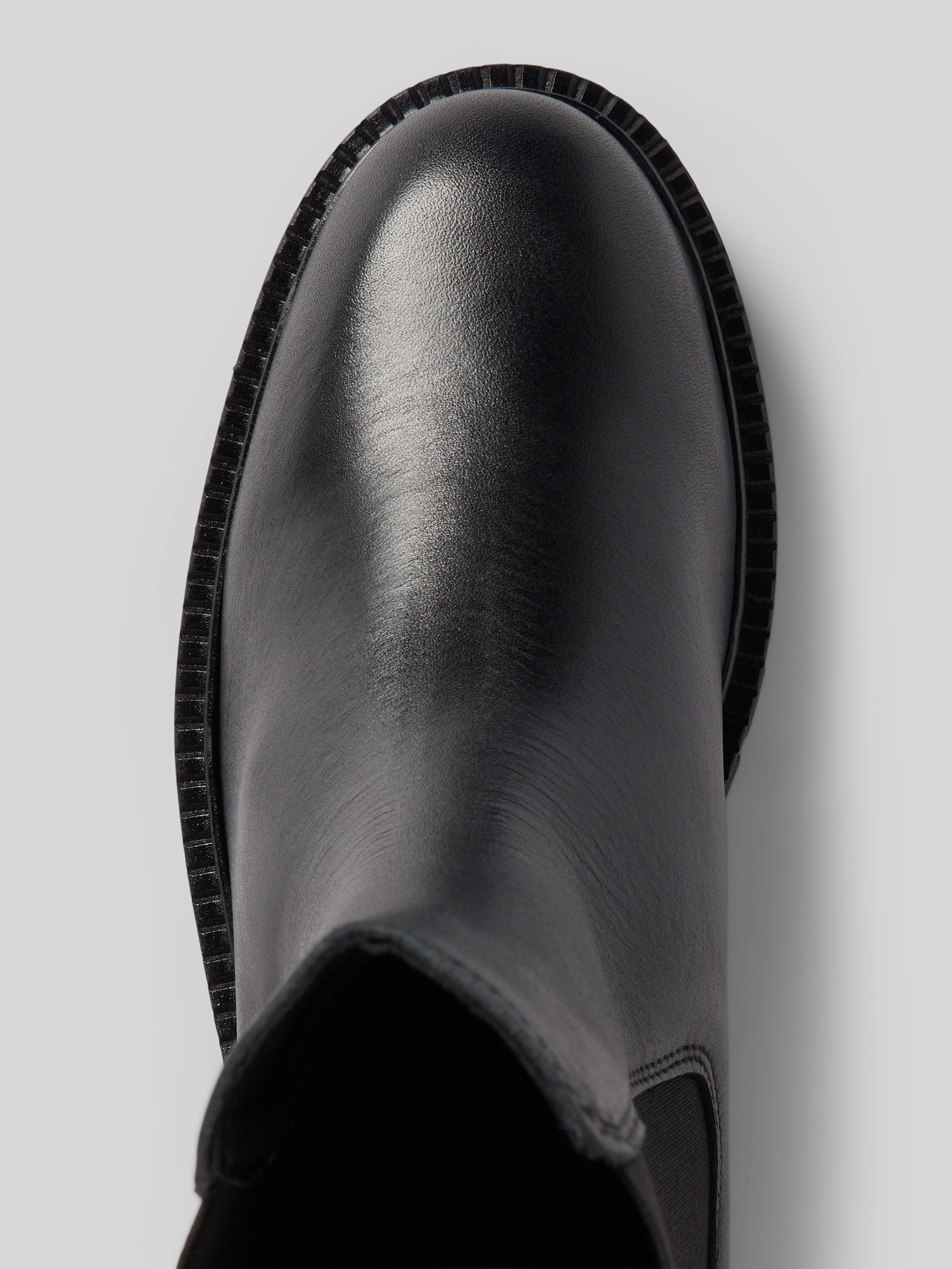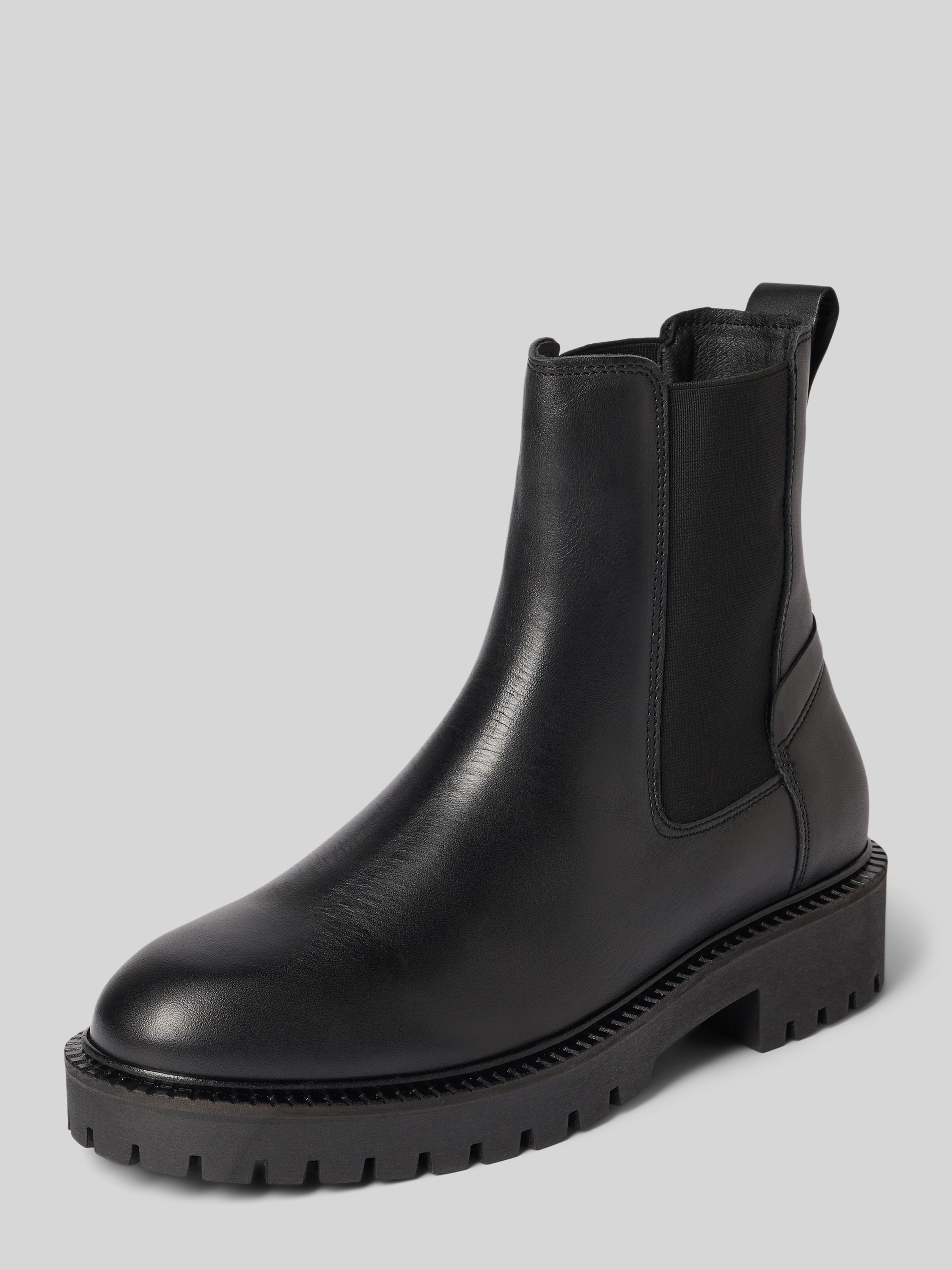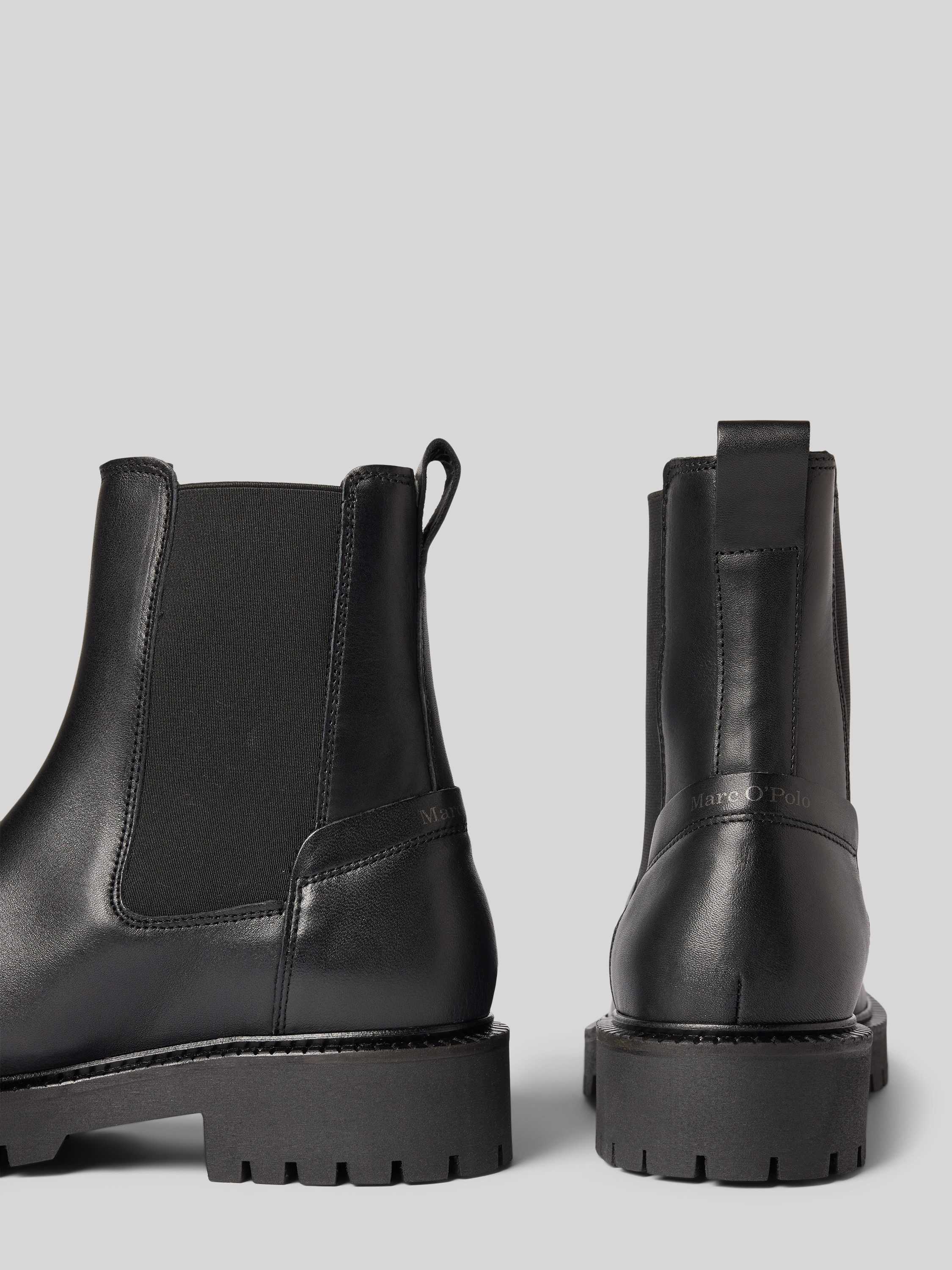 Die Chelsea Boots von Marc O'Polo präsentieren sich in unifarbener Optik und bieten durch echtes Leder eine angenehme Haptik. Mit abgerundeter Schuhspitze und Blockabsatz eignen sie sich sowohl für den Alltag als auch für besondere Anlässe. Die profilierte Sohle sorgt für sicheren Stand.