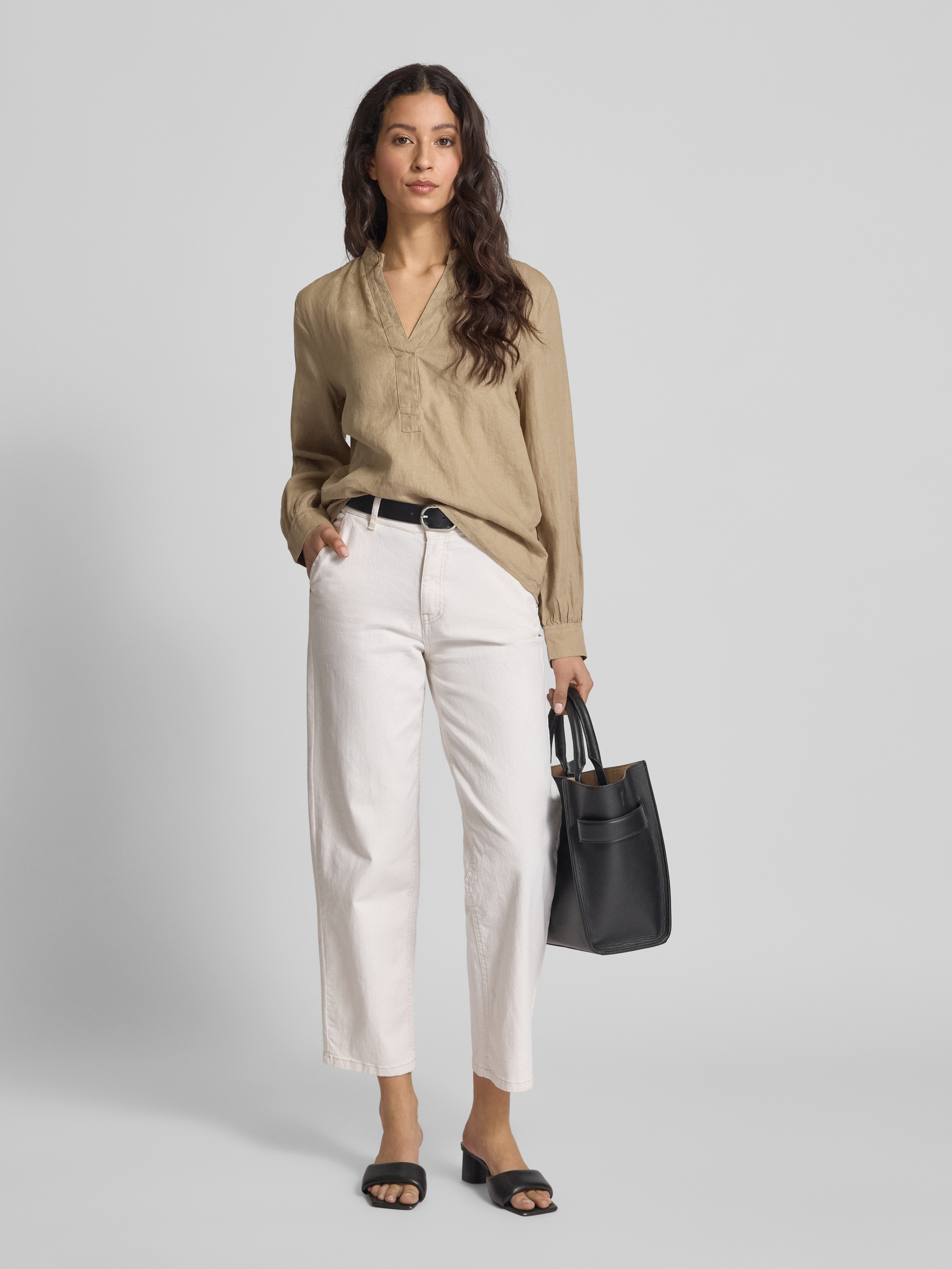 Marc O'PoloComfort Fit Langarmblusen aus reinem Leinen in beige