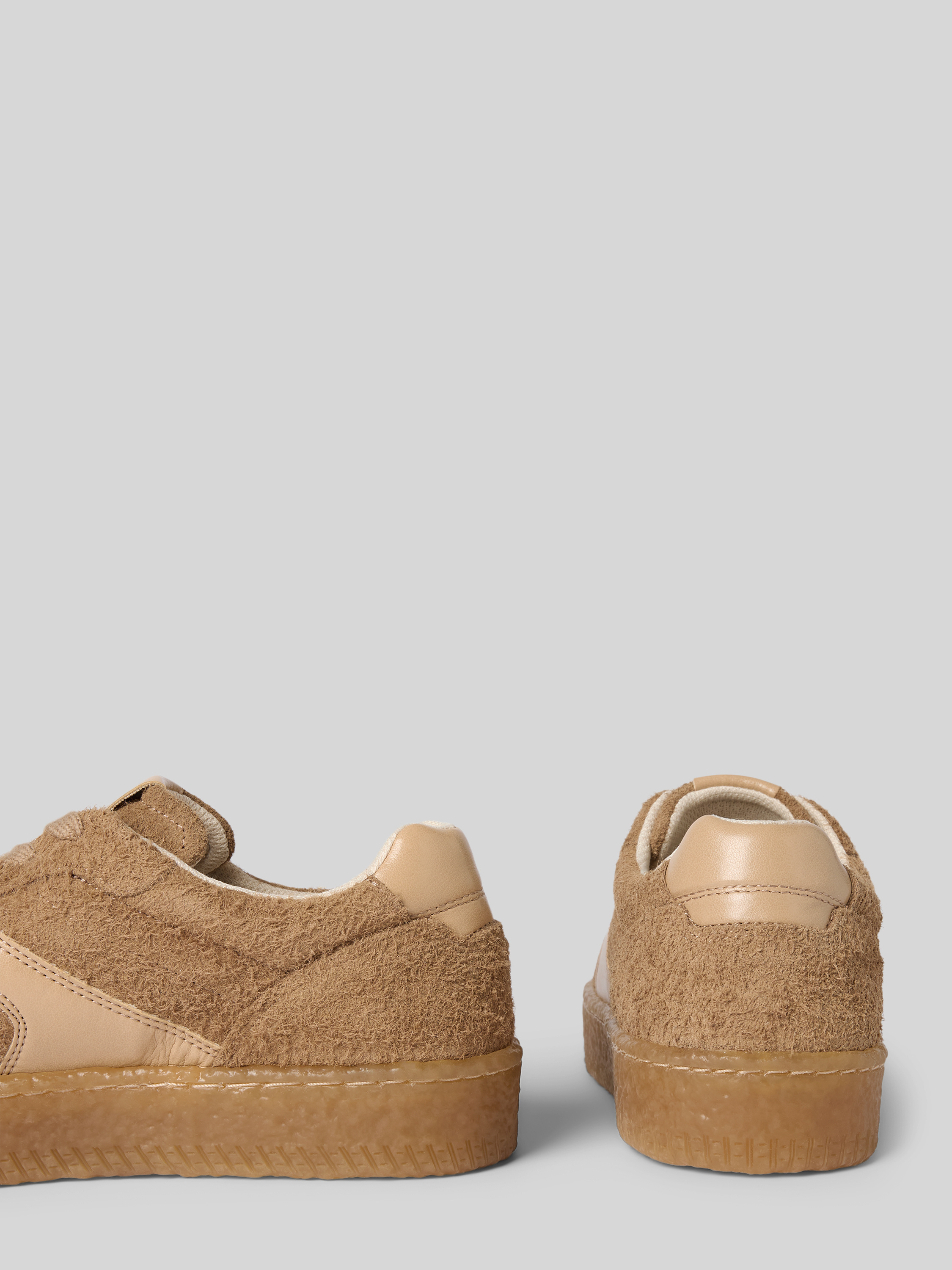 Die Damen Low Top Sneaker von Marc O'Polo präsentieren sich mit einem Obermaterial aus softem Rindsleder in Wildleder-Optik, das angenehm am Fuß liegt. Durch die abgerundete Schuhspitze und die flache Form entsteht ein entspannter Tragekomfort, der den Alltag angenehm begleitet. Eine strukturierte, dämpfende Sohle sorgt für ein angenehmes Laufgefühl, während dezente Label-Details für eine moderne Note sorgen.