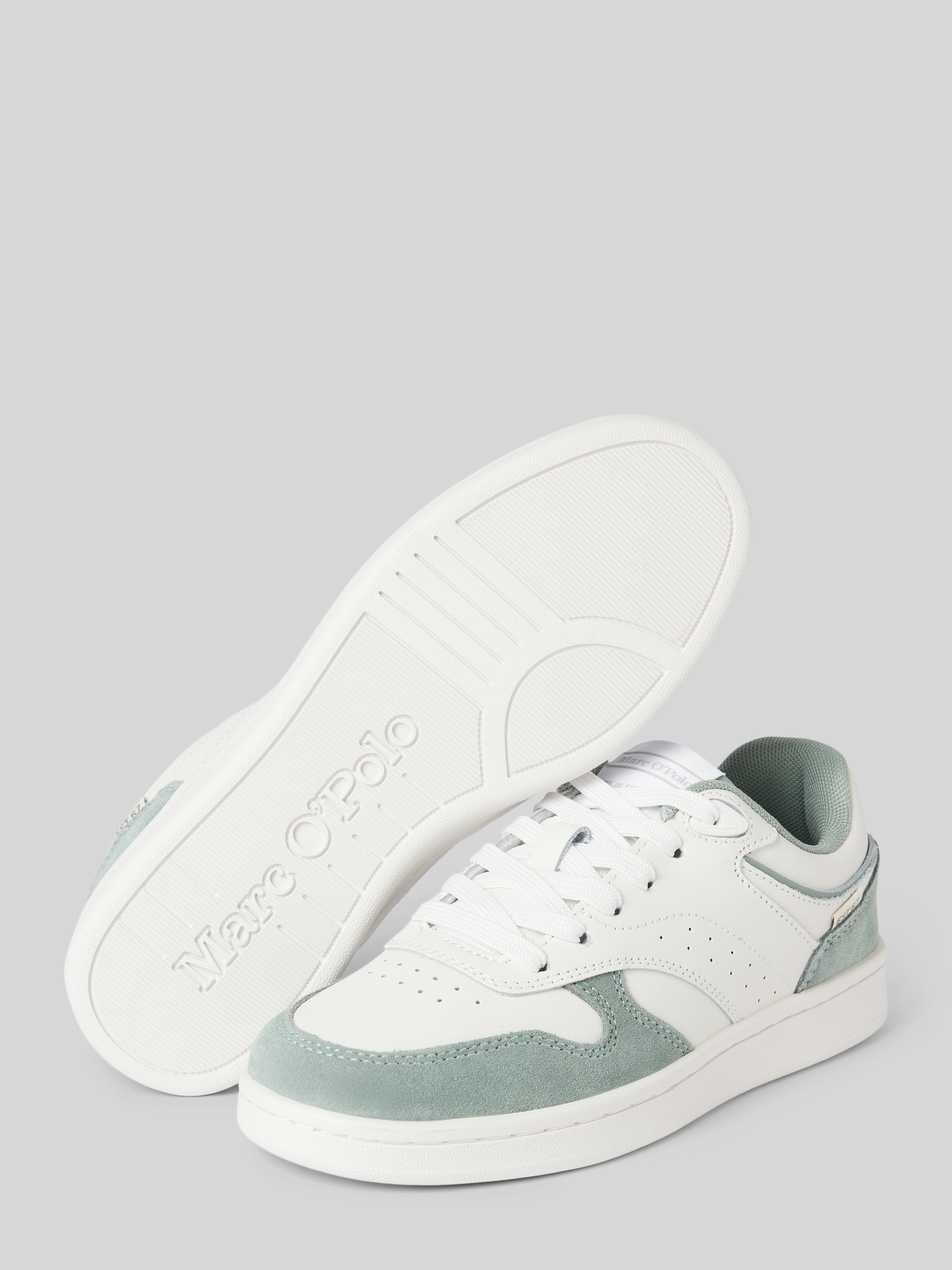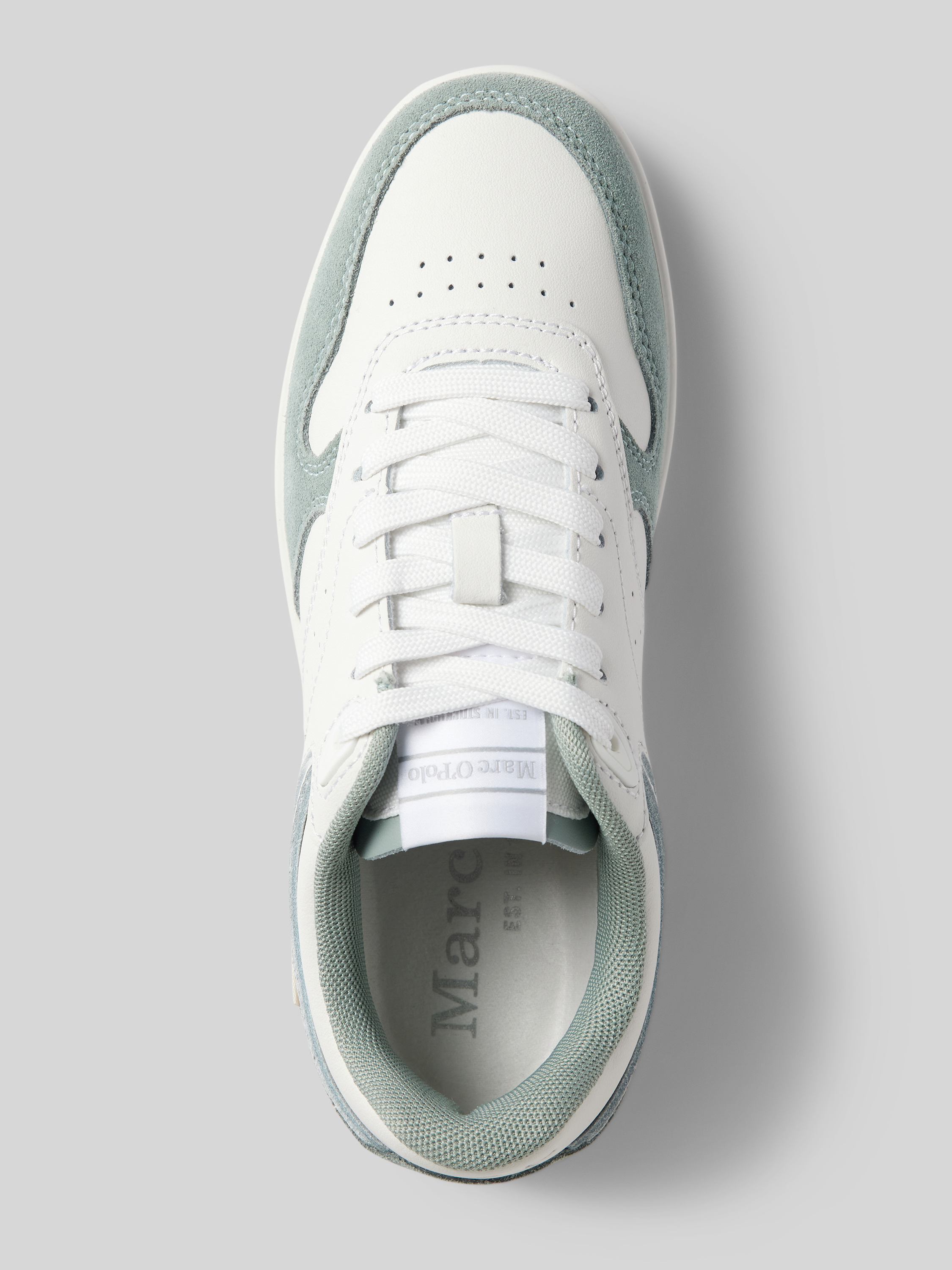 Der Damen Low Top Sneaker von Marc O'Polo vereint eine raffinierte Two-Tone-Optik mit einer strukturierten Sohle, die ein angenehmes Tragegefühl unterstützt. Der dezente Wildleder-Besatz ergänzt das hochwertige Leder, während der flache Absatz und die abgerundete Schuhspitze für Alltagstauglichkeit sorgen.