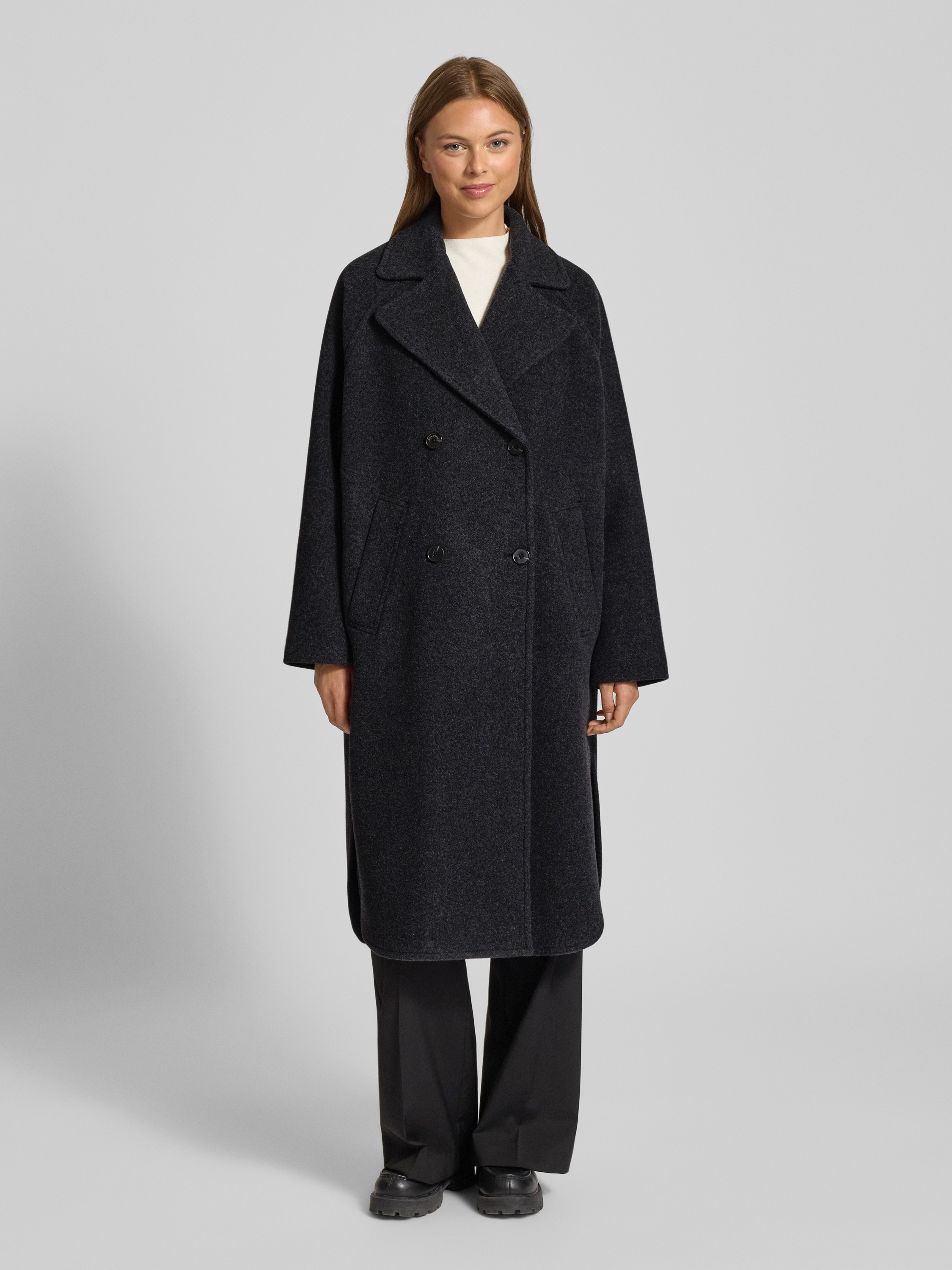 Der Damenmantel von Marc O’Polo zeigt sich im Oversized-Schnitt und verleiht durch die Melange-Optik einen modernen Charakter. Reine Wolle sorgt für ein angenehmes Tragegefühl, während Raglanärmel und Reverskragen den Look entspannt abrunden. Seitliche Eingrifftaschen schaffen zusätzlichen Komfort.