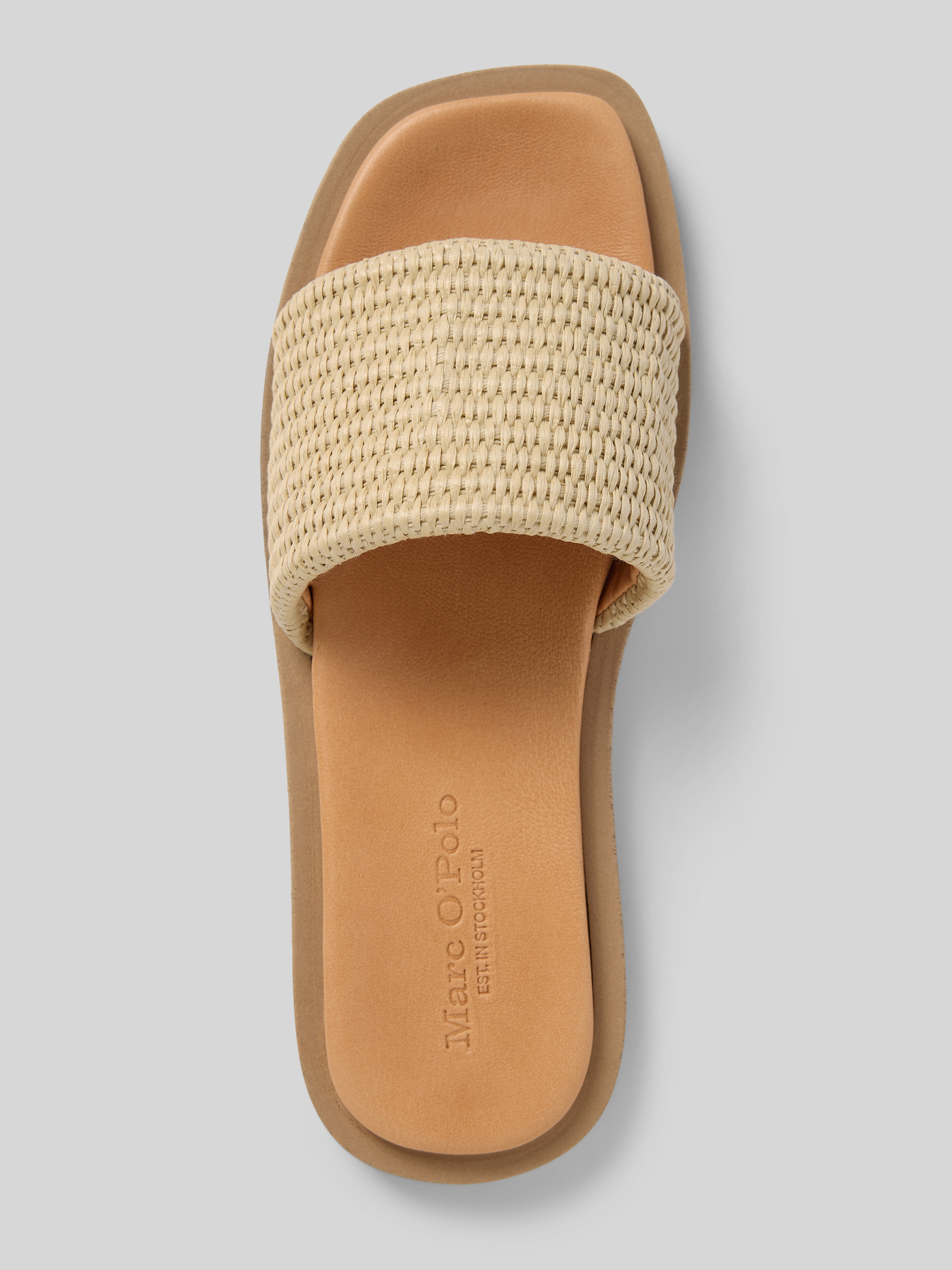 Die Damen Pantoletten von Marc O'Polo verbinden schlichte Eleganz mit Komfort. Dank der flachen Absatzform und der strukturierten Sohle bietet dieses Modell einen angenehmen Halt, während das hochwertige Ziegenleder für ein luxuriöses Tragegefühl sorgt. Die unifarbene Bast-Optik ergänzt das sommerliche Design.