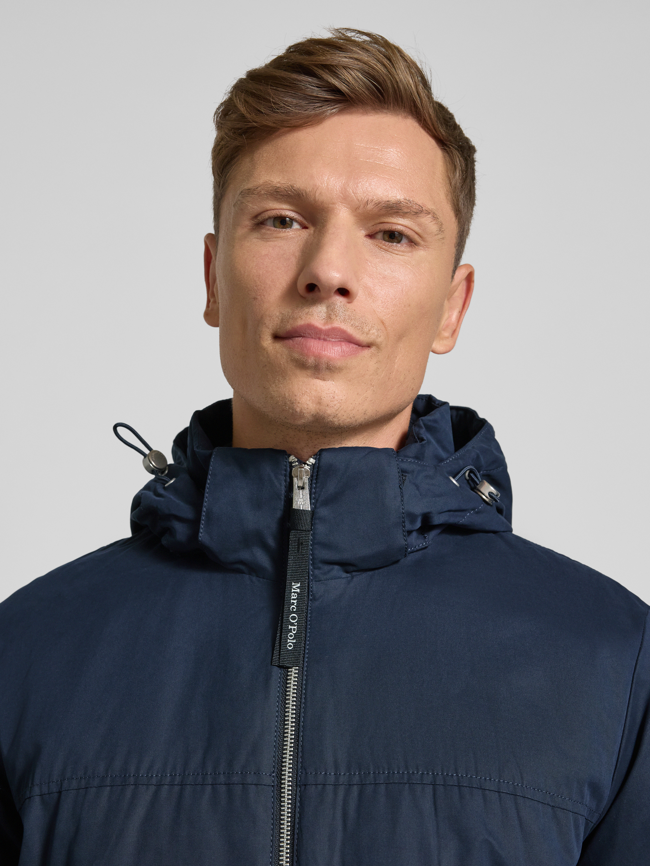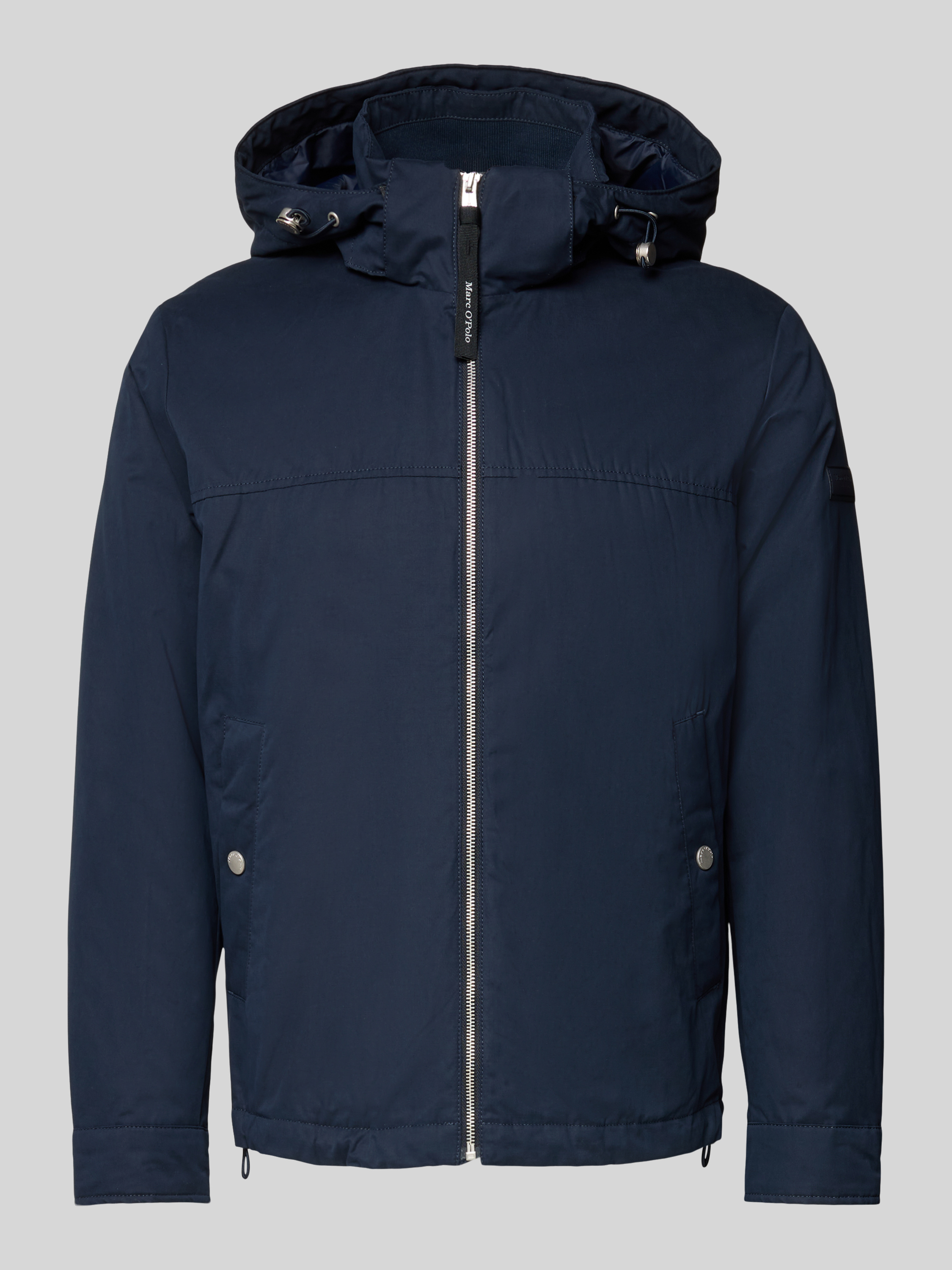 Die Herrenjacke von Marc O’Polo zeigt sich in klarer, unifarbener Optik und regulärer Passform. Dank Stehkragen und abnehmbarer Kapuze mit Tunnelzug eignet sie sich für wechselhaftes Wetter. Praktische Leistentaschen und eine dezente Label-Applikation runden das Design ab.