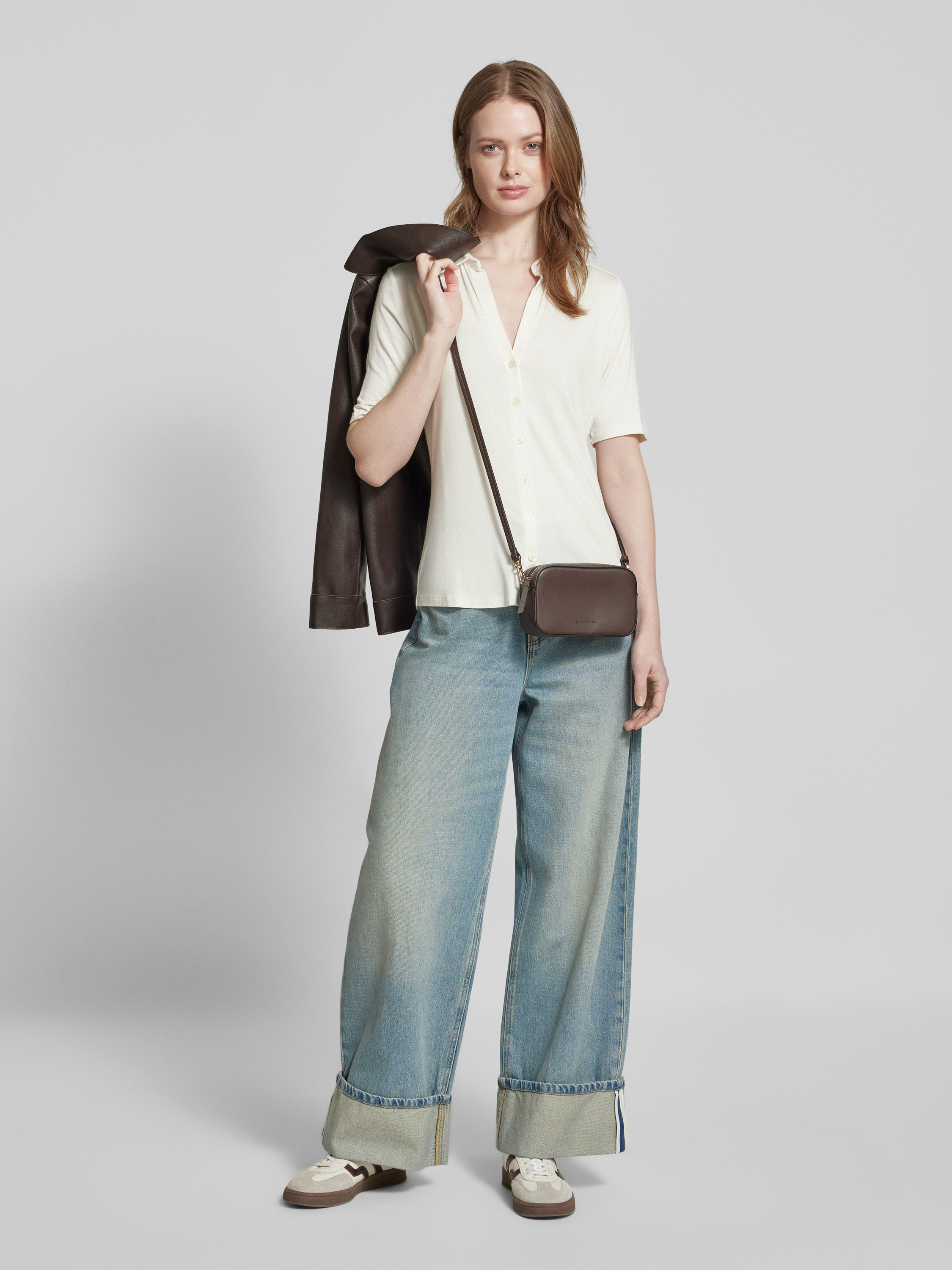 Die Marc O'Polo Jersey-Bluse in Regular Fit vereint einen klassischen Hemdblusenkragen mit einem dezenten V-Ausschnitt, was sie vielseitig für die Freizeitgestaltung macht. Der Viskose-Mix sorgt für ein angenehmes Tragegefühl und bietet eine optimale Balance zwischen Komfort und Stil. Die unifarbene Optik ermöglicht müheloses Kombinieren mit verschiedenen Outfits.