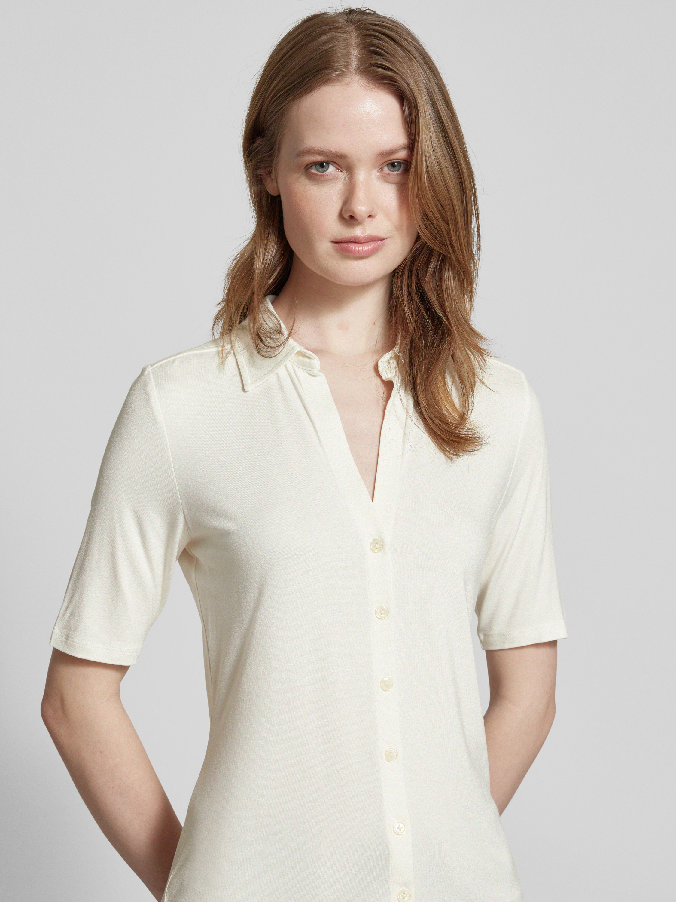 Marc O'PoloRegular Fit Jersey-Bluse mit kurzem Arm aus Viskose-Mix in weiss