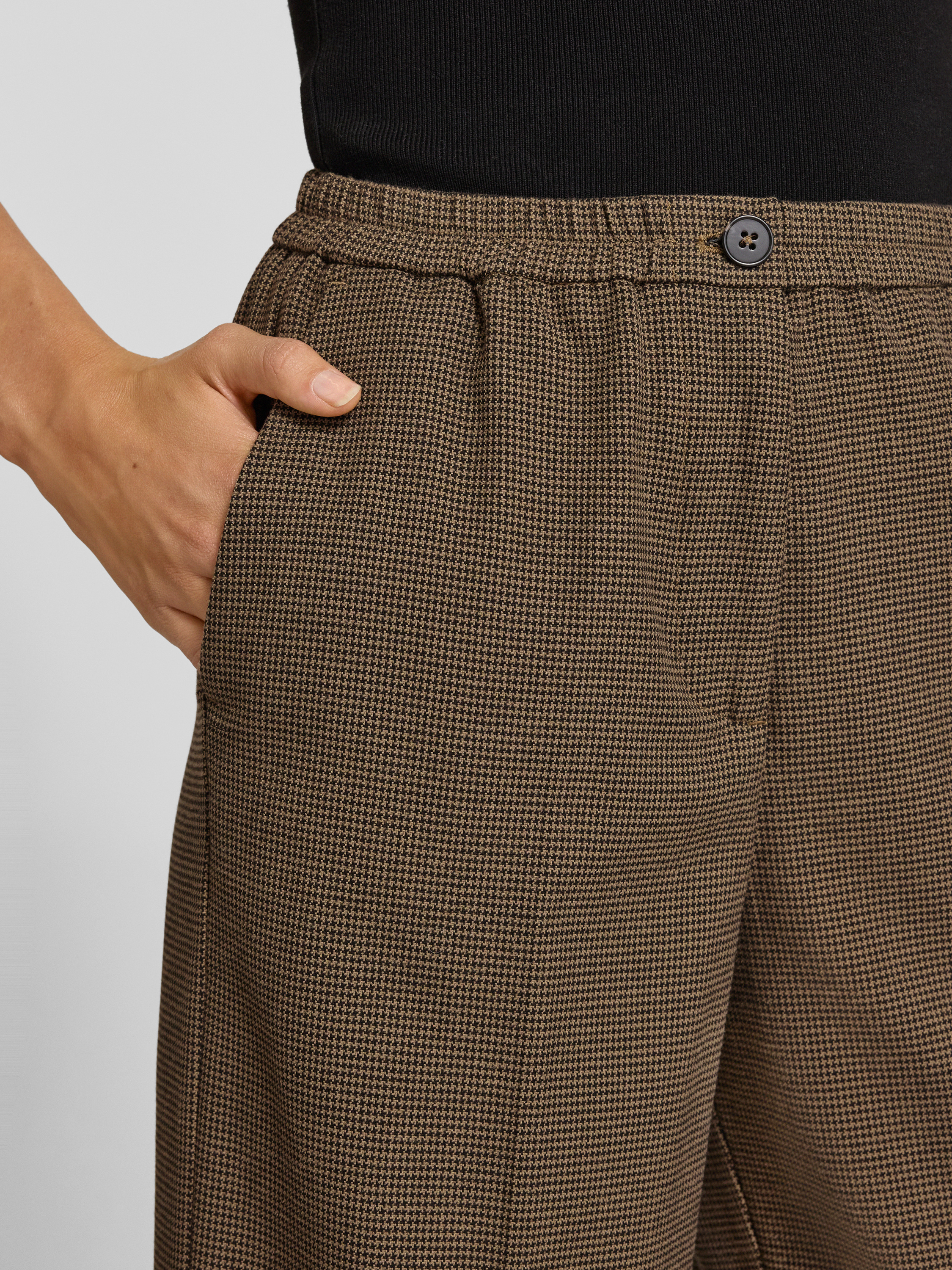 Die Damen Hose Regular Fit von Marc O'Polo zeigt sich in klassischem Hahnentritt-Muster und setzt auf eine entspannte Passform. Durch den Viskose-Anteil fühlt sich das Material angenehm leicht an, während seitliche Eingrifftaschen praktischen Stauraum im Alltag schaffen. Unifarben gestaltet, lässt sich das Modell vielseitig kombinieren.