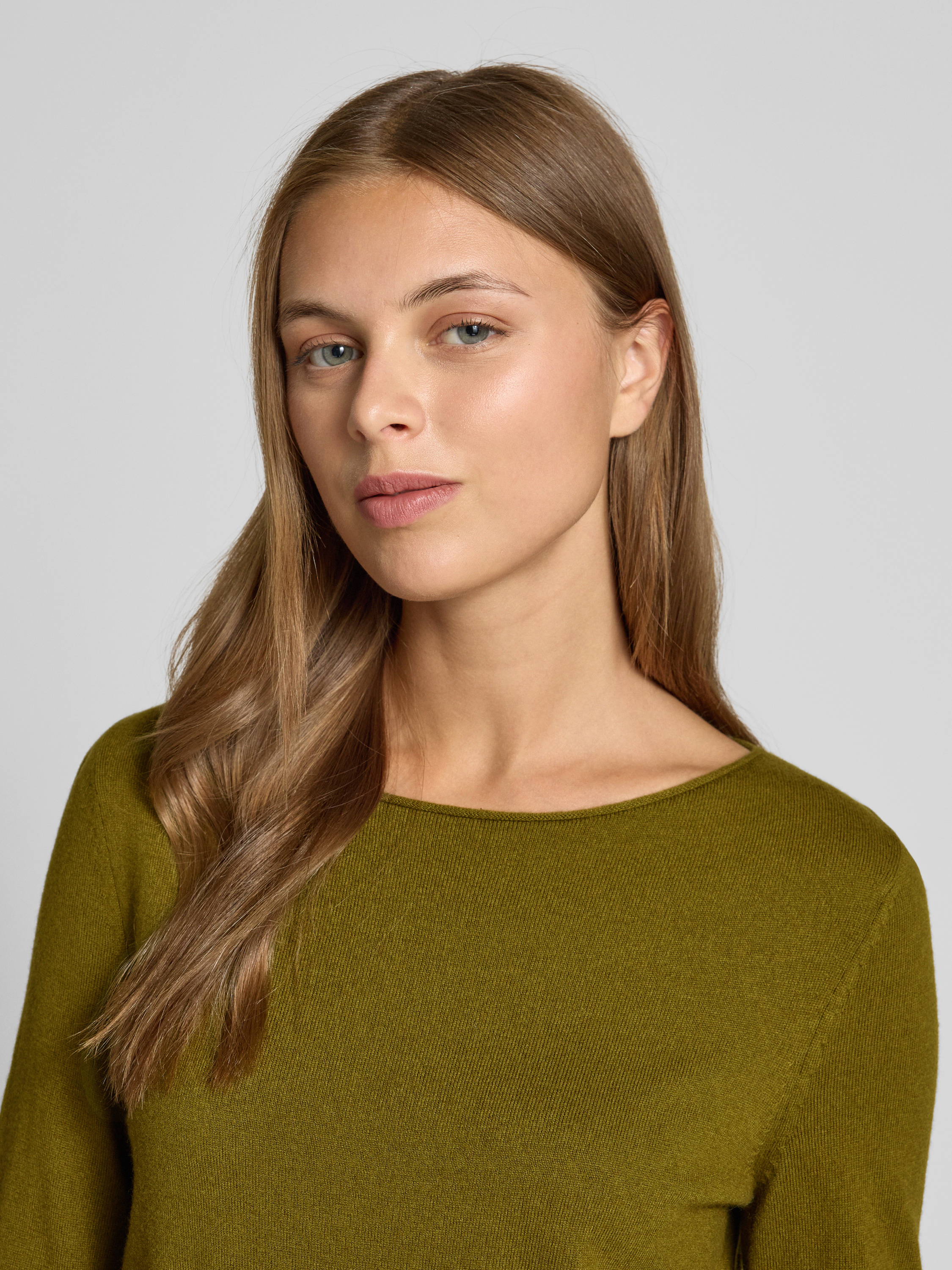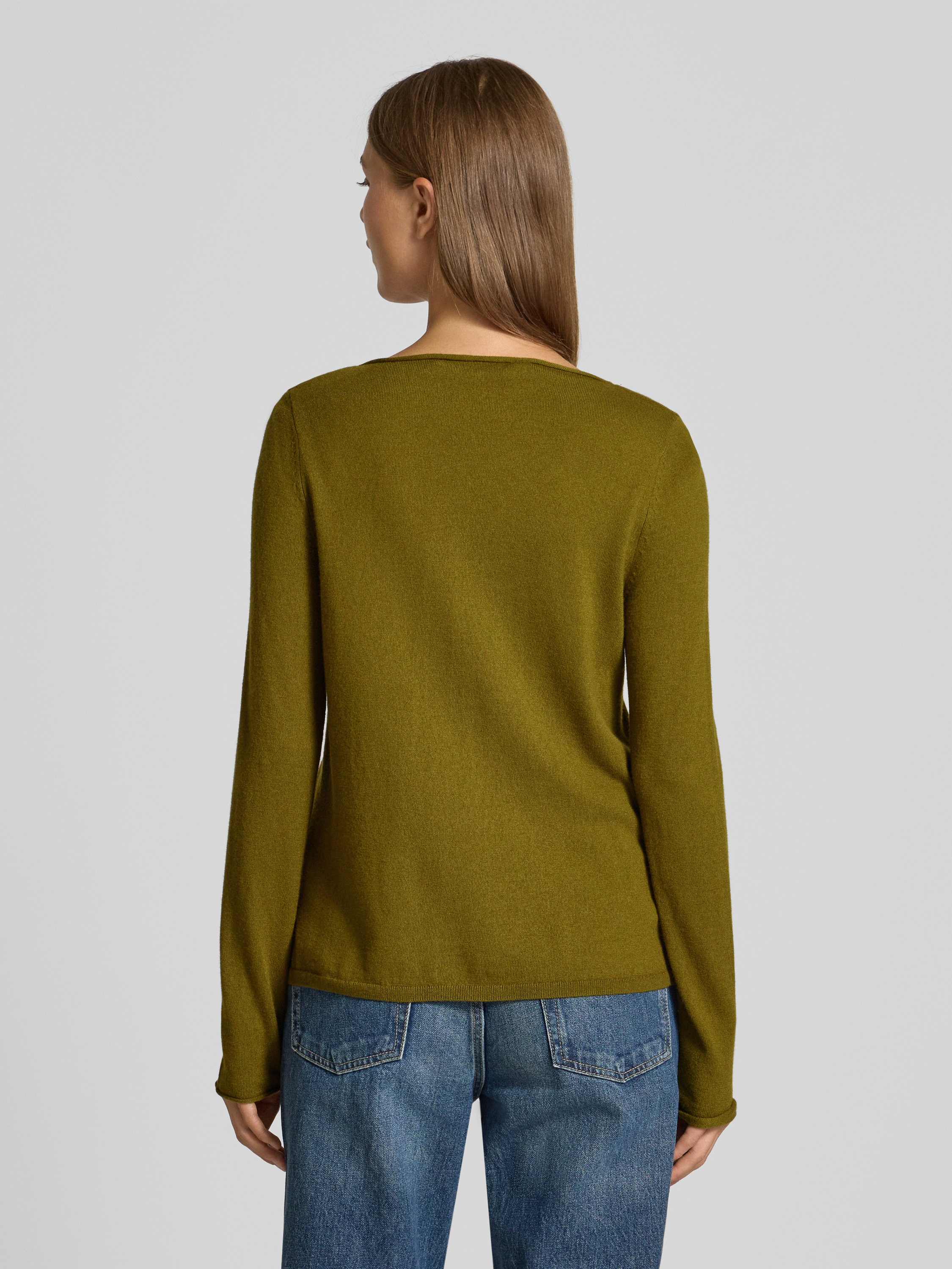 Der Damenpullover von Marc O'Polo präsentiert sich im Regular Fit und legt Wert auf eine angenehme Passform. Der feine Schurwoll-Mix sorgt für ein weiches Tragegefühl, während der Rundhalsausschnitt mit Rollsaum und die langen Ärmel den klassischen Charakter unterstreichen. Die unifarbene Optik lässt sich vielseitig kombinieren.