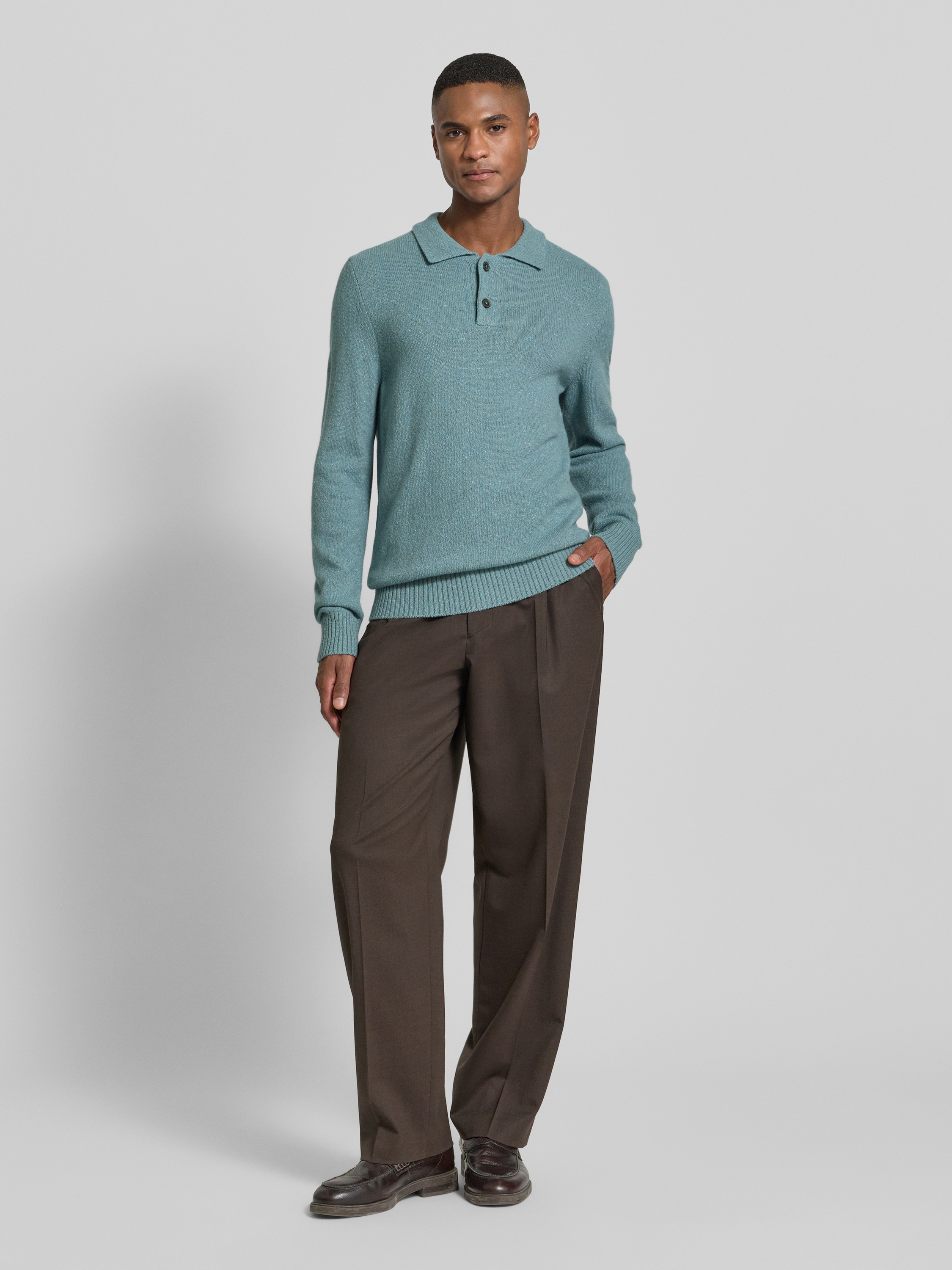 Der Herrenpullover von Marc O'Polo zeigt sich im melierten Look und mit klassischem Polokragen. Dank regulärer Passform sitzt der Strick angenehm am Körper und eignet sich für vielseitige Kombinationen. Der Woll-Mix sorgt für ein komfortables Tragegefühl, das den Alltag angenehm begleitet.