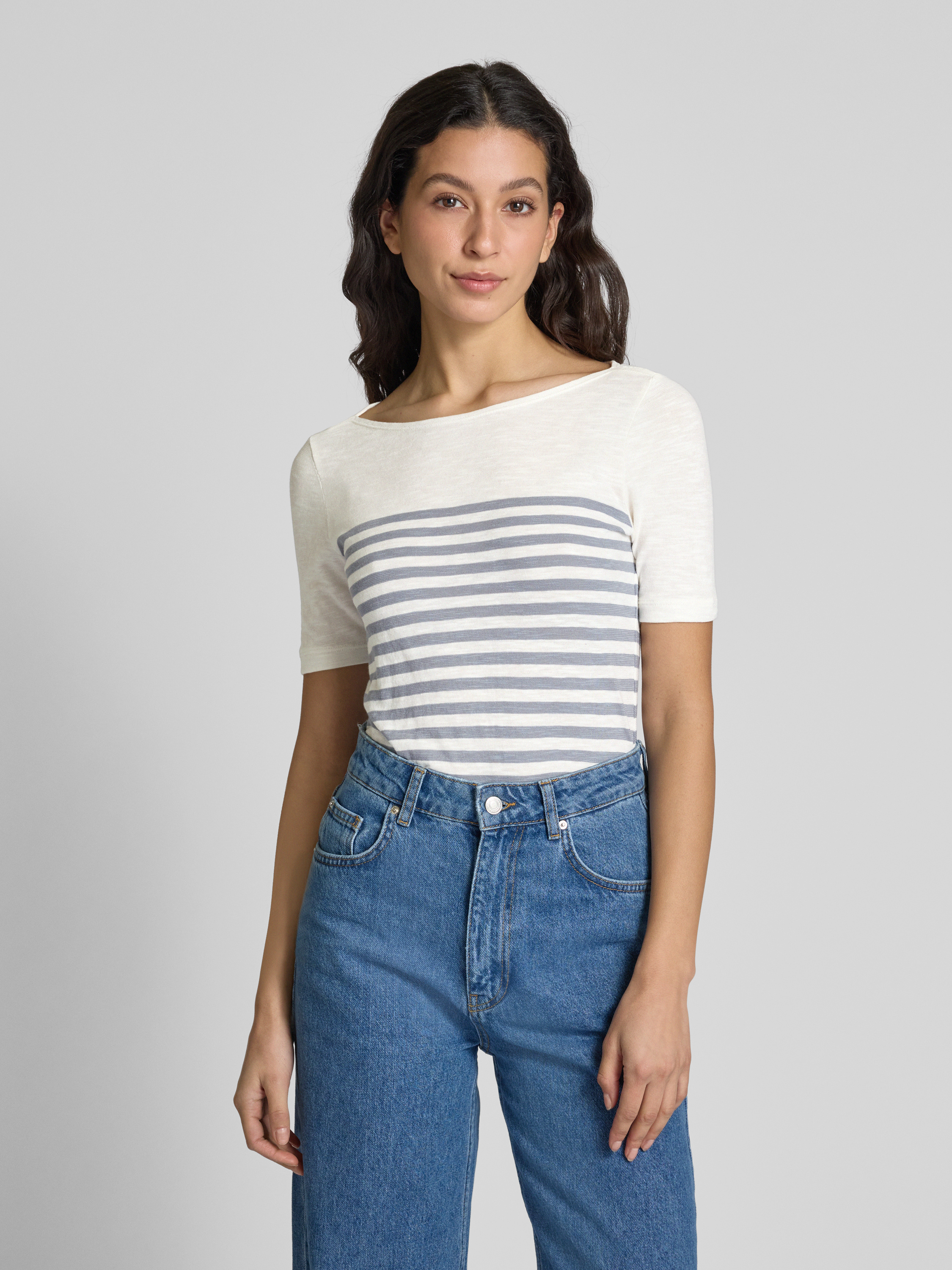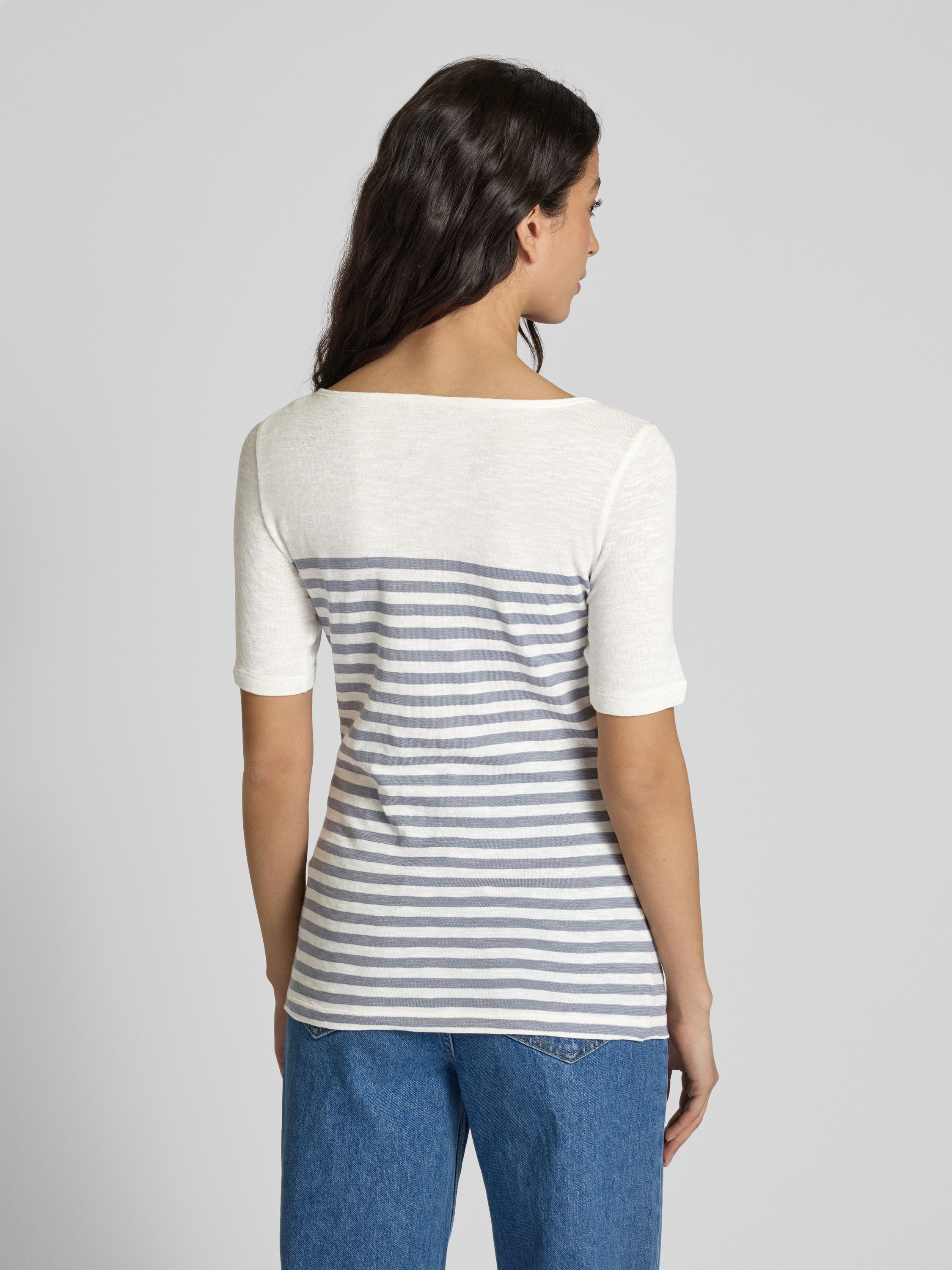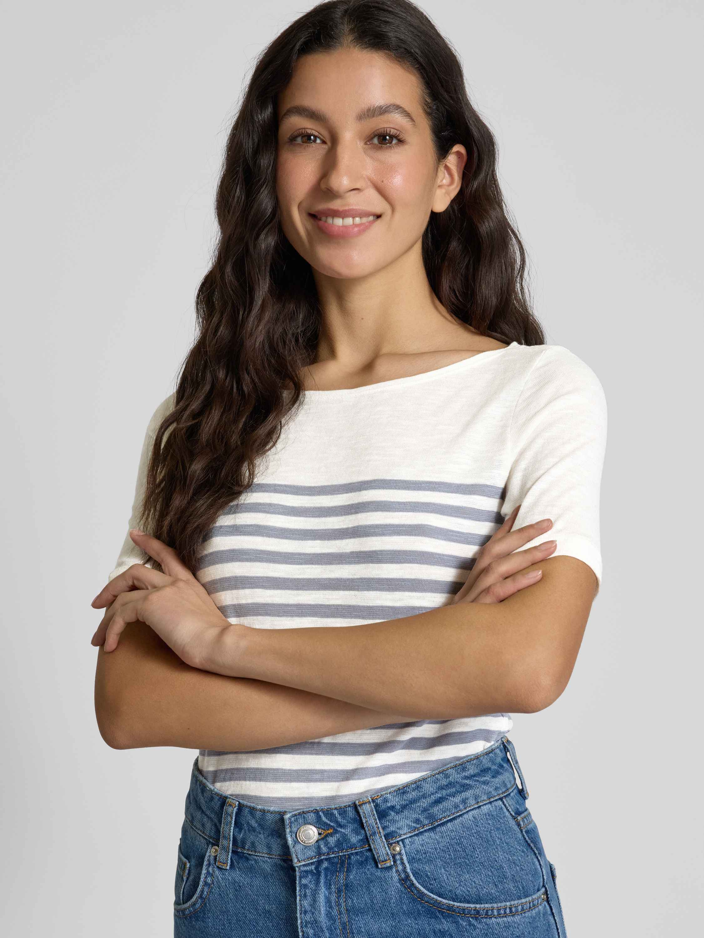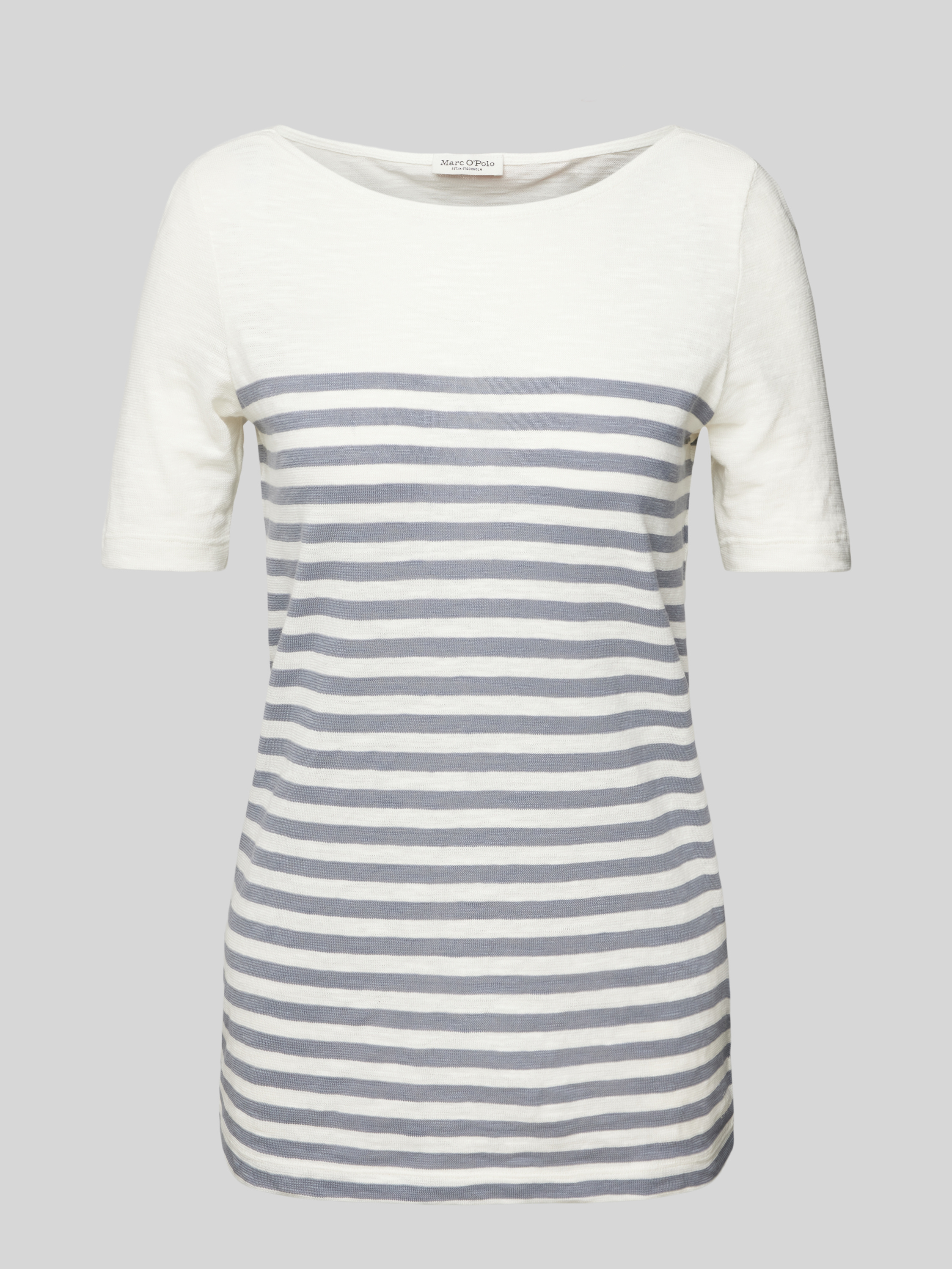 Das Marc O'Polo Regular Fit T-Shirt aus reiner Baumwolle überzeugt mit seiner Two-Tone-Optik und dem gestreiften Muster. Der U-Boot-Ausschnitt und die kurzen Ärmel bieten eine angenehme Passform. Der Slub Jersey sorgt für ein komfortables Tragegefühl, das im Alltag überzeugt.