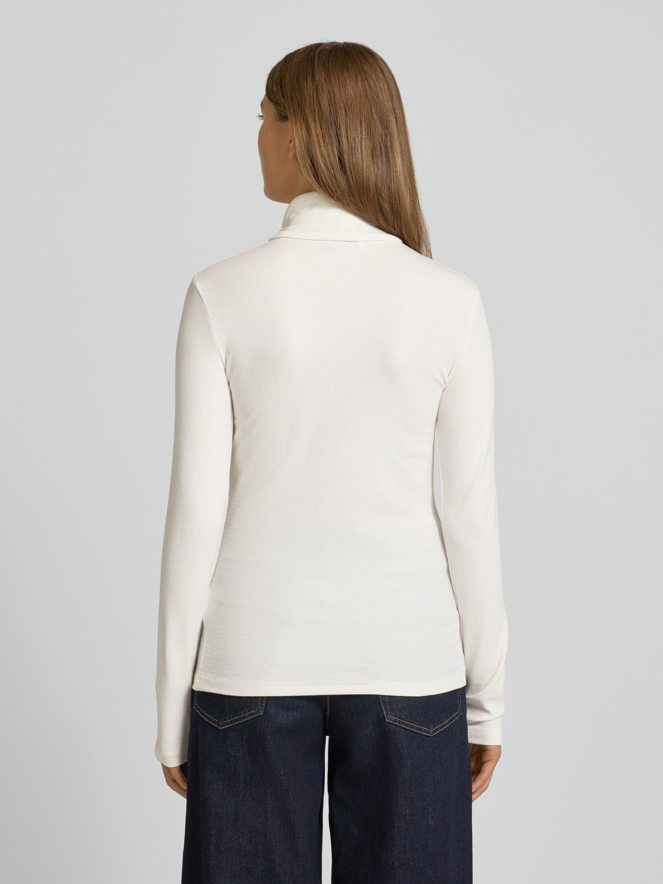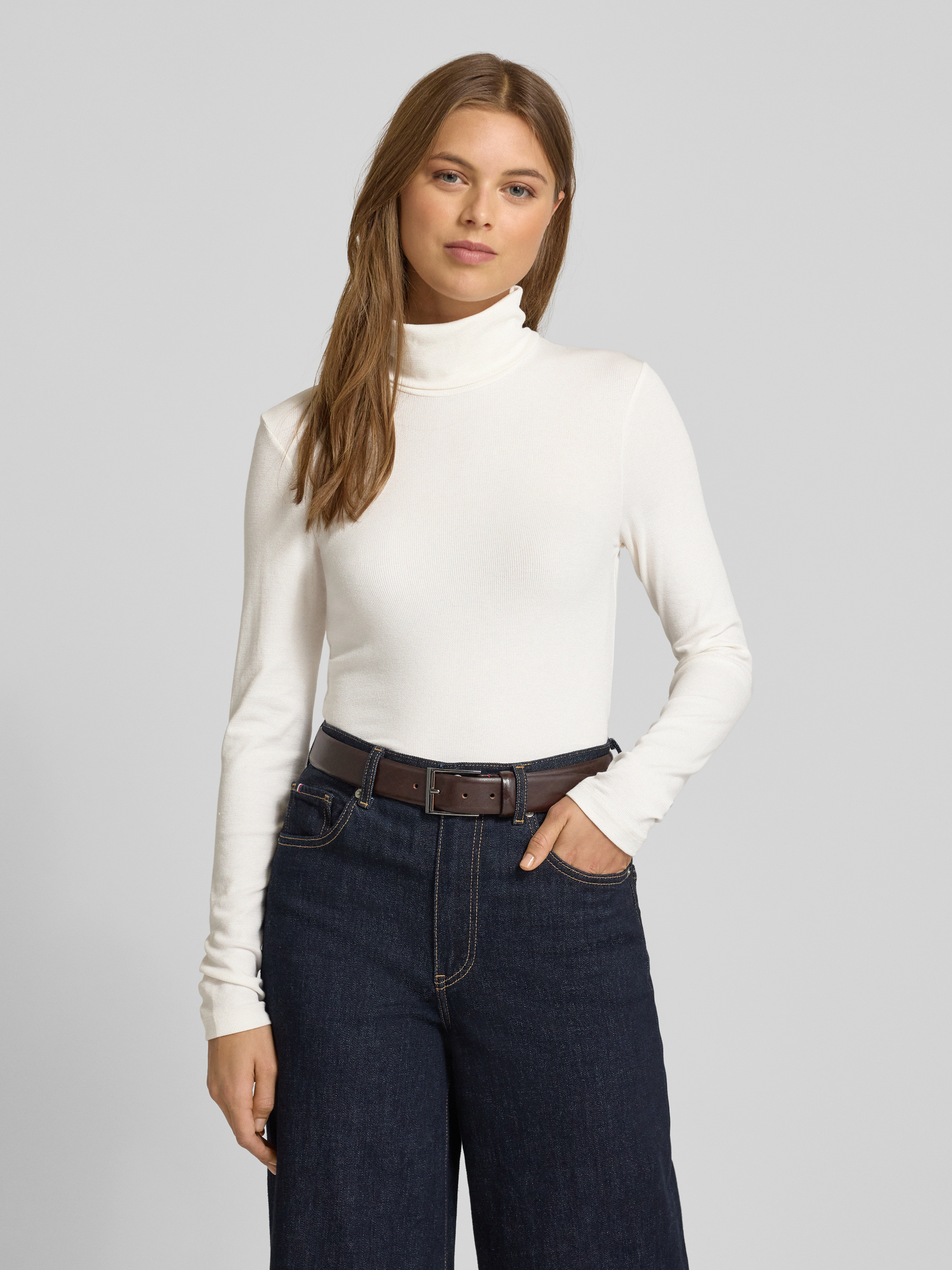 Das Damen Langarmshirt von Marc O'Polo zeichnet sich durch seine schmale Passform und den Rollkragen aus, wodurch es unter Jacken oder allein getragen angenehm anliegt. Der Modal-Mix sorgt gemeinsam mit der feinen Rippenstruktur für ein weiches Tragegefühl und einen dezenten Look. Durch die unifarbene Optik lässt sich das Slim Fit Langarmshirt unkompliziert kombinieren, was den Alltag spürbar erleichtert.